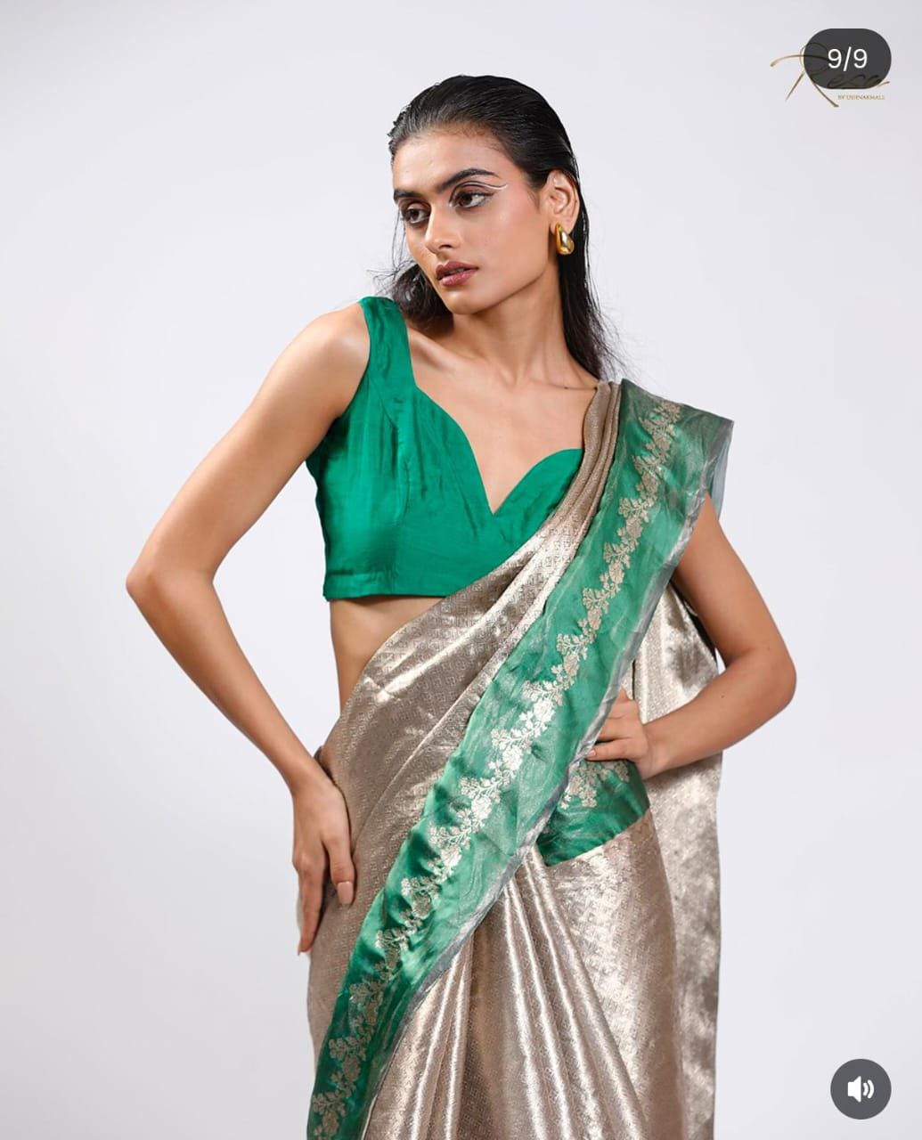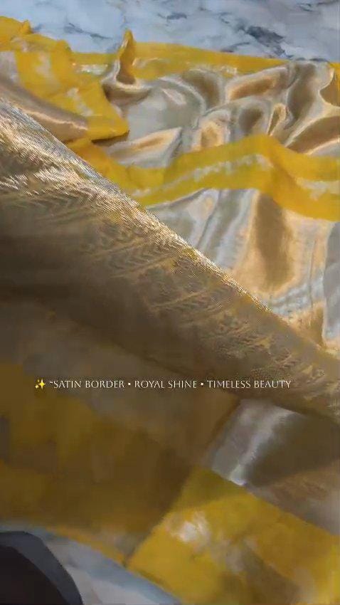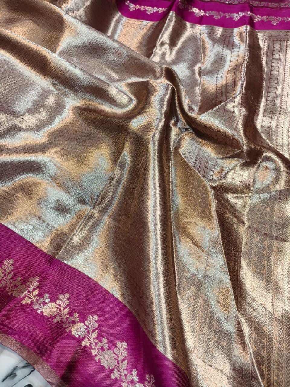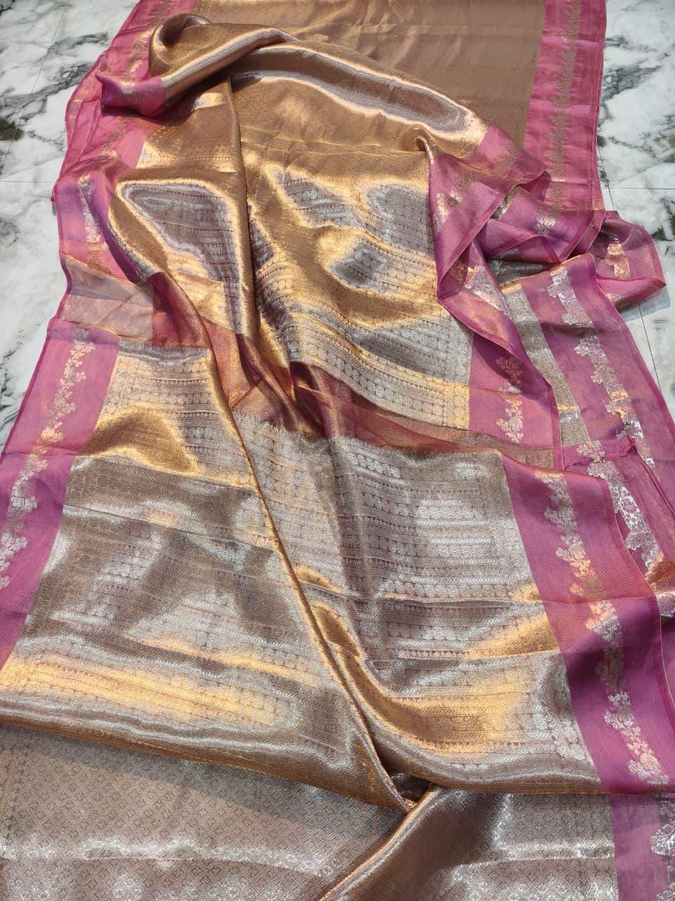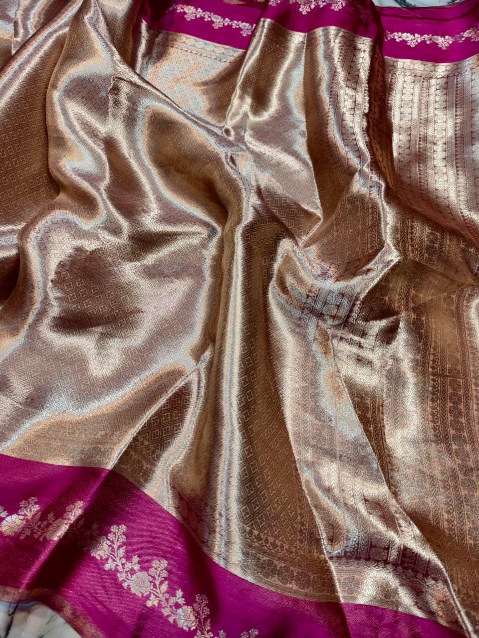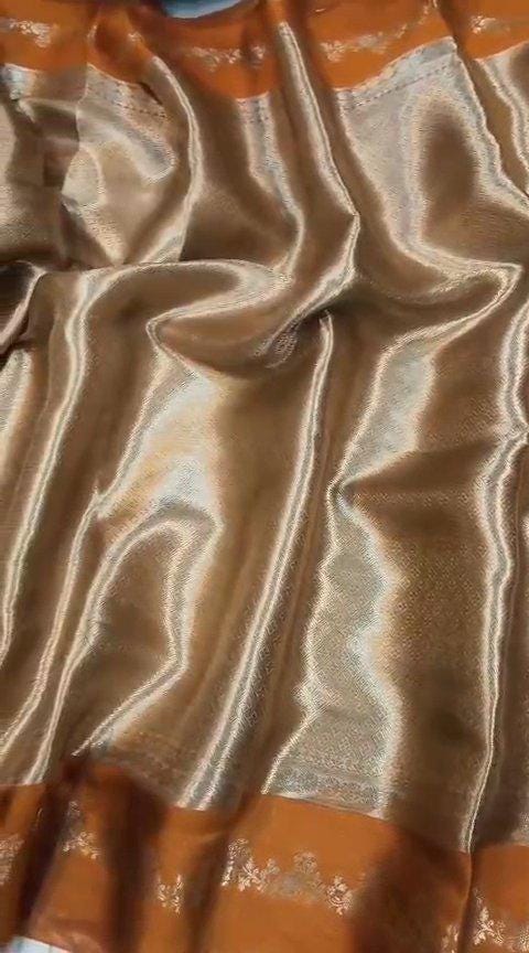 Experience the luxury of khaddi katan tissue Silk, adorned with exquisite handloom prints and a stunning organic banaras silk weave. This saree is a perfect fusion of heritage and contemporary elegance, making it ideal for weddings, festive occasions, and grand celebrations. A timeless masterpiece for your ethnic collection!