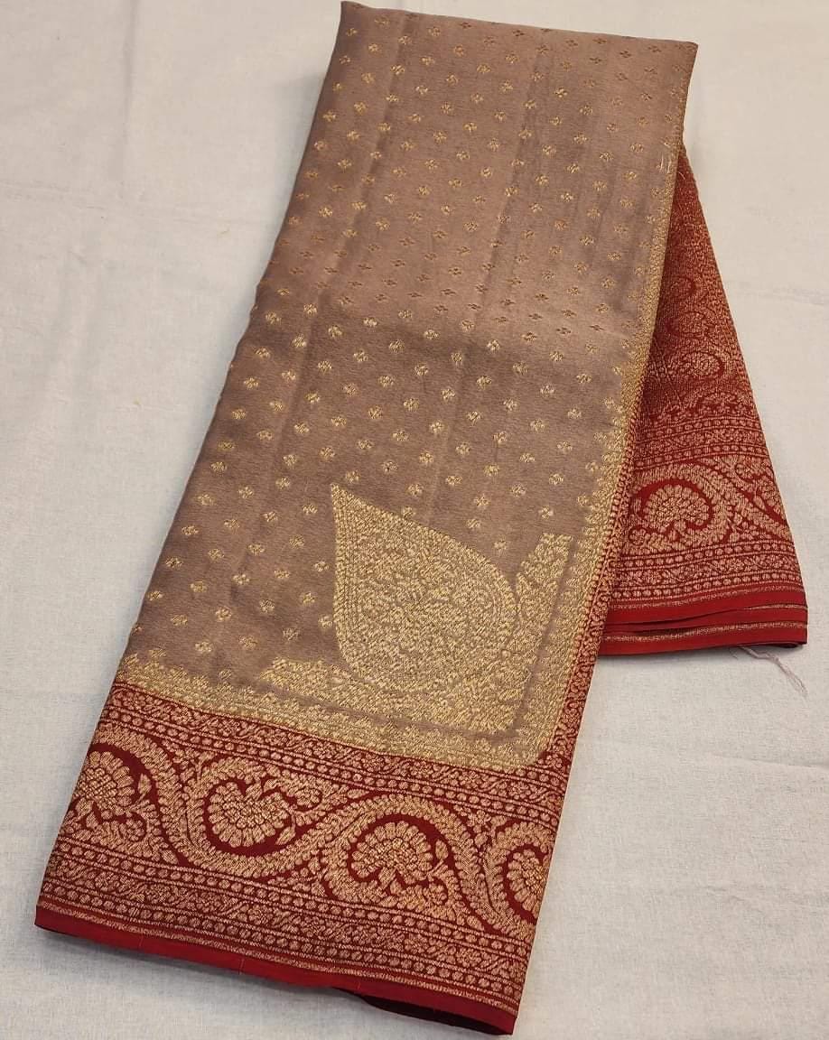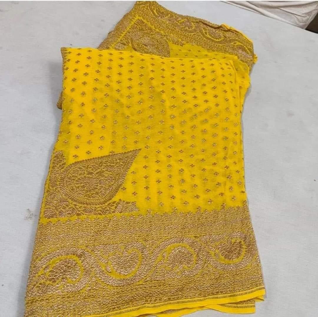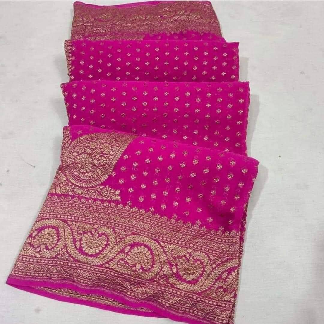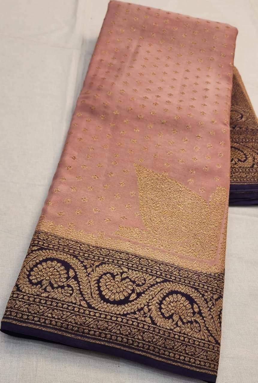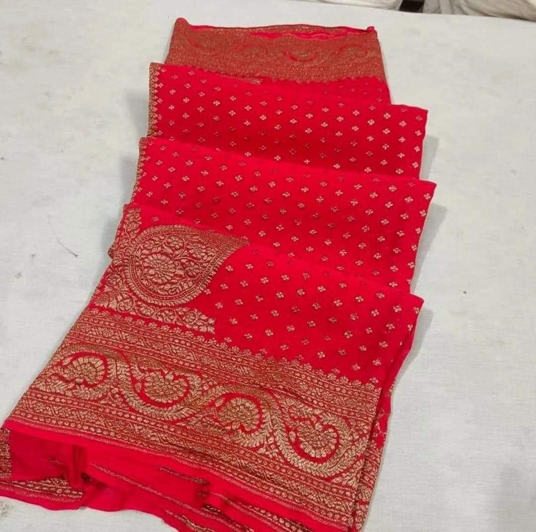 Experience the luxury of khaddi georgette chiffon, adorned with exquisite handloom prints and a stunning organic banaras silk weave. This saree is a perfect fusion of heritage and contemporary elegance, making it ideal for weddings, festive occasions, and grand celebrations. A timeless masterpiece for your ethnic collection!