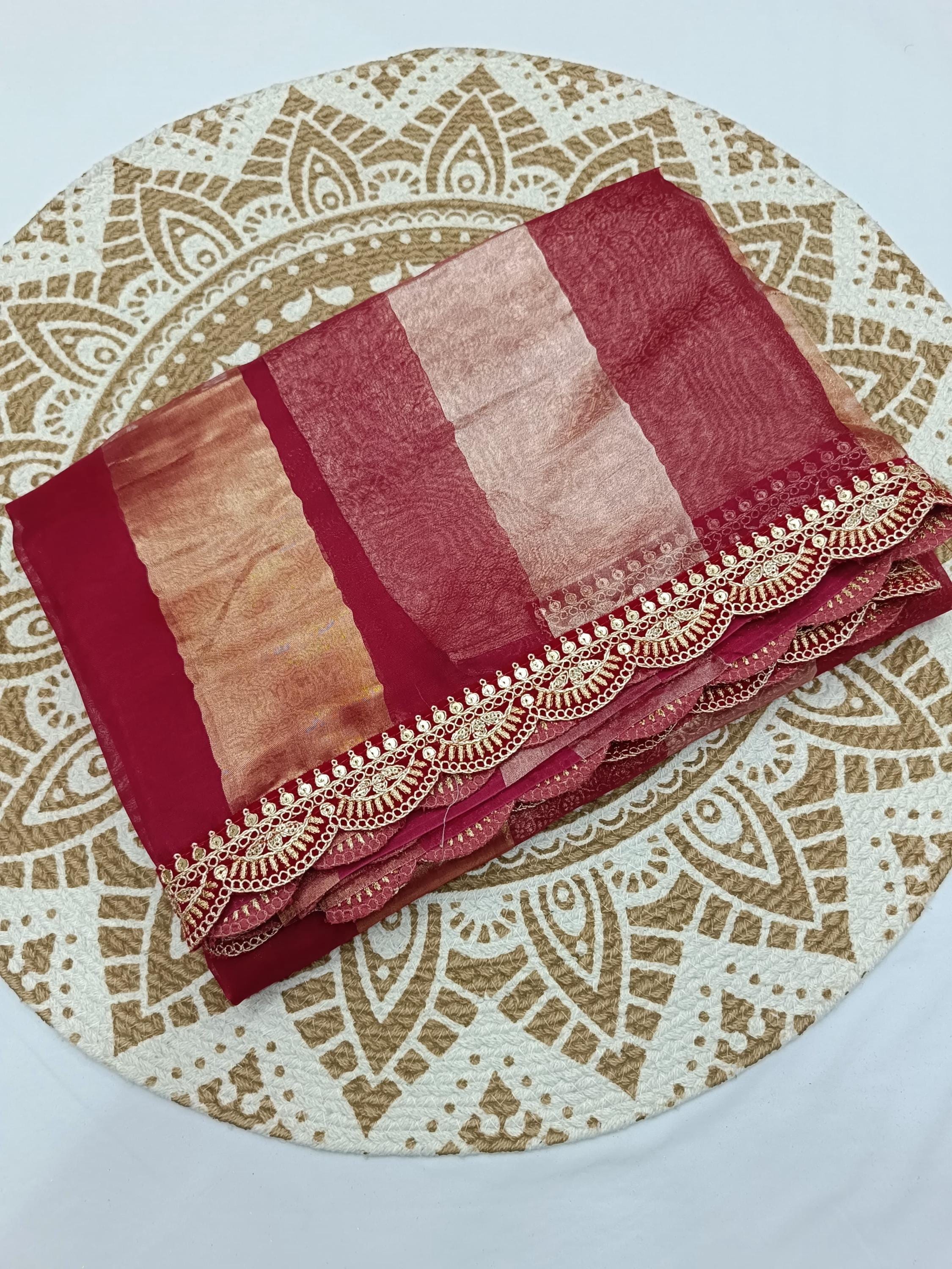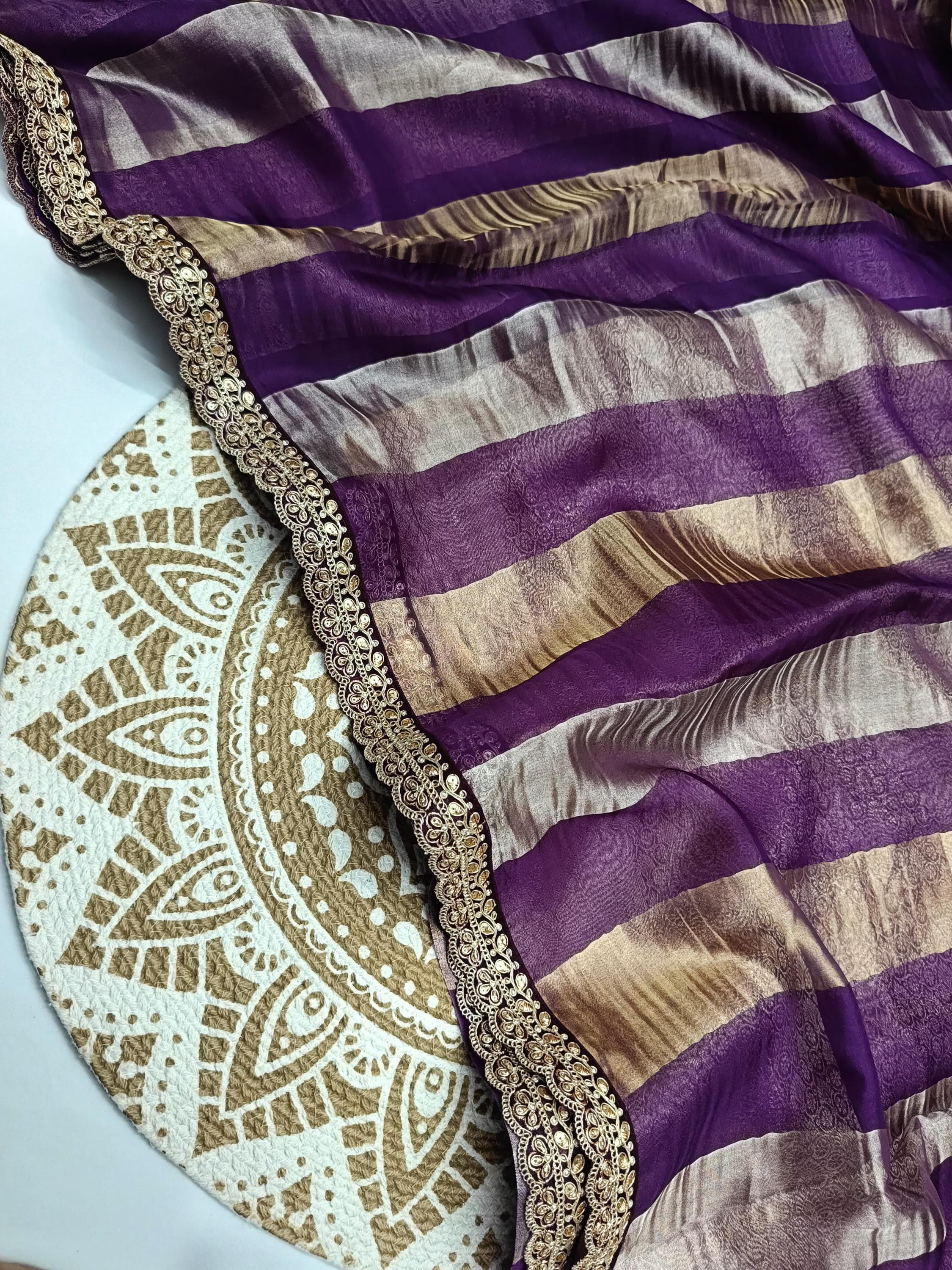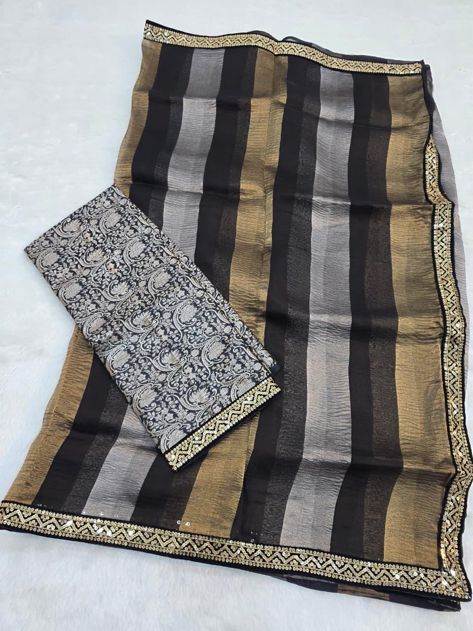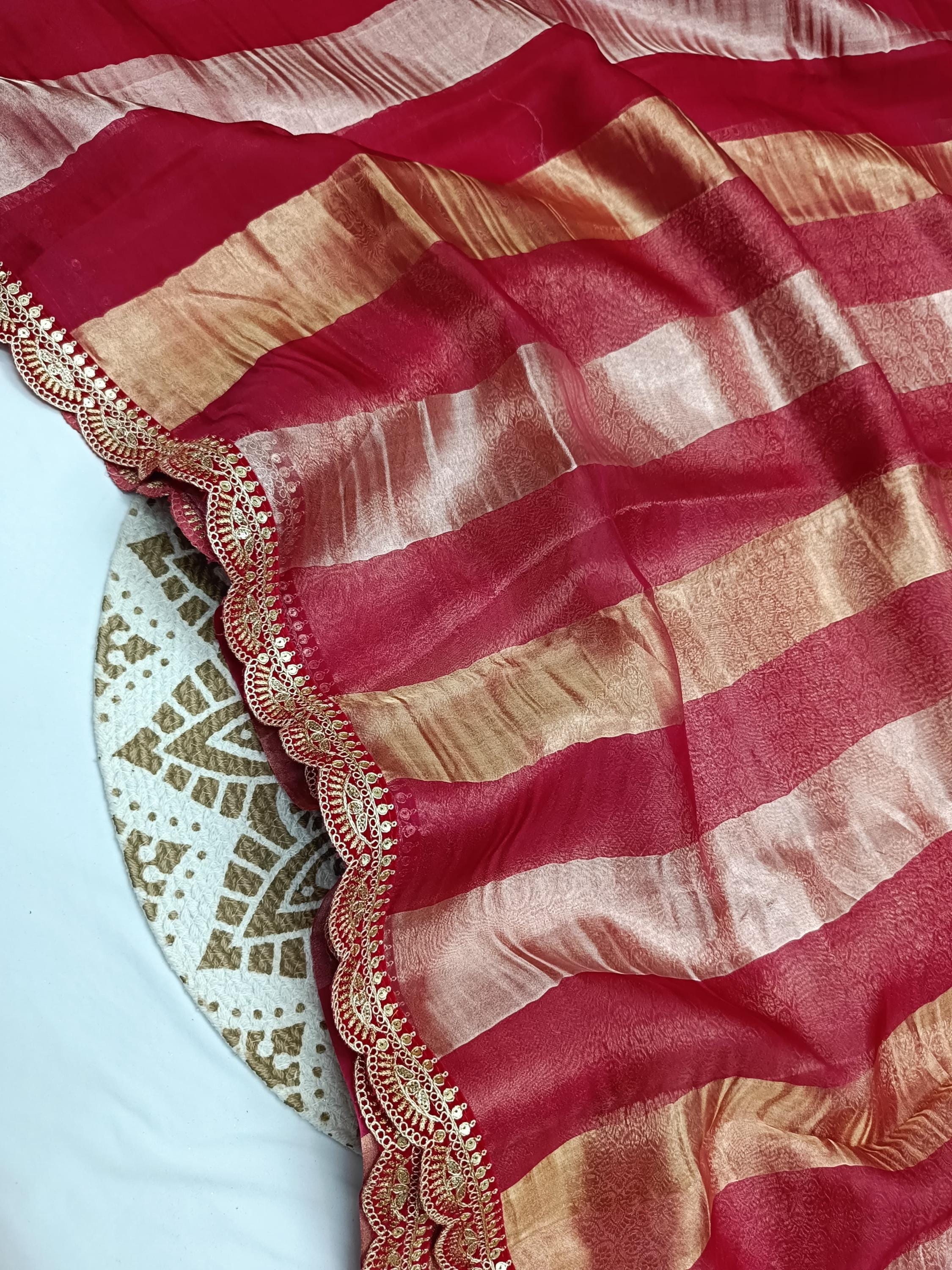 Experience the luxury of khaddi katan tissue Silk, adorned with exquisite handloom prints and a stunning organic banaras silk weave. This saree is a perfect fusion of heritage and contemporary elegance, making it ideal for weddings, festive occasions, and grand celebrations. A timeless masterpiece for your ethnic collection!