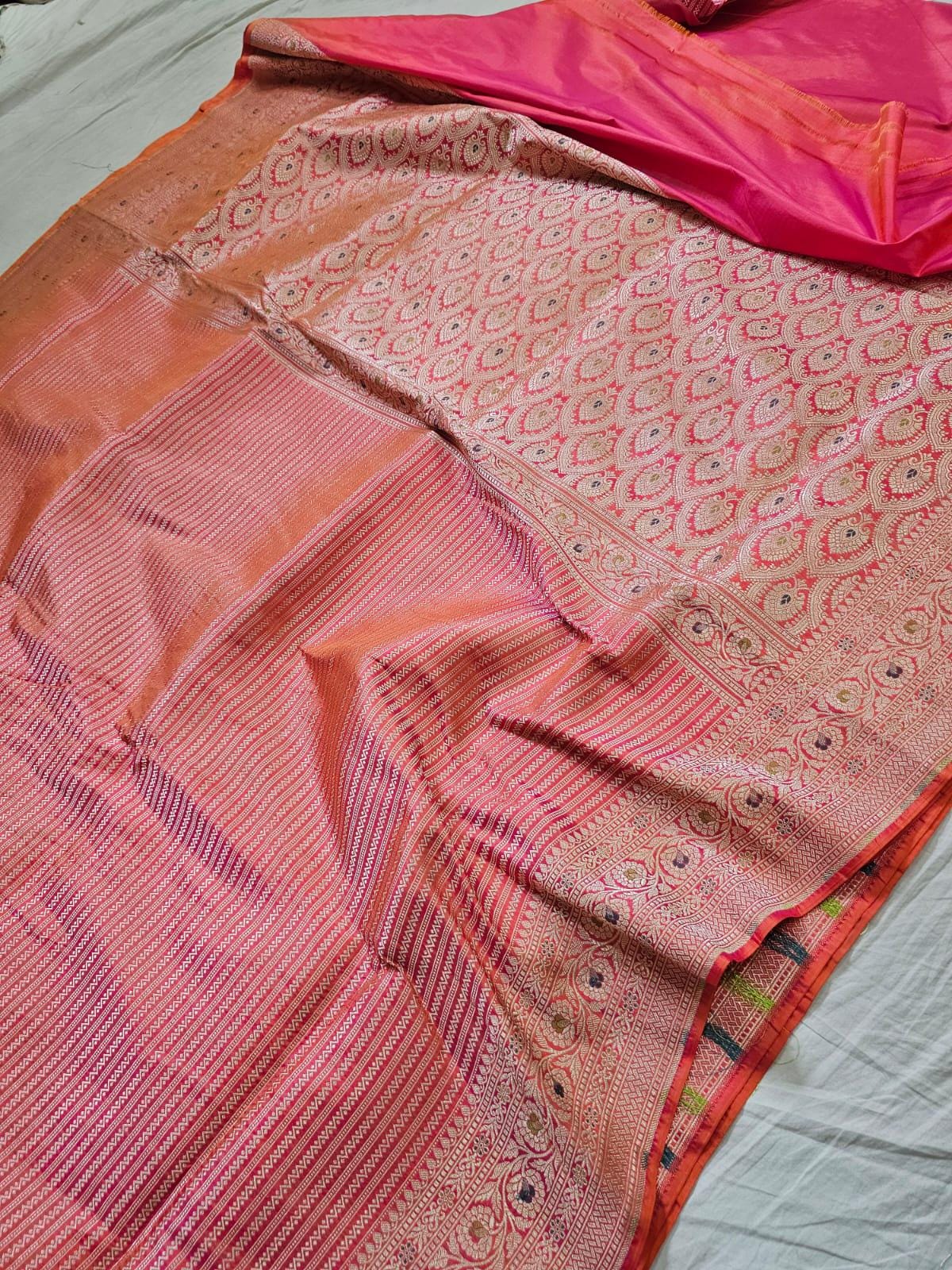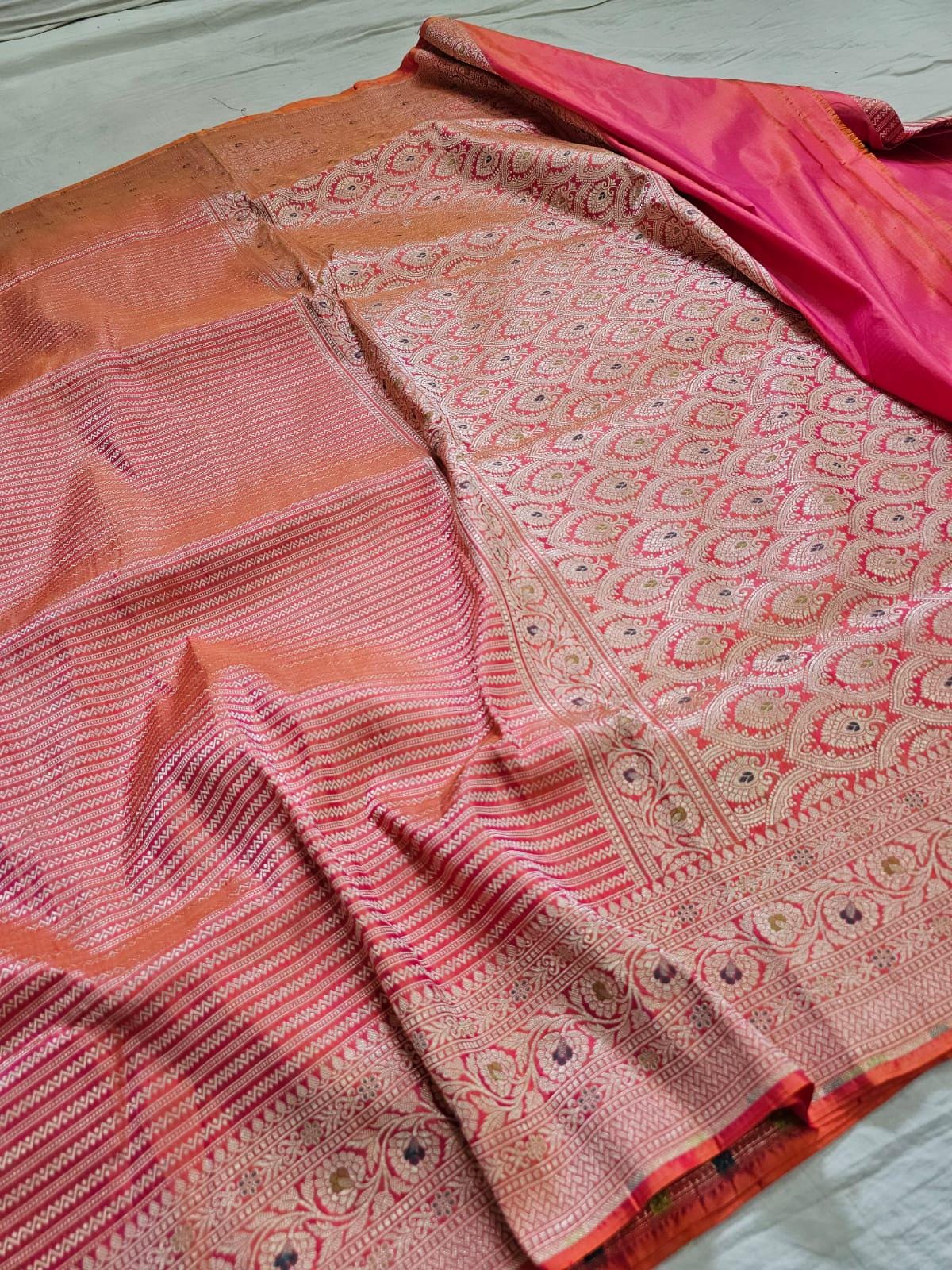 Pure Authentic Hand Weave raw mango Banarasi Saree With Blouse Piece