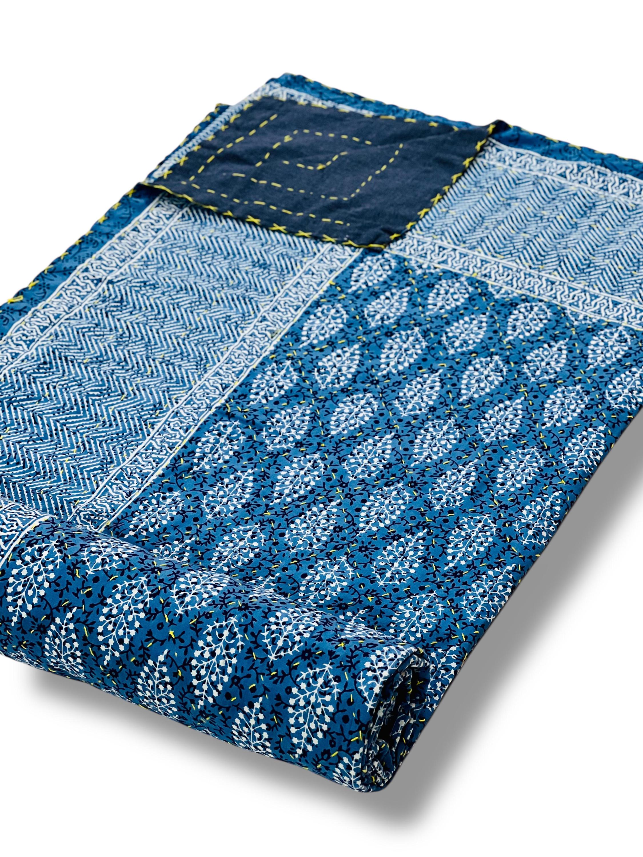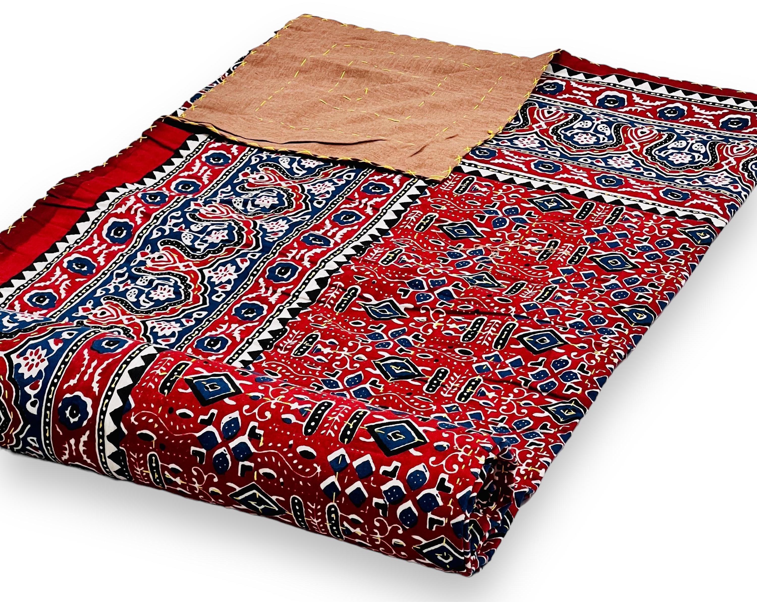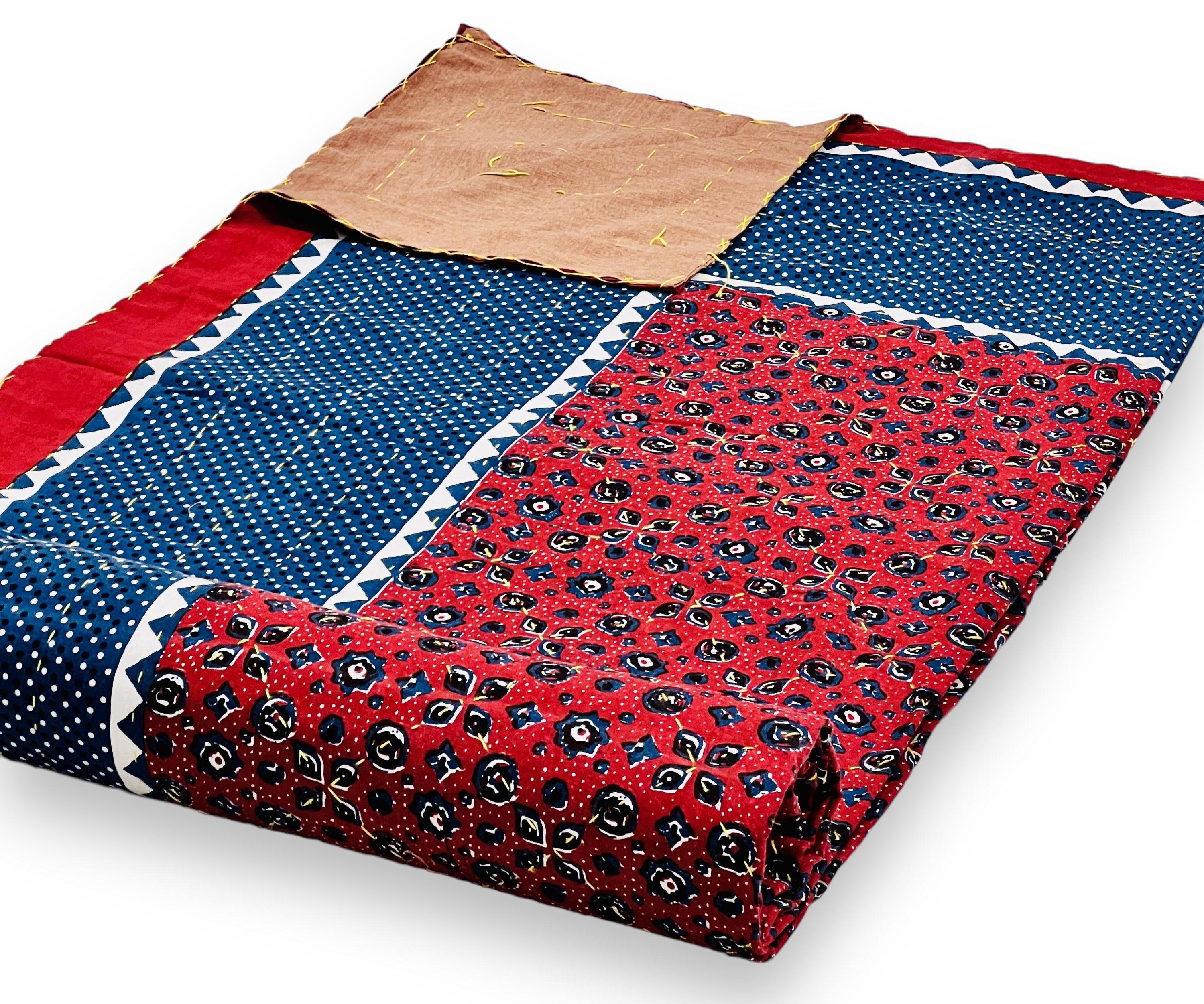 Artisan Work: Authentic hand-stitched Kantha embroidery over stunning traditional Jaipuri block-style prints.