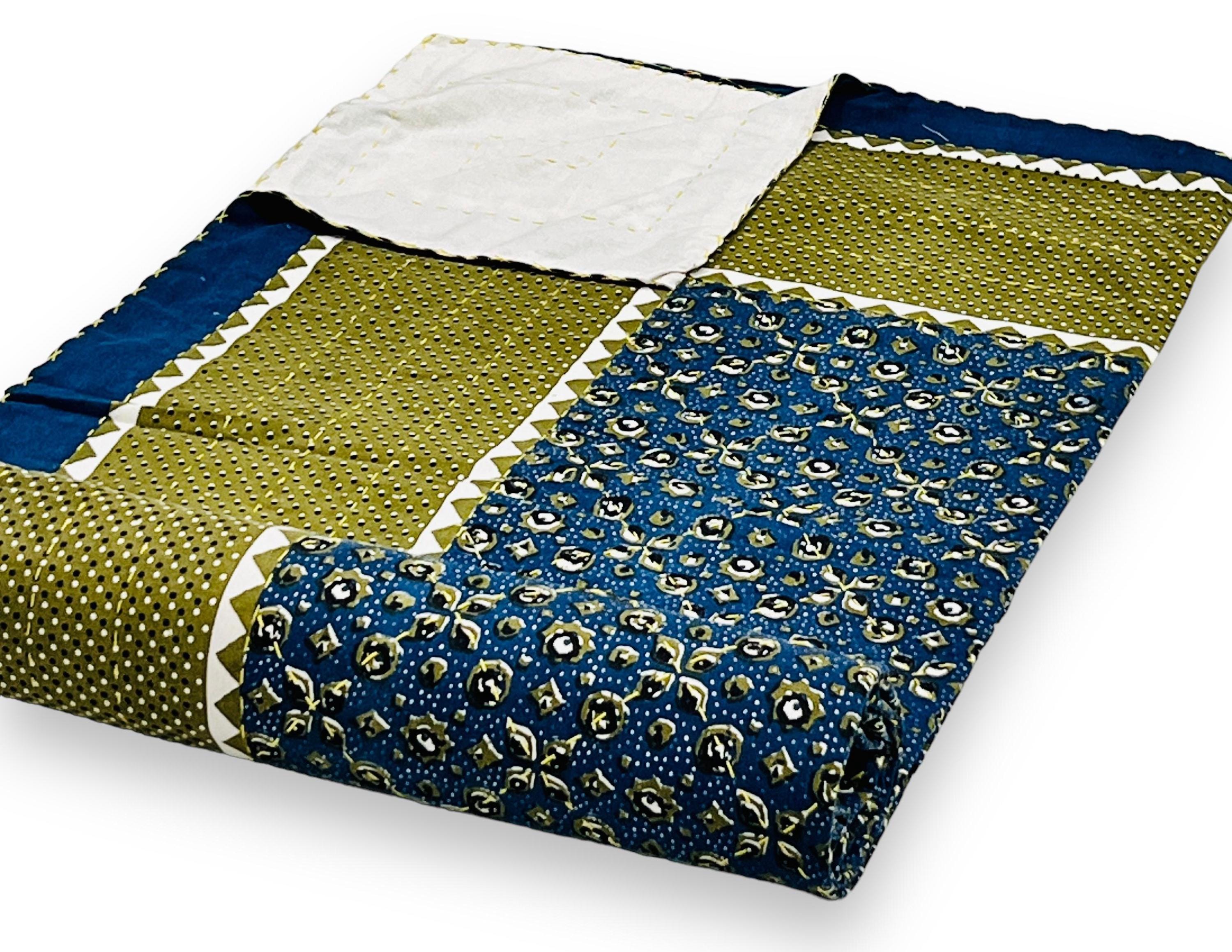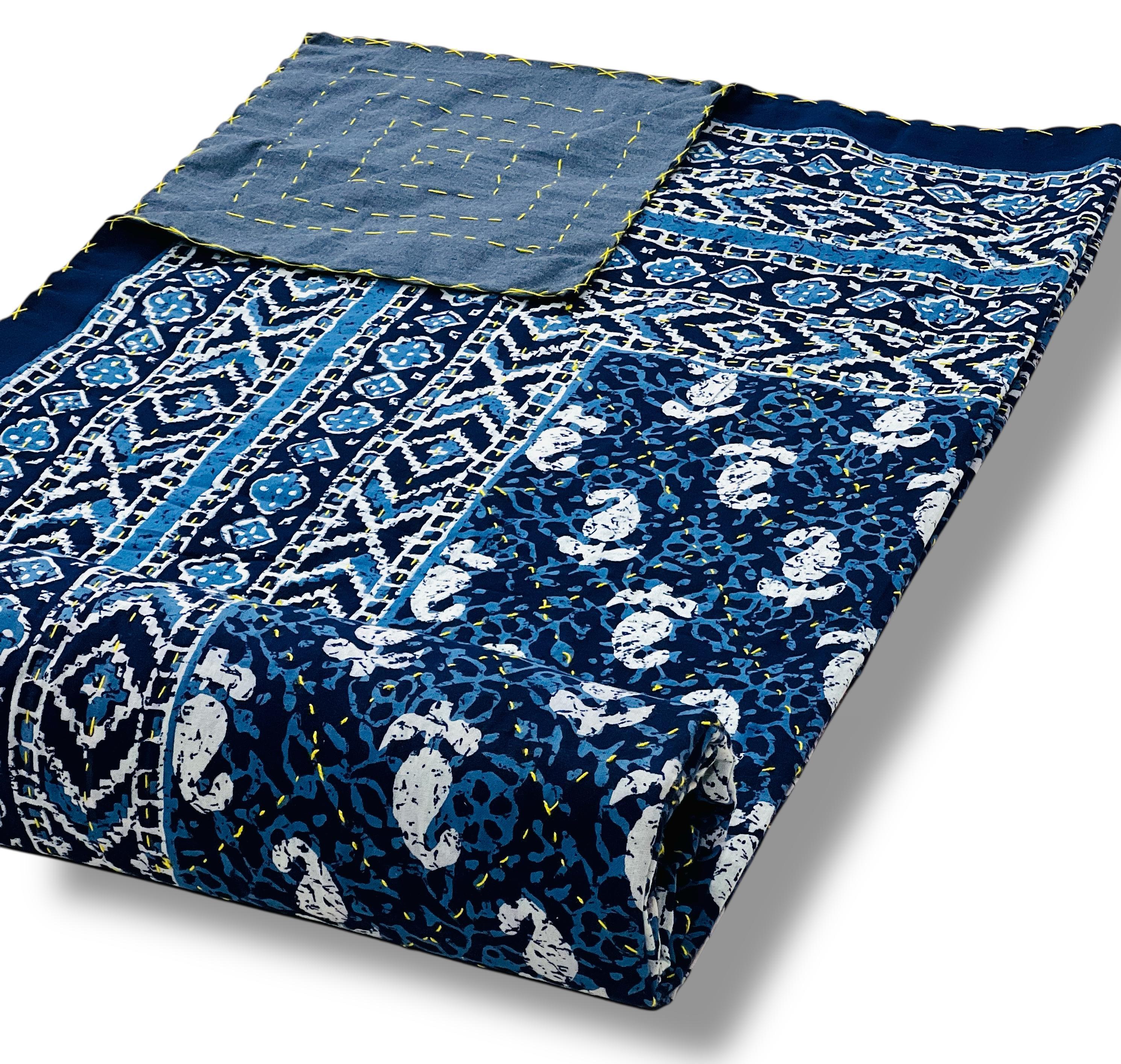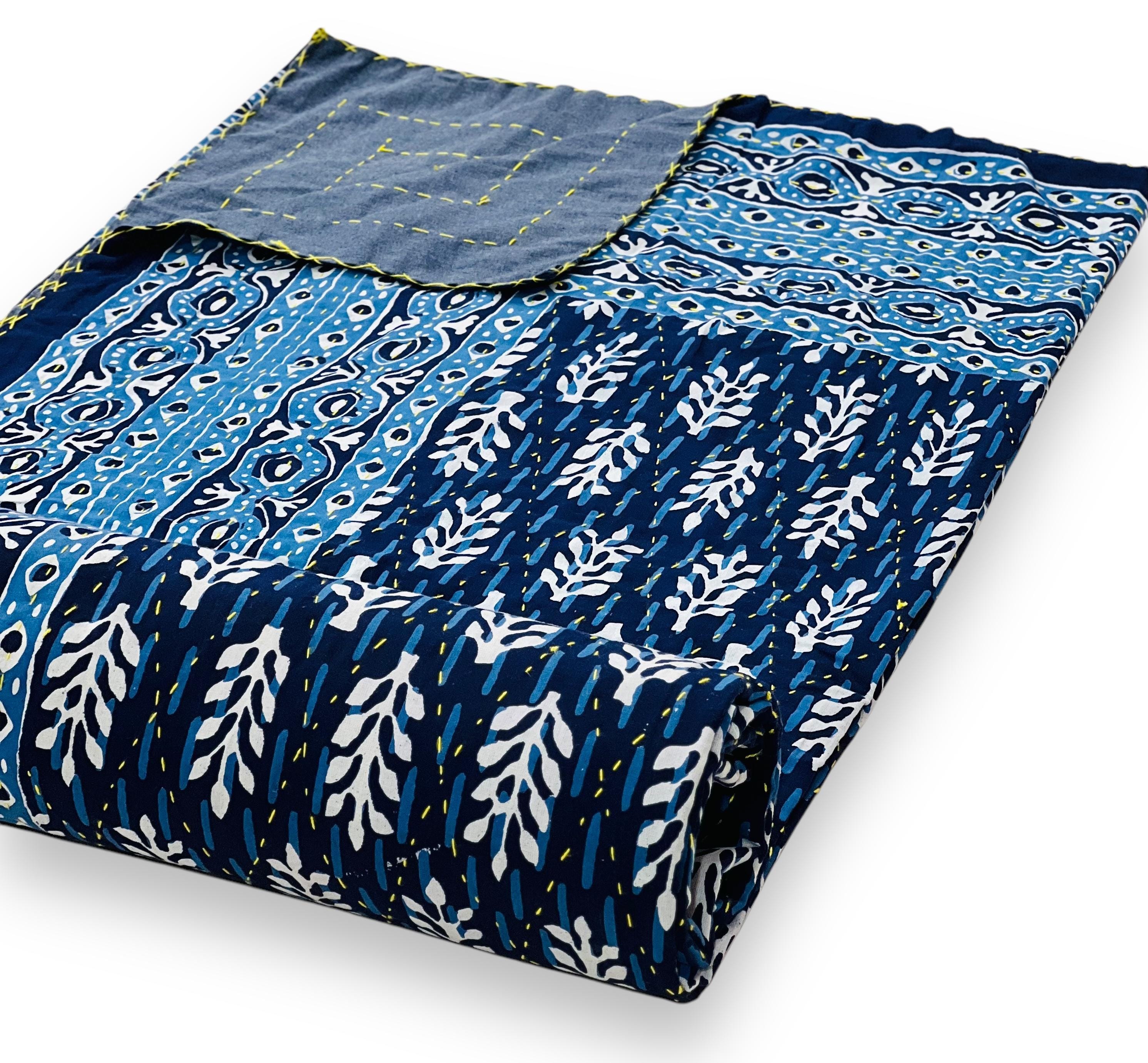 Artisan Work: Authentic hand-stitched Kantha embroidery over stunning traditional Jaipuri block-style prints.
