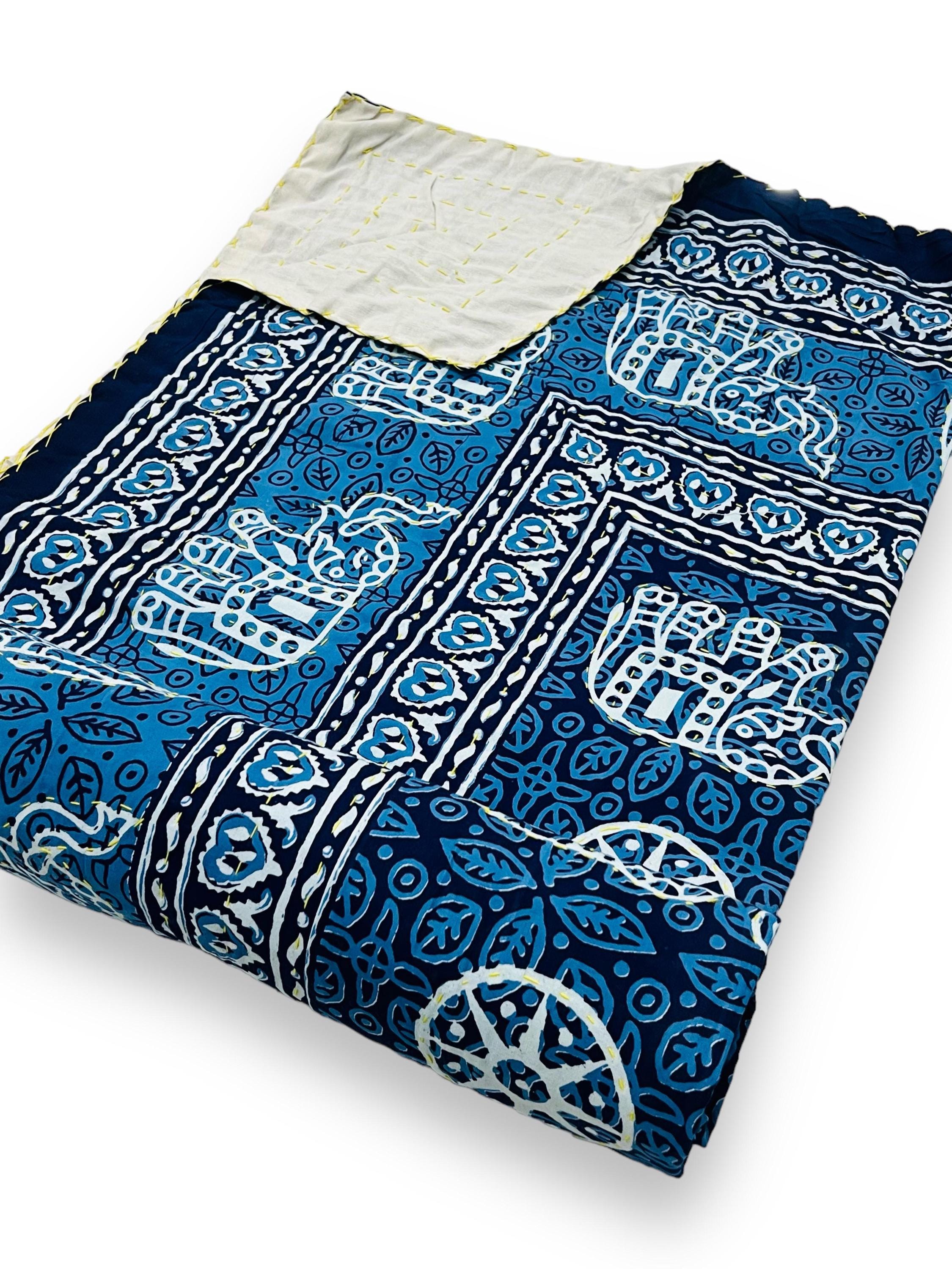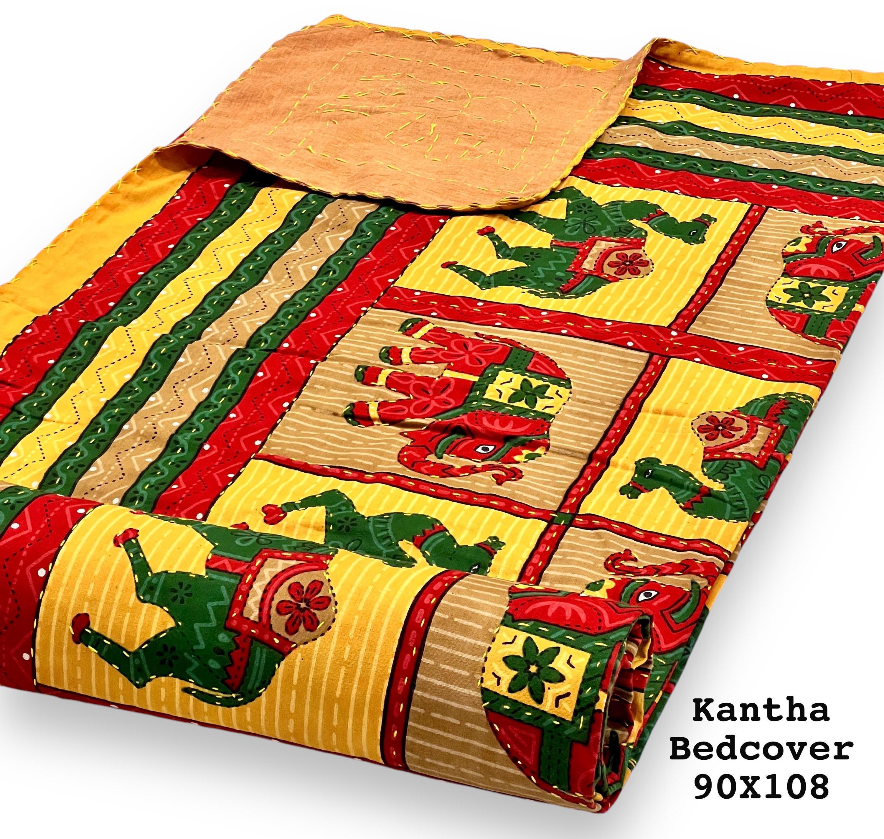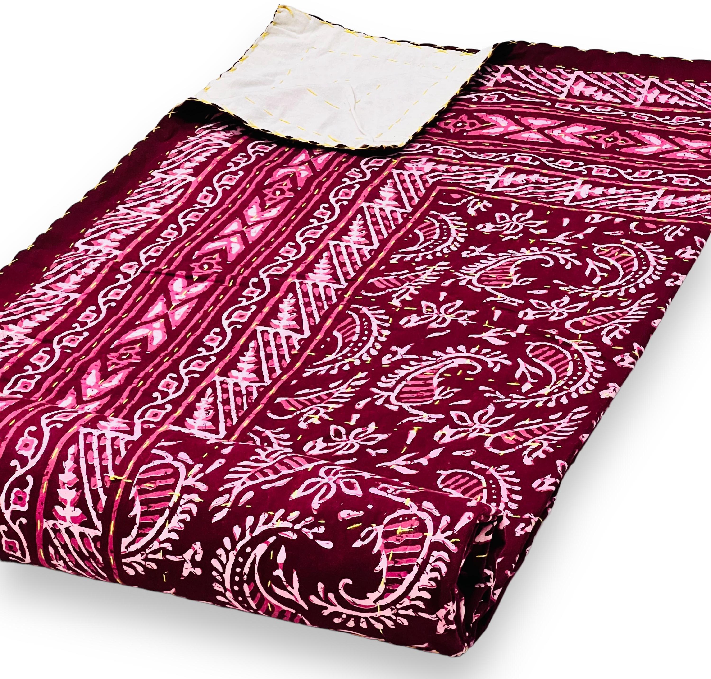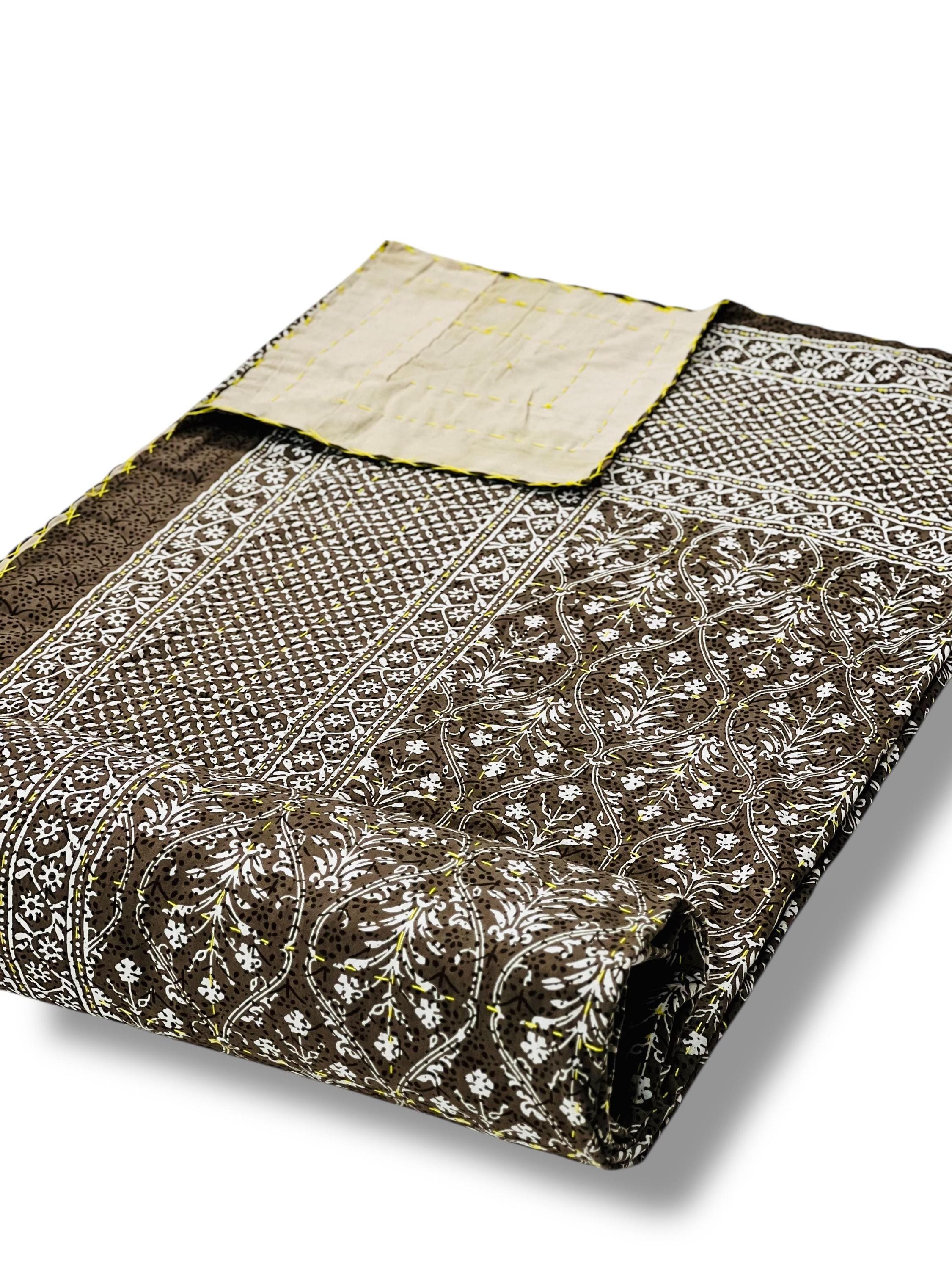 Transform your bedroom into a bohemian sanctuary. This authentic Jaipuri printed Kantha quilt is a celebration of heritage textile art, bringing vibrant color and rich texture into your home. Crafted entirely by hand, local artisans stitch two layers of premium, breathable pure cotton together using the traditional Kantha running stitch. The result is a beautifully textured, heavyweight bedspread that offers year-round comfort.