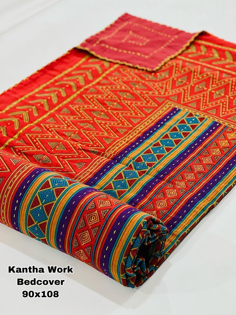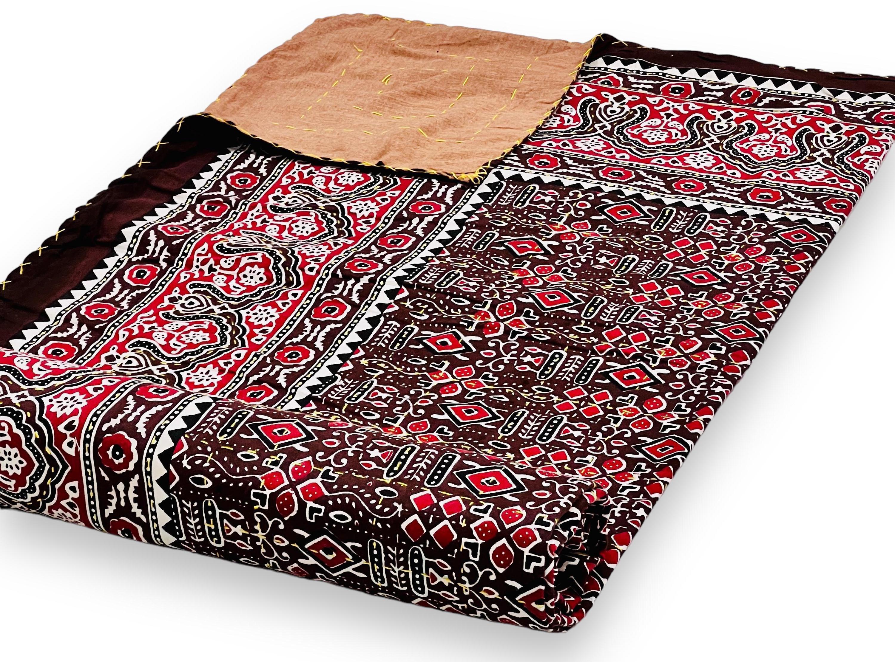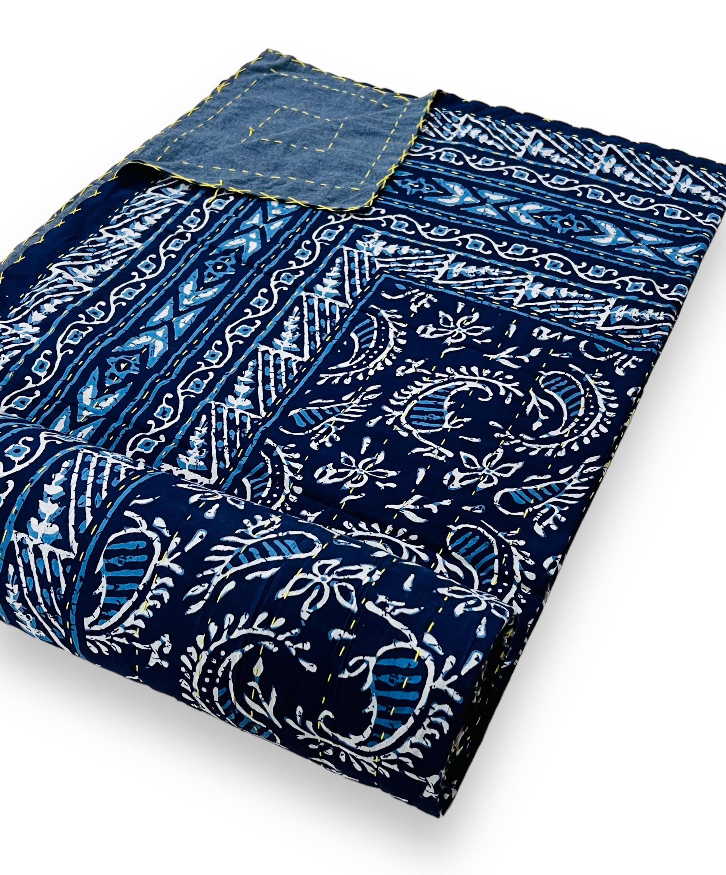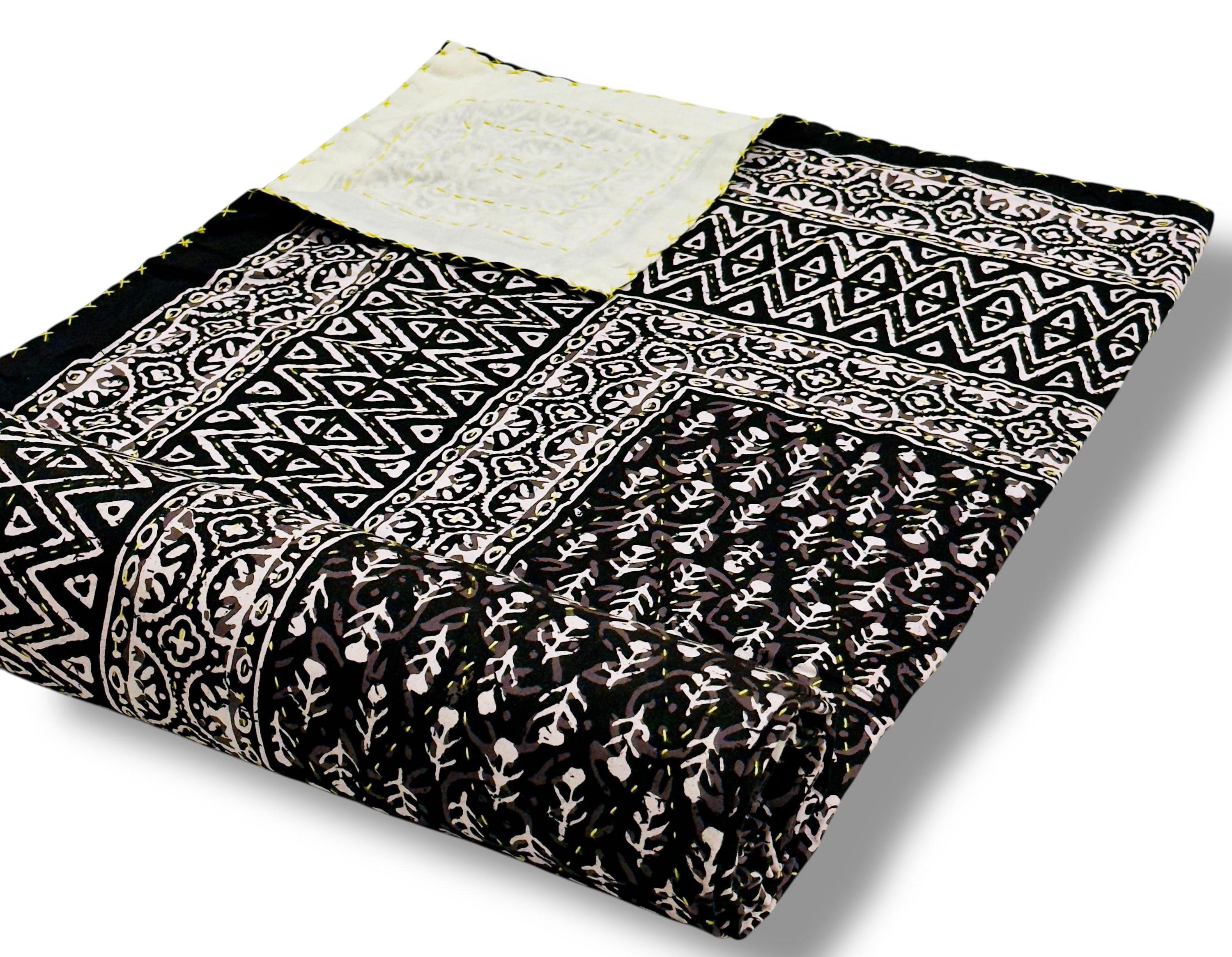 Transform your bedroom into a bohemian sanctuary. This authentic Jaipuri printed Kantha quilt is a celebration of heritage textile art, bringing vibrant color and rich texture into your home. Crafted entirely by hand, local artisans stitch two layers of premium, breathable pure cotton together using the traditional Kantha running stitch. The result is a beautifully textured, heavyweight bedspread that offers year-round comfort.