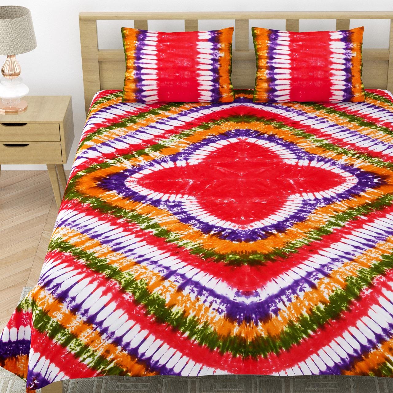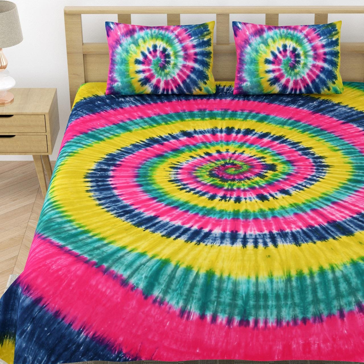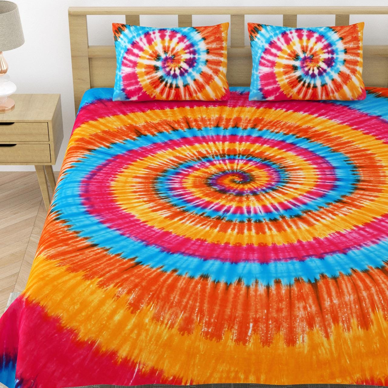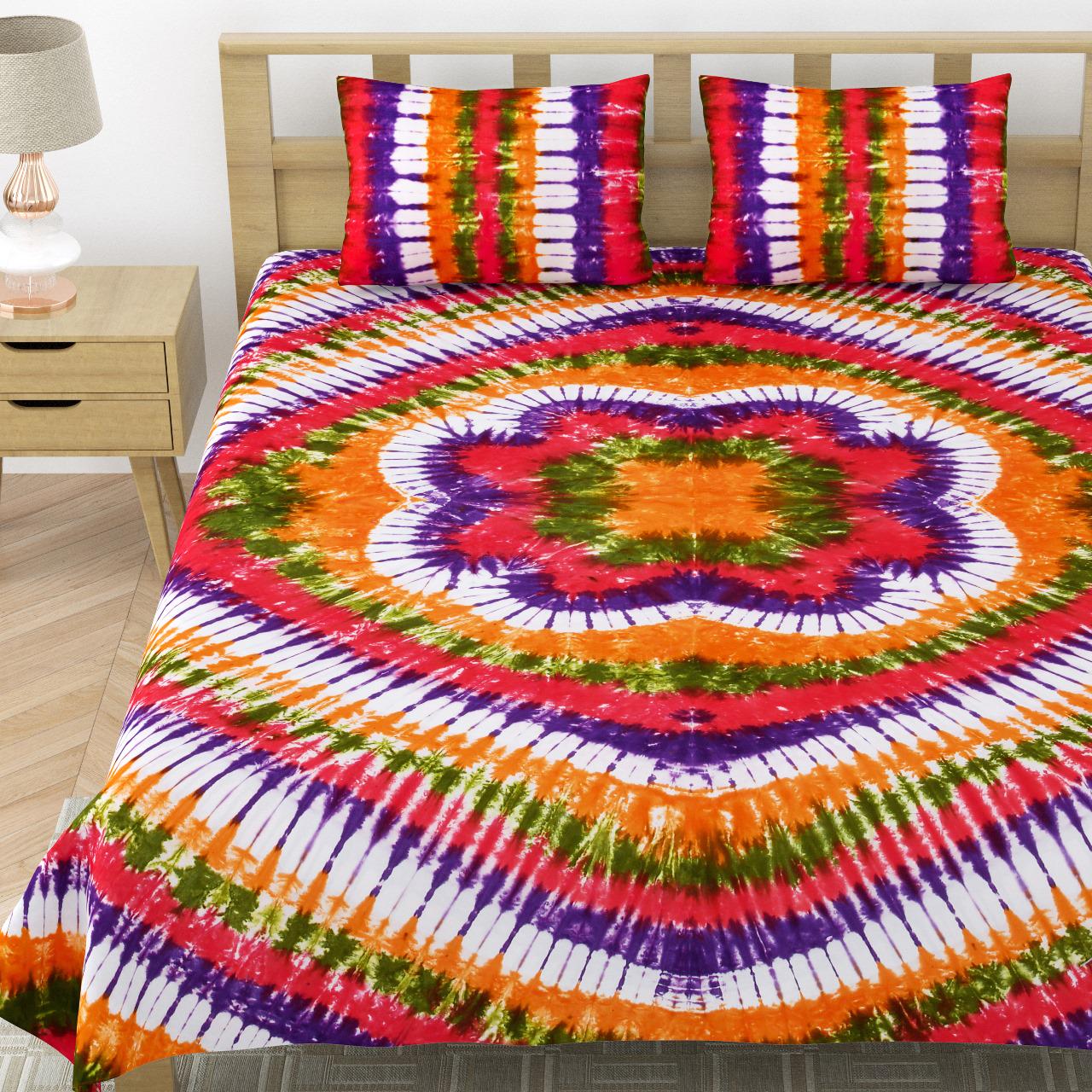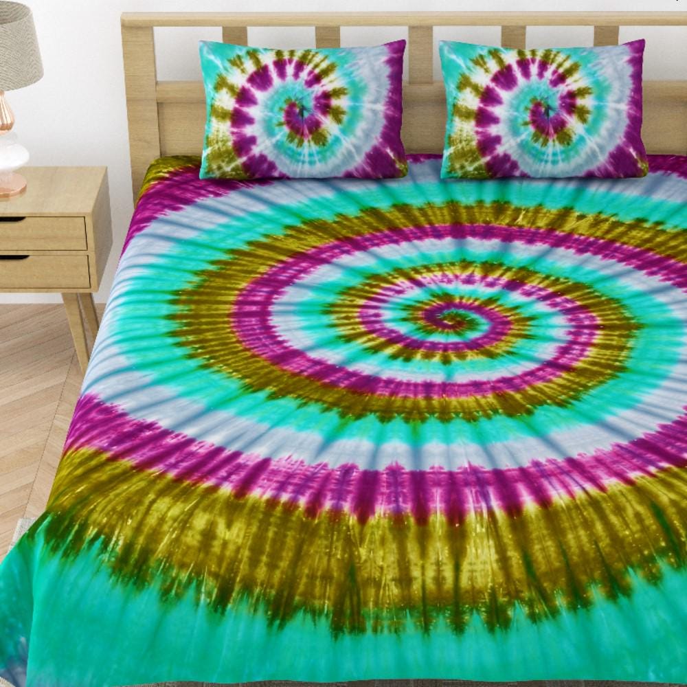 Included in Set: 1 Large Bedspread/Bedsheet and 2 Matching Tie-Dye Pillowcases (creating a fully cohesive look).
