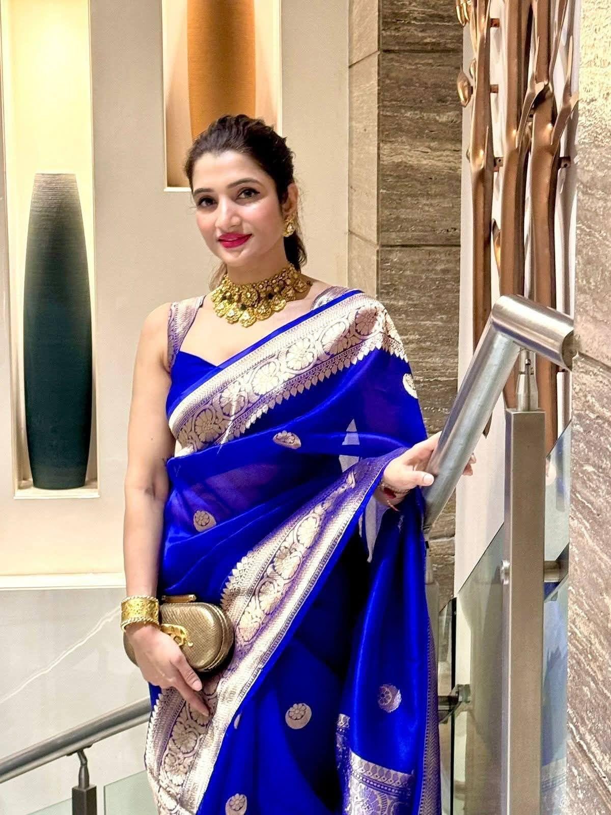 Fabric: Premium Pure Handloom Organza Silk (Incredibly smooth, soft, and offers a lightweight, graceful flow).
