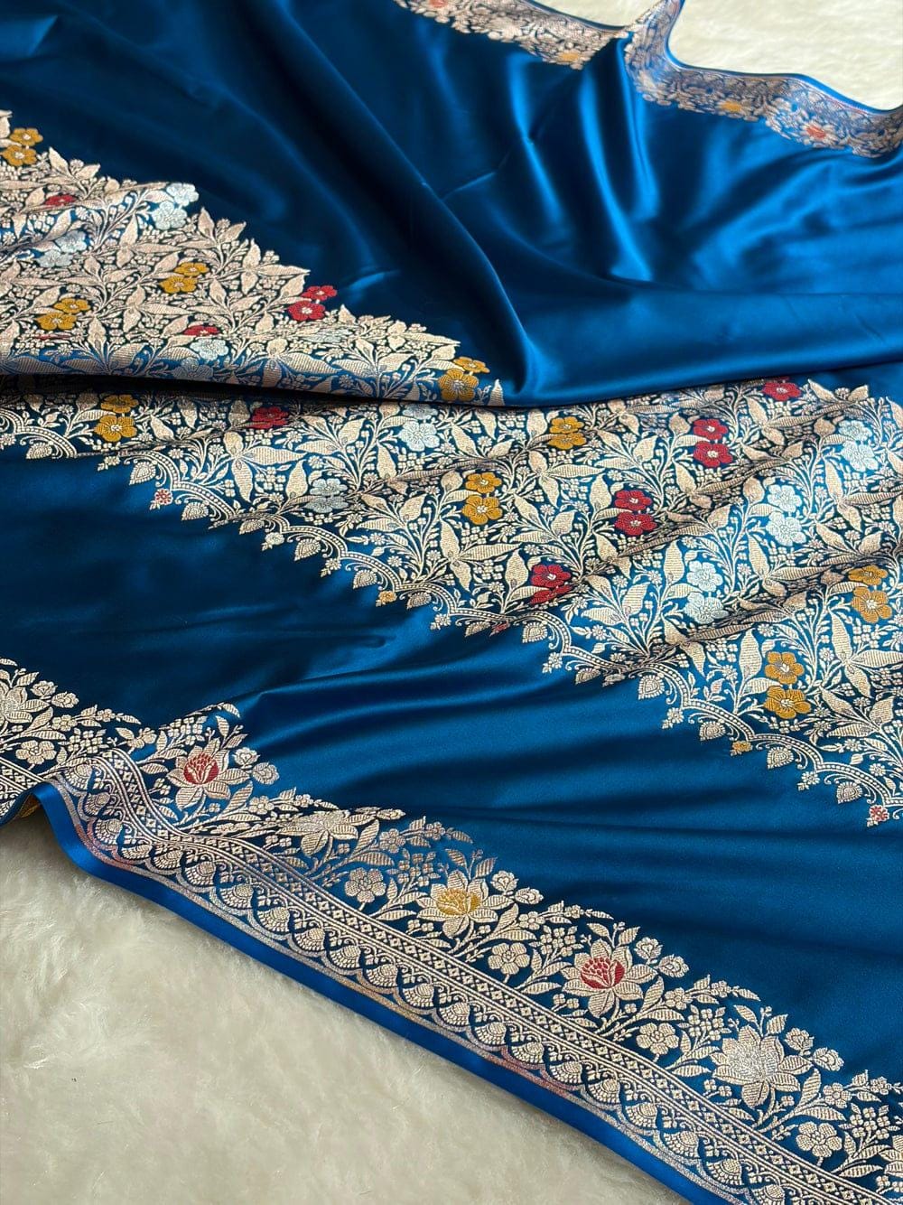 Experience the luxury of Mashru katan Silk, adorned with exquisite handloom prints and a stunning organic banaras silk weave. This saree is a perfect fusion of heritage and contemporary elegance, making it ideal for weddings, festive occasions, and grand celebrations. A timeless masterpiece for your ethnic collection!