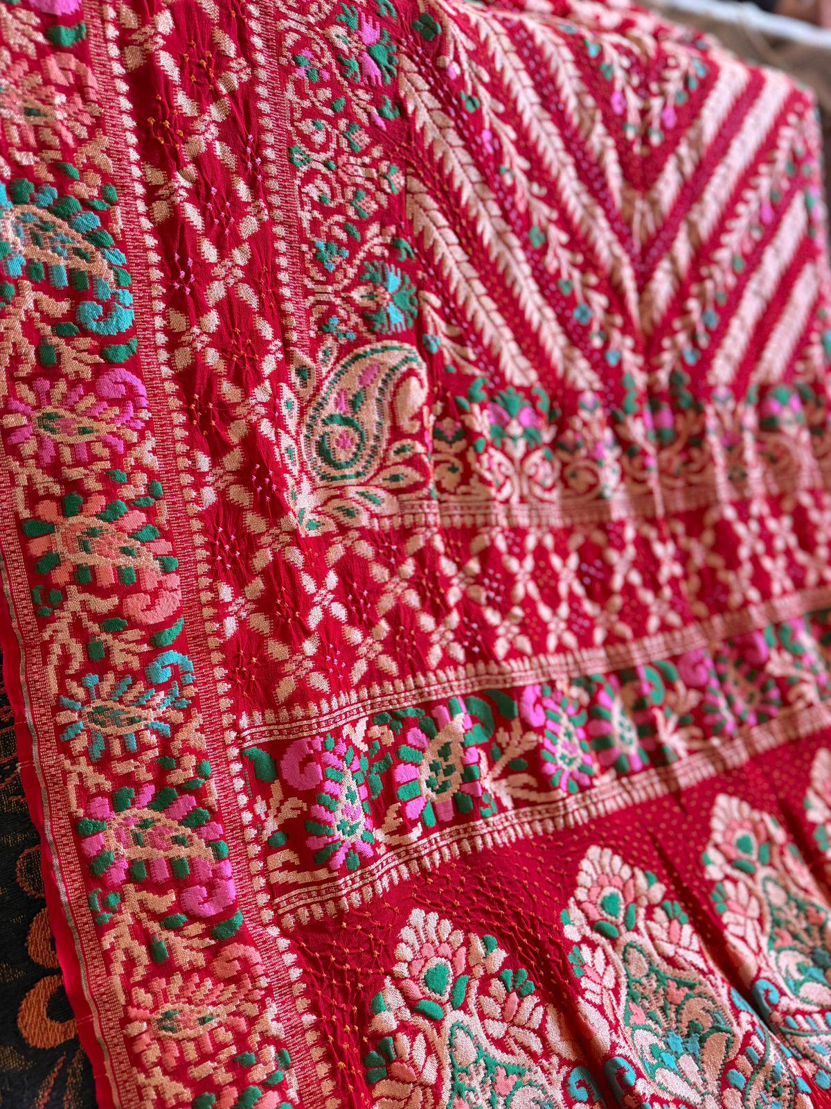 • Tilfi Meenakari: A rare hand-weaving technique using three distinct colors in the weft to create a jewel-like texture that breathes with life.