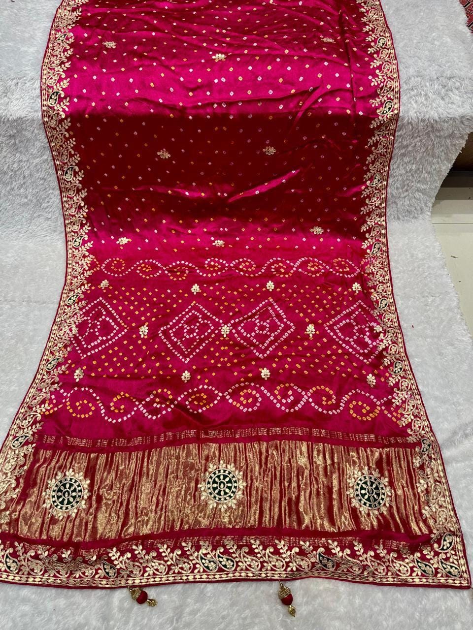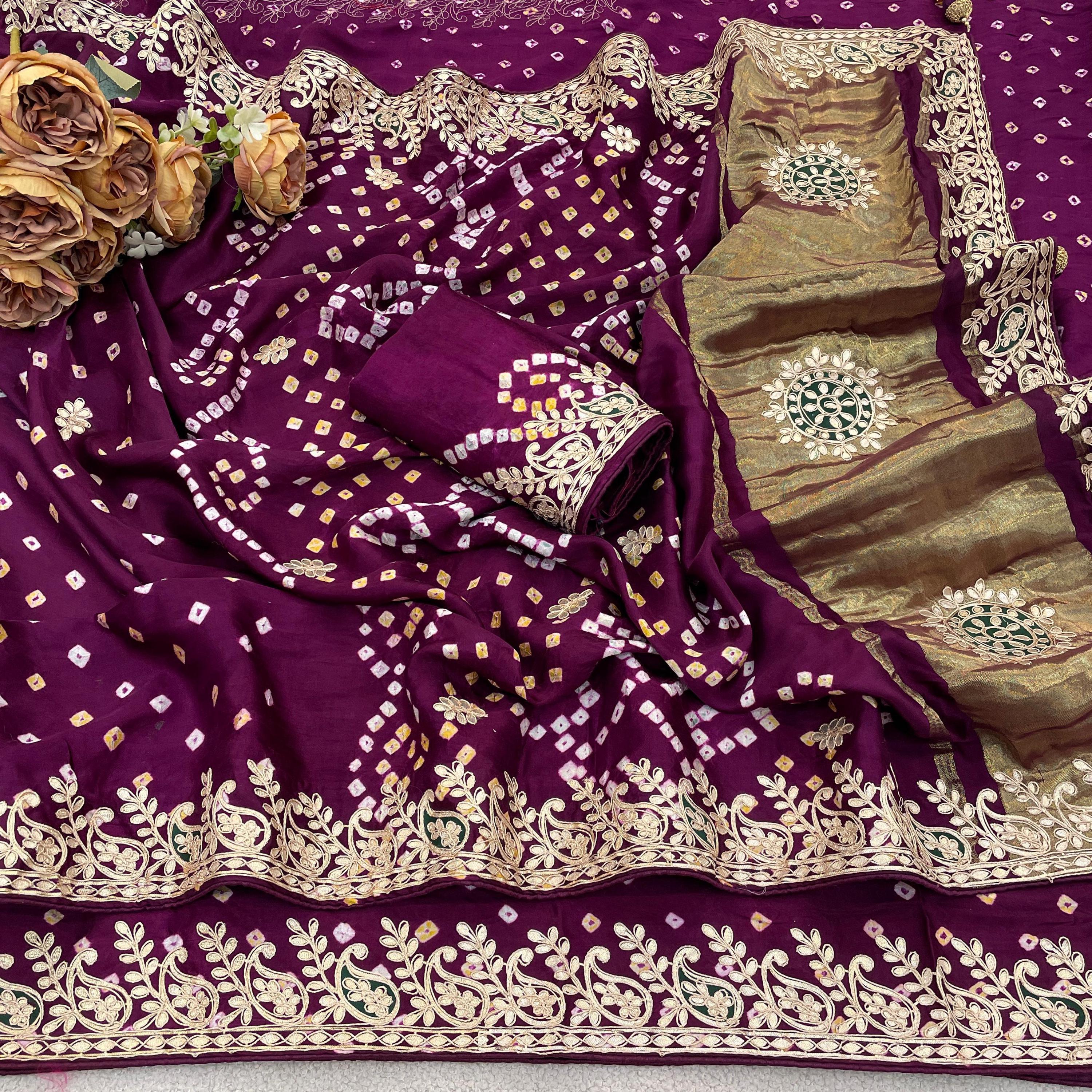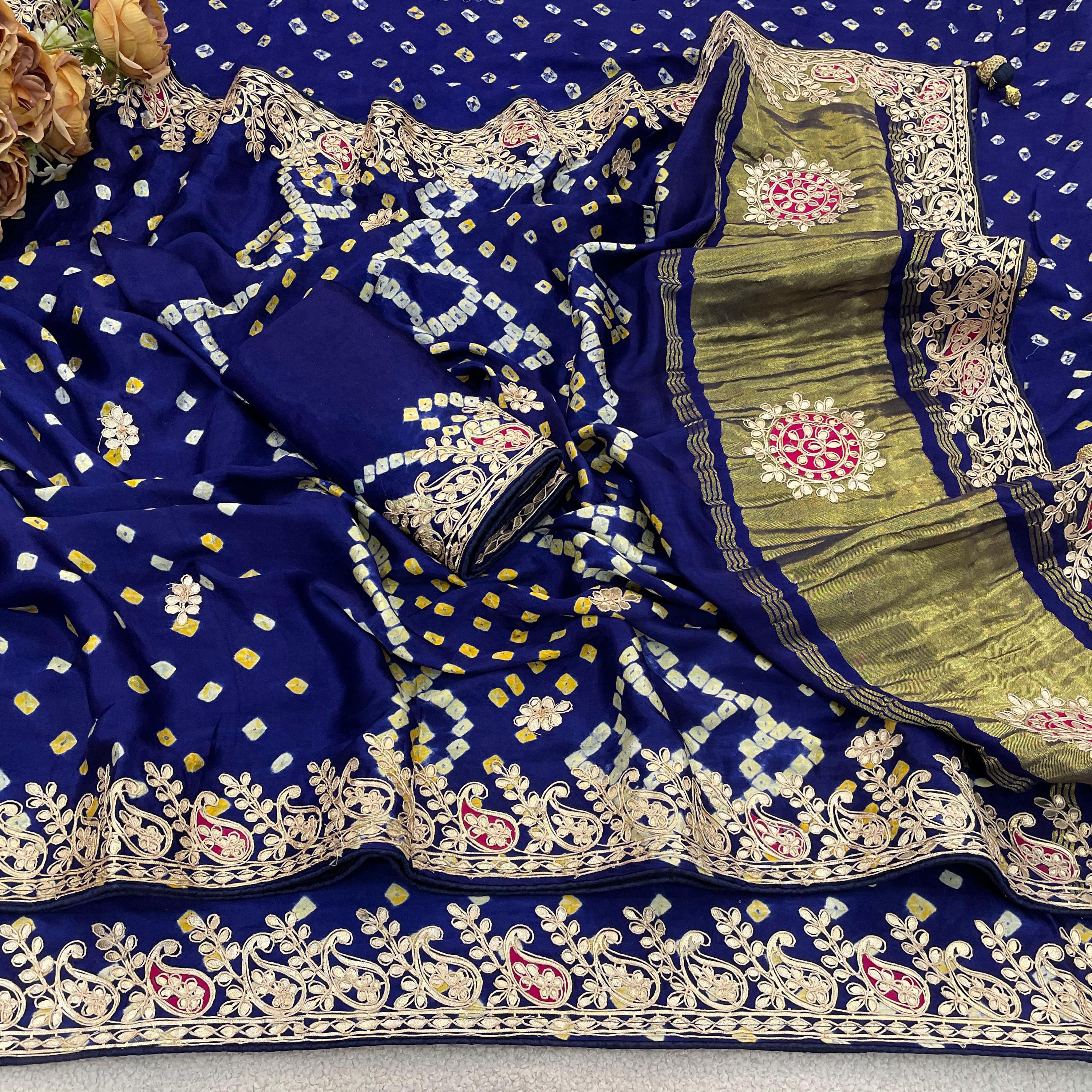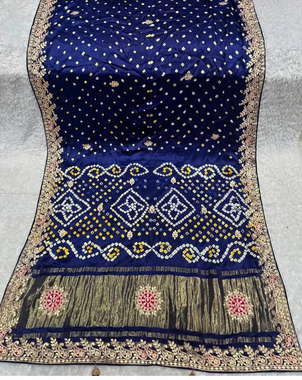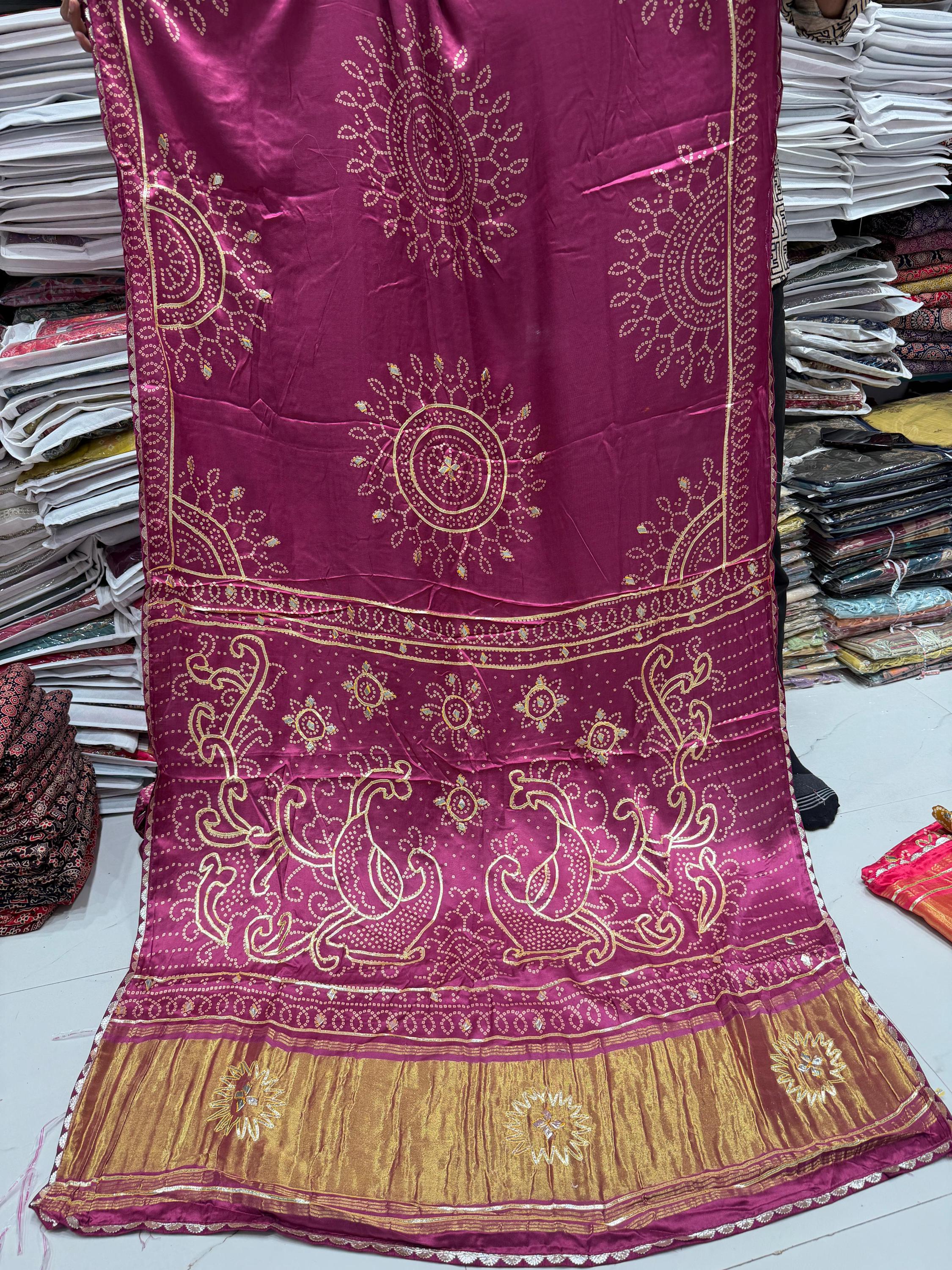 Embrace the royal elegance of Rajasthan with our Handmade Pure Modal Gajji Silk Saree. This "Masterpiece Weave" is a soulful tribute to centuries of artisanal patience, combining the luxurious fluid drape of Gajji silk with the shimmering tradition of Gota Patti work.