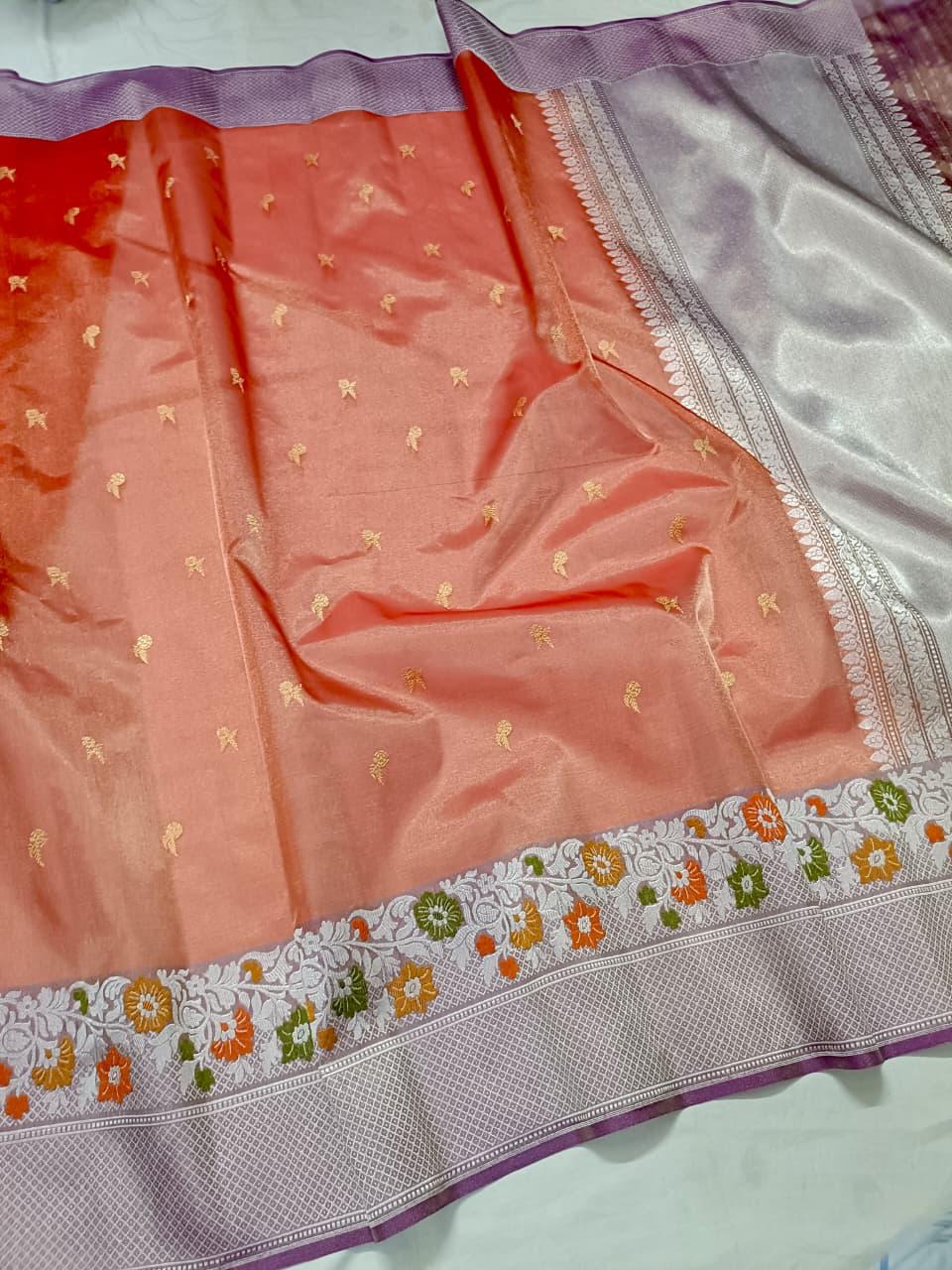 Experience the luxury of khaddi katan tissue Silk, adorned with exquisite handloom prints and a stunning organic banaras silk weave. This saree is a perfect fusion of heritage and contemporary elegance, making it ideal for weddings, festive occasions, and grand celebrations. A timeless masterpiece for your ethnic collection!