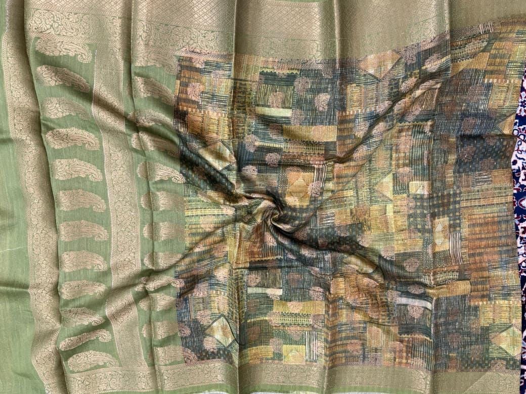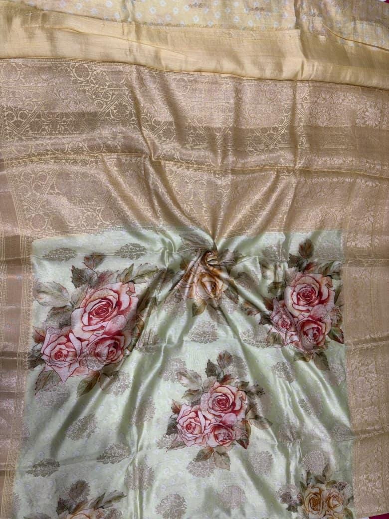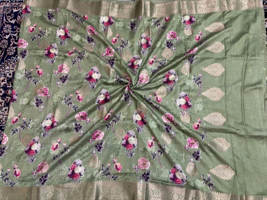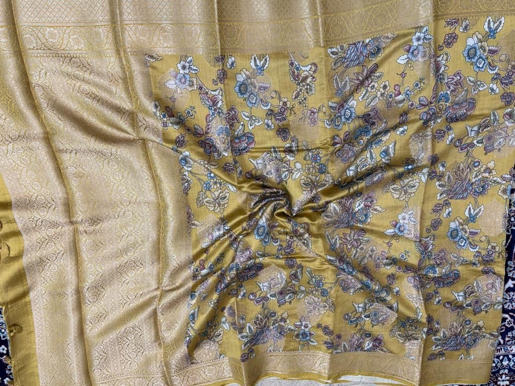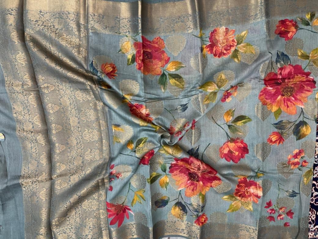 Experience the perfect harmony of ancestral weaving and modern technology. This Pure Silk Saree is first meticulously hand-woven on a traditional loom and then transformed with high-definition digital prints, creating a masterpiece for the contemporary woman.