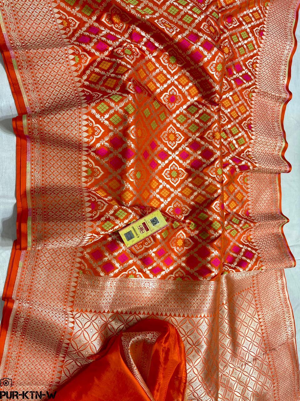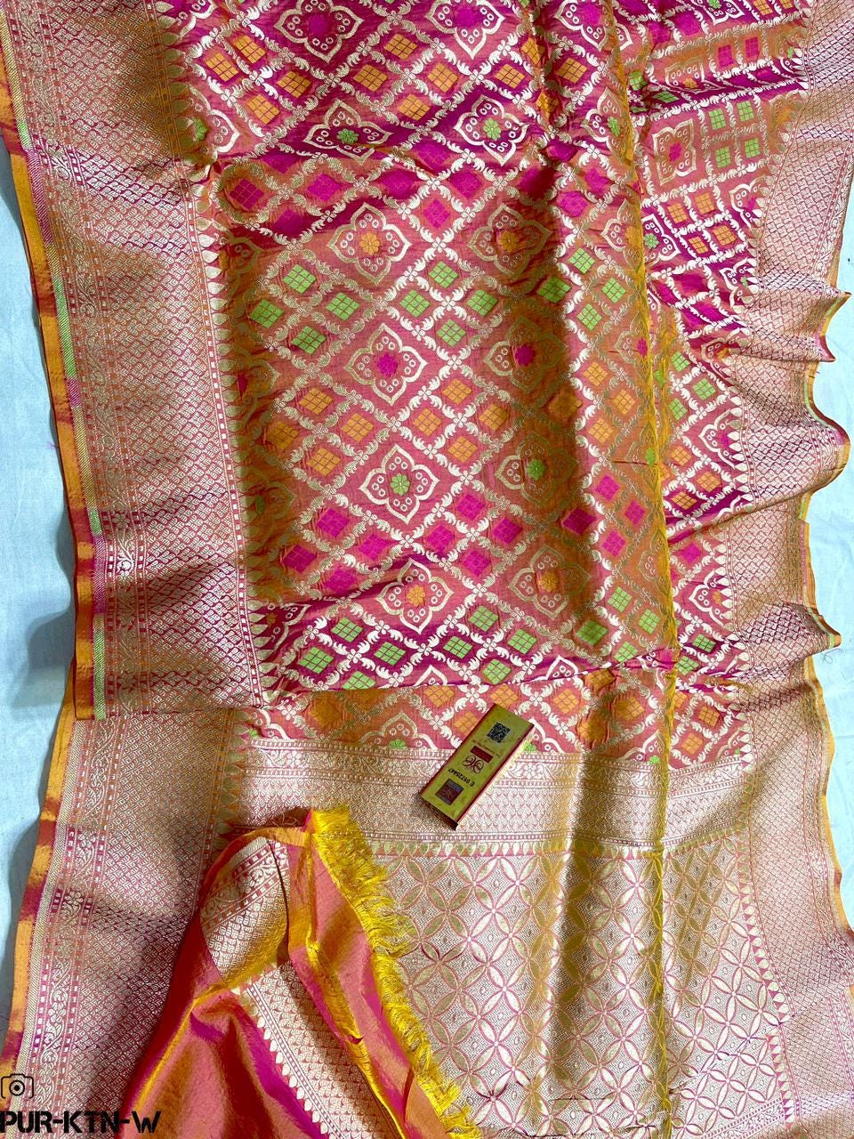 Experience the luxury of khaddi katan tissue Silk, adorned with exquisite handloom prints and a stunning organic banaras silk weave. This saree is a perfect fusion of heritage and contemporary elegance, making it ideal for weddings, festive occasions, and grand celebrations. A timeless masterpiece for your ethnic collection!