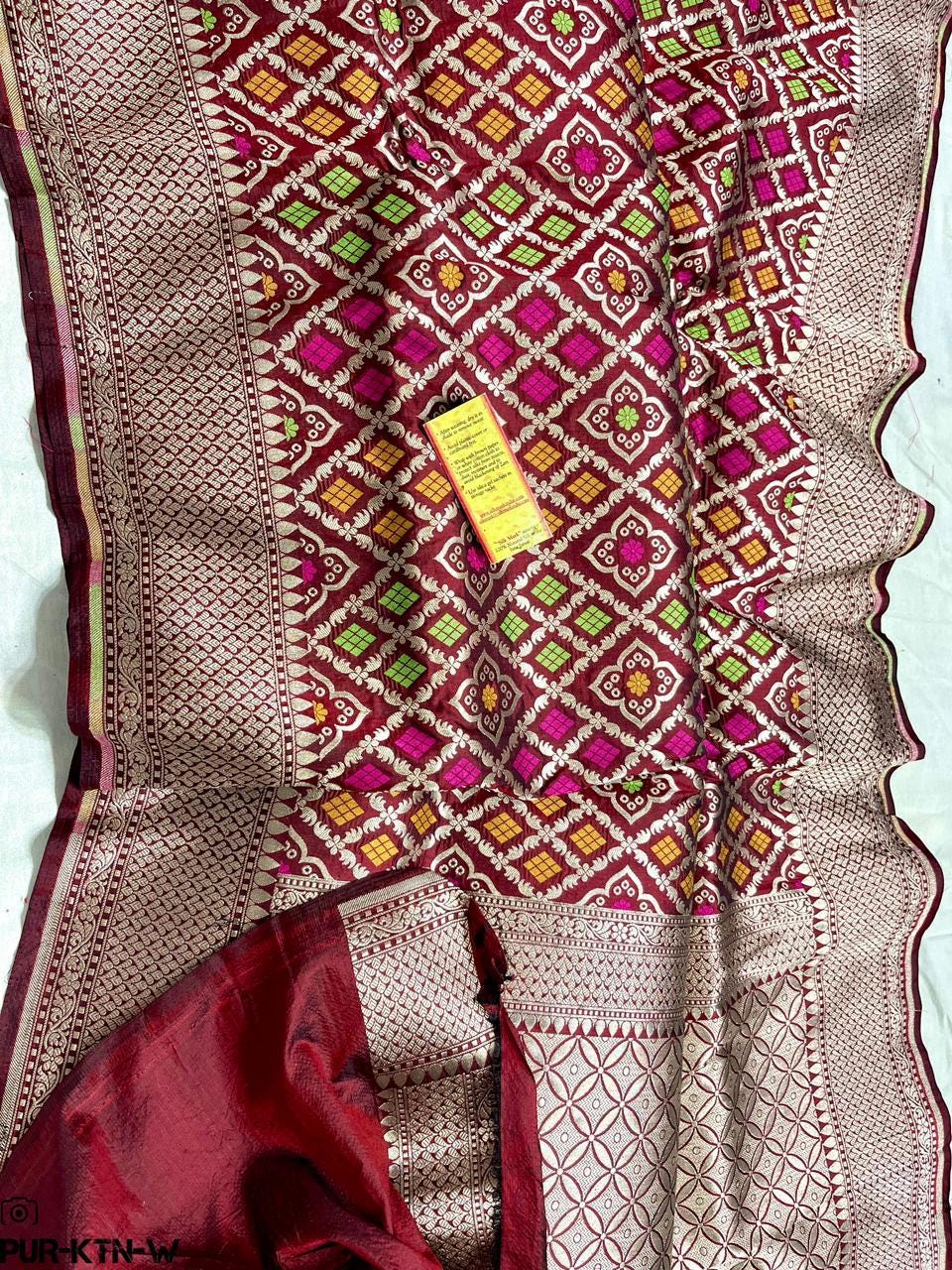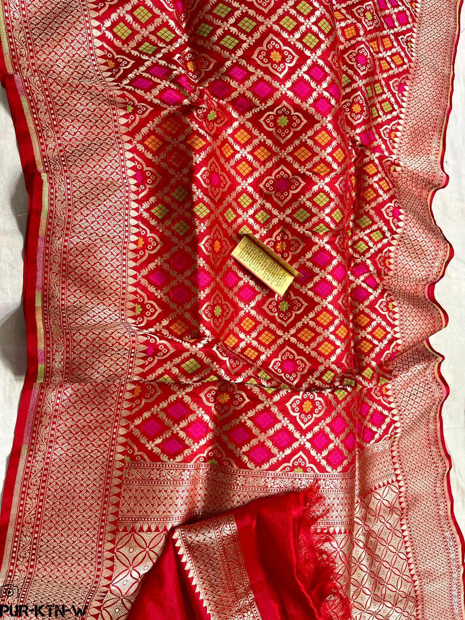 Pure Katan Silk Meena Jaal Saree | Hand-Woven Kadwa Masterpiece Wedding Sari