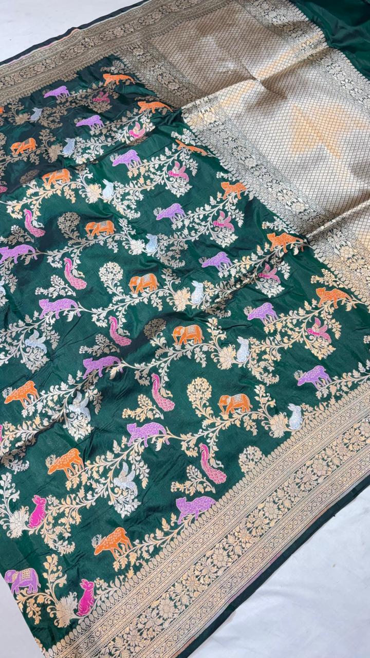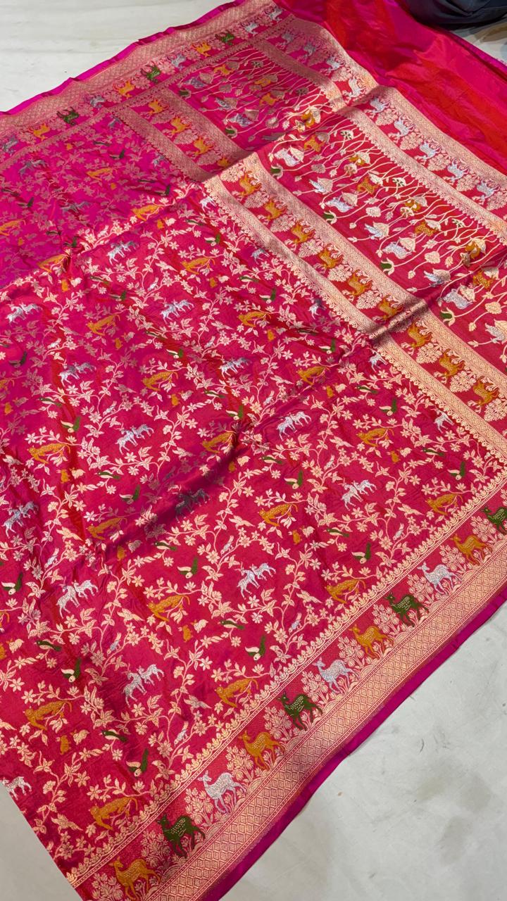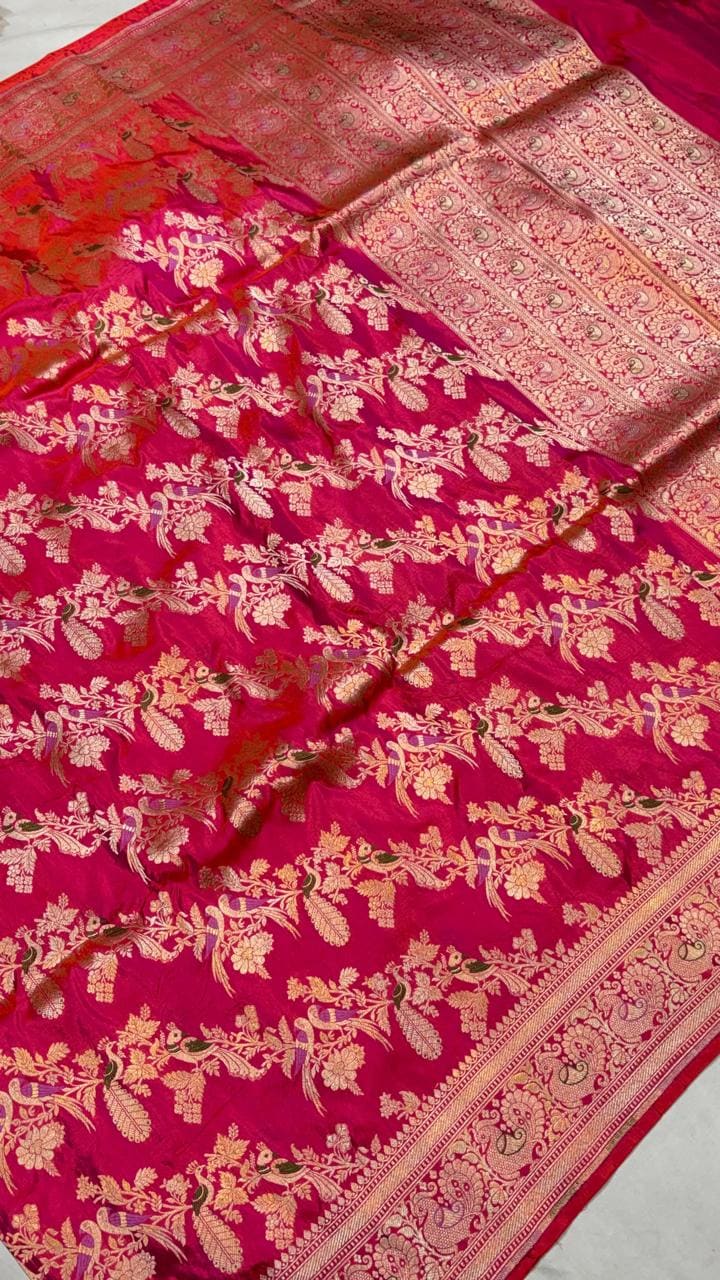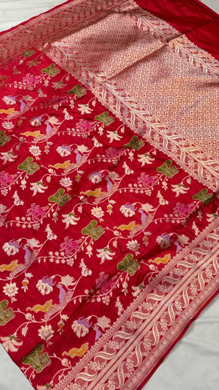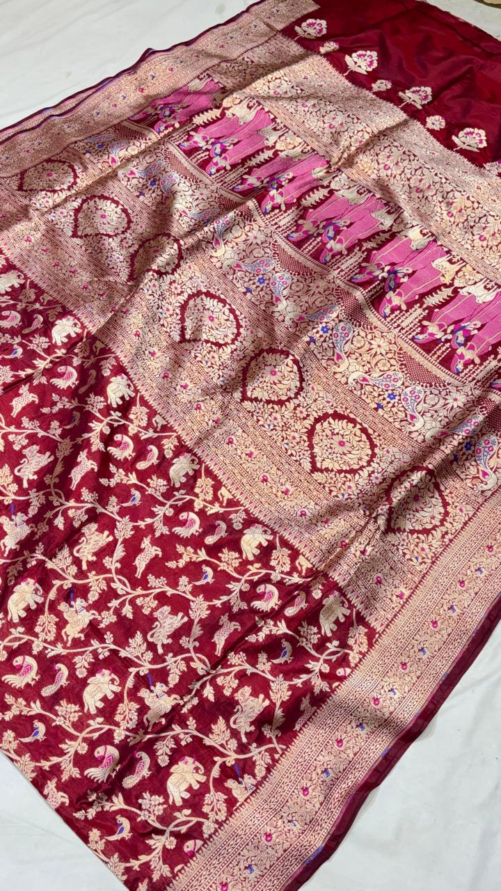 Handloom Banarasi Katan Silk Saree | Traditional Figure Buta Kadwa Weave | Bridal Art