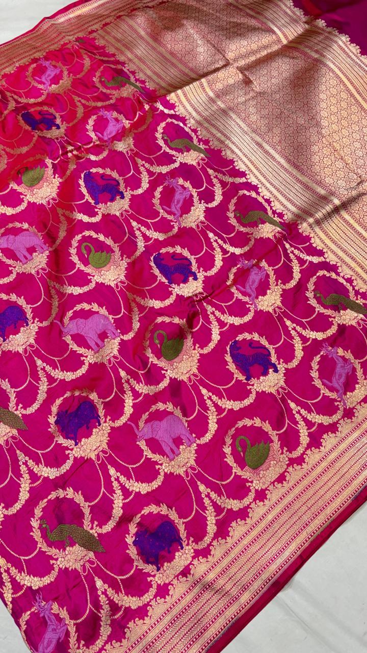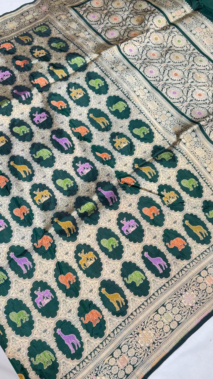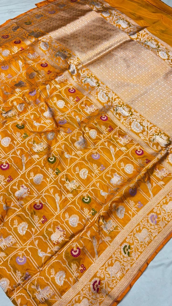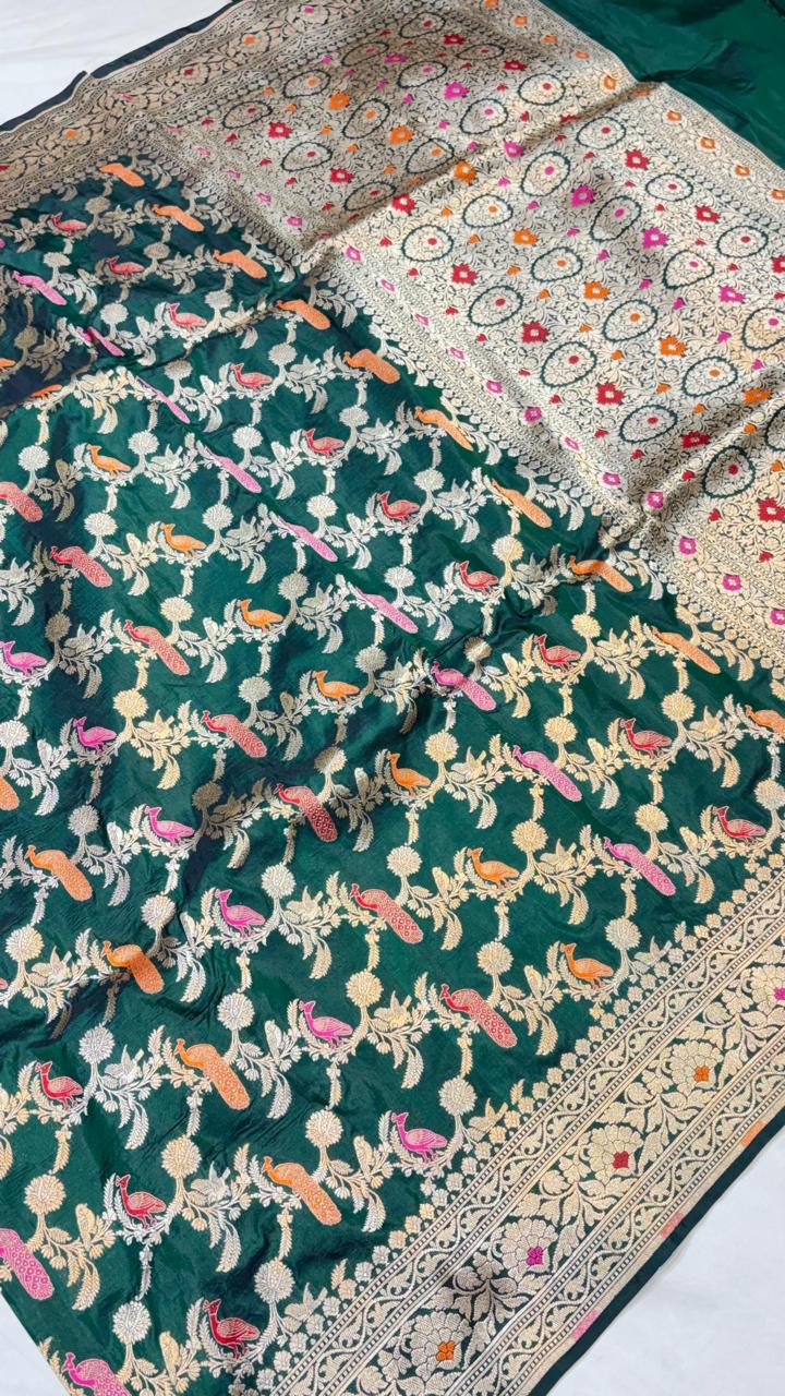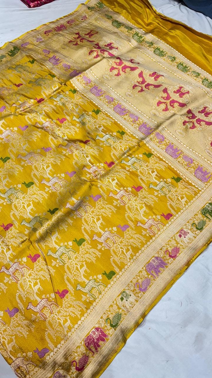 Handloom Banarasi Katan Silk Saree | Traditional Figure Buta Kadwa Weave | Bridal Art