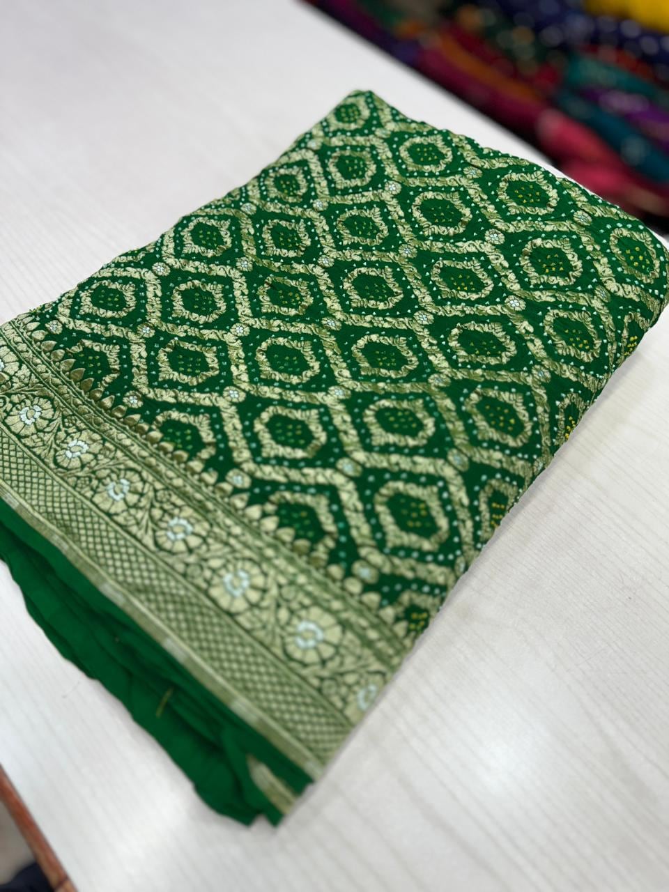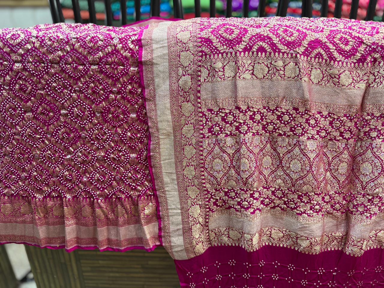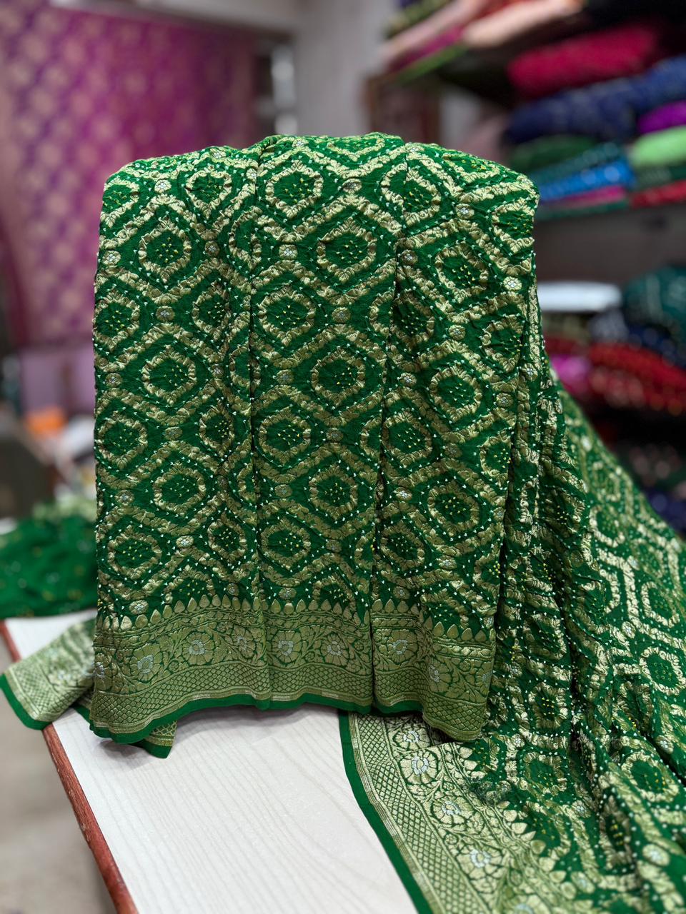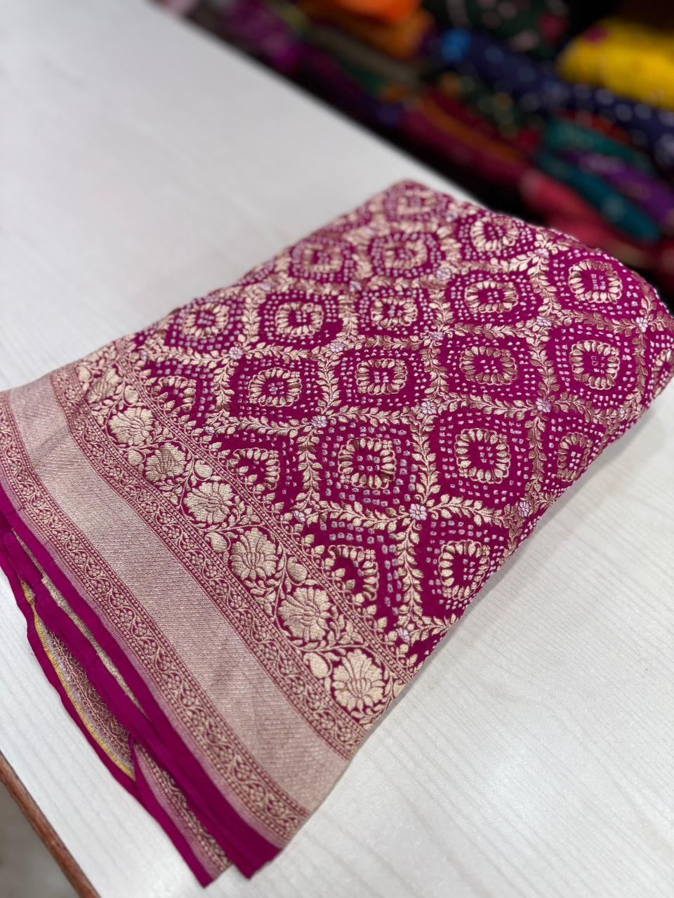 • Color: Available in a curated range of beautiful heritage tones with traditional White Bandhej motifs.