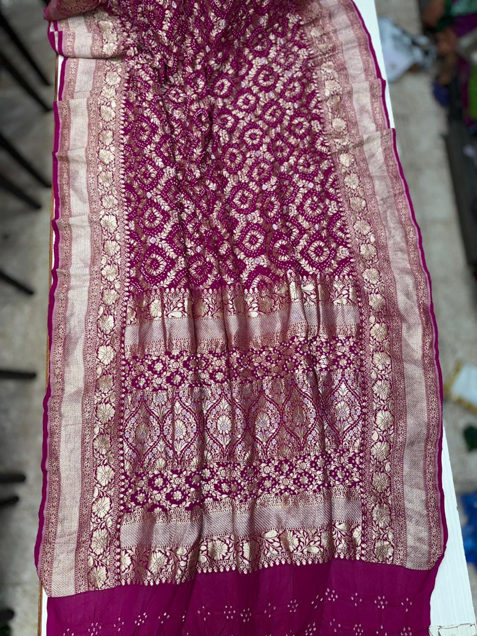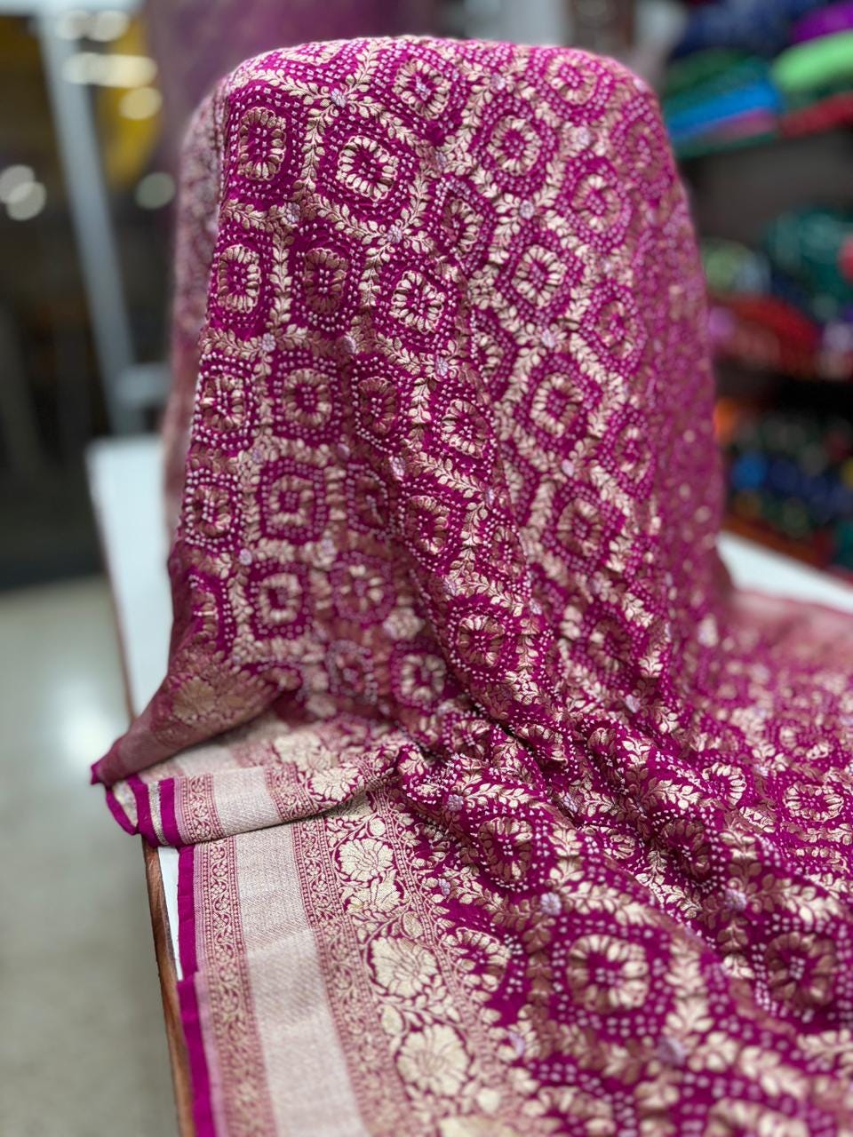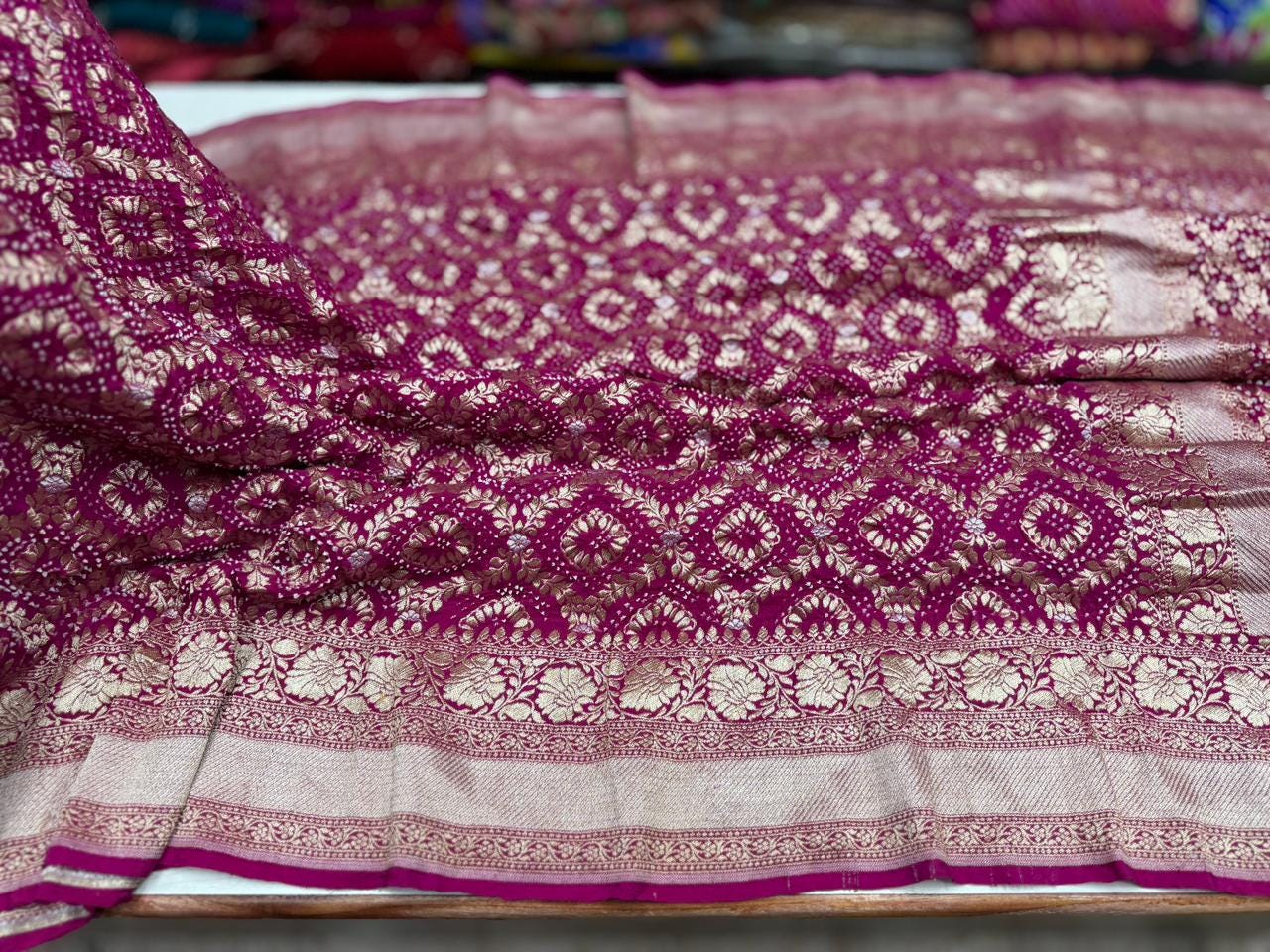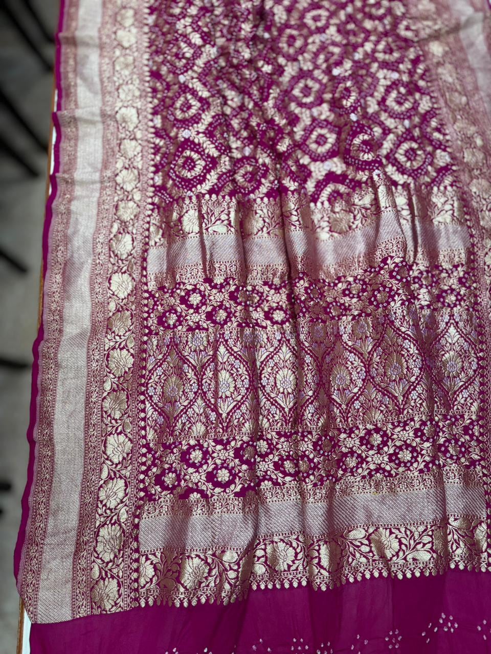 • Color: Available in a curated range of beautiful heritage tones with traditional White Bandhej motifs.