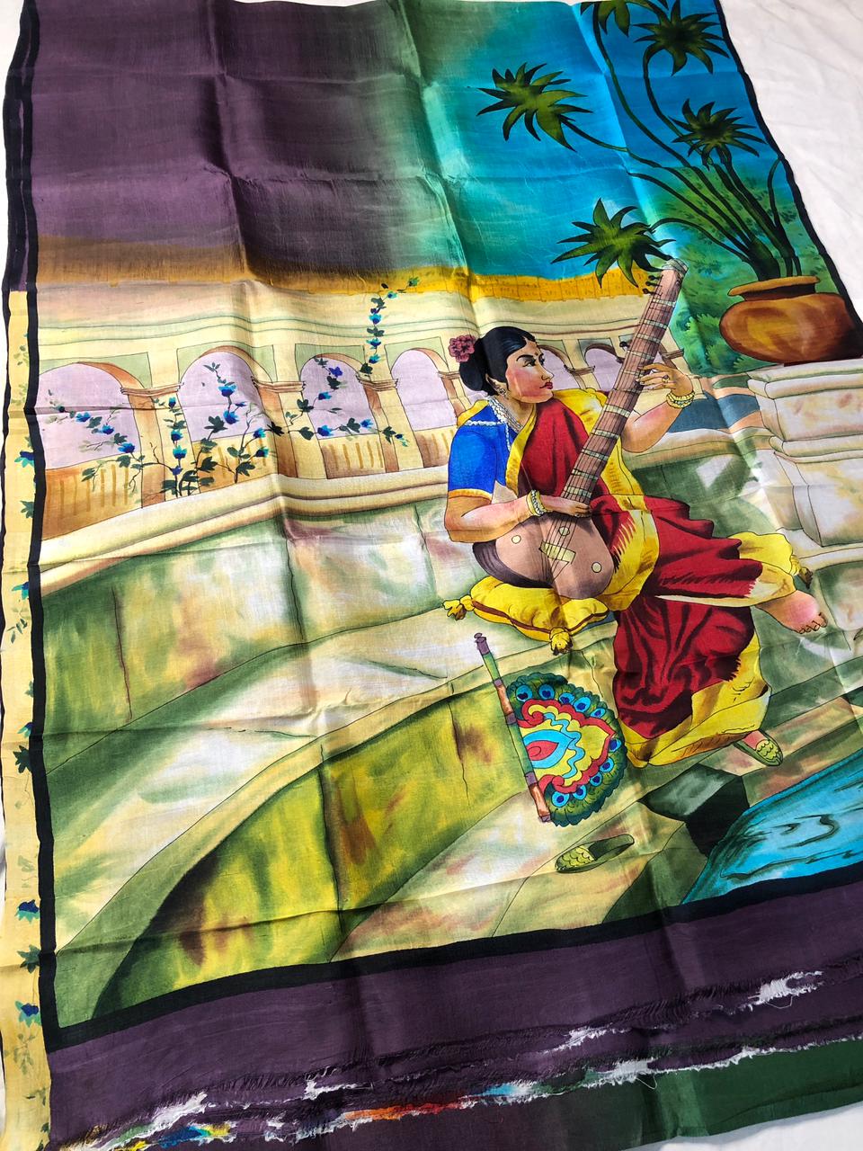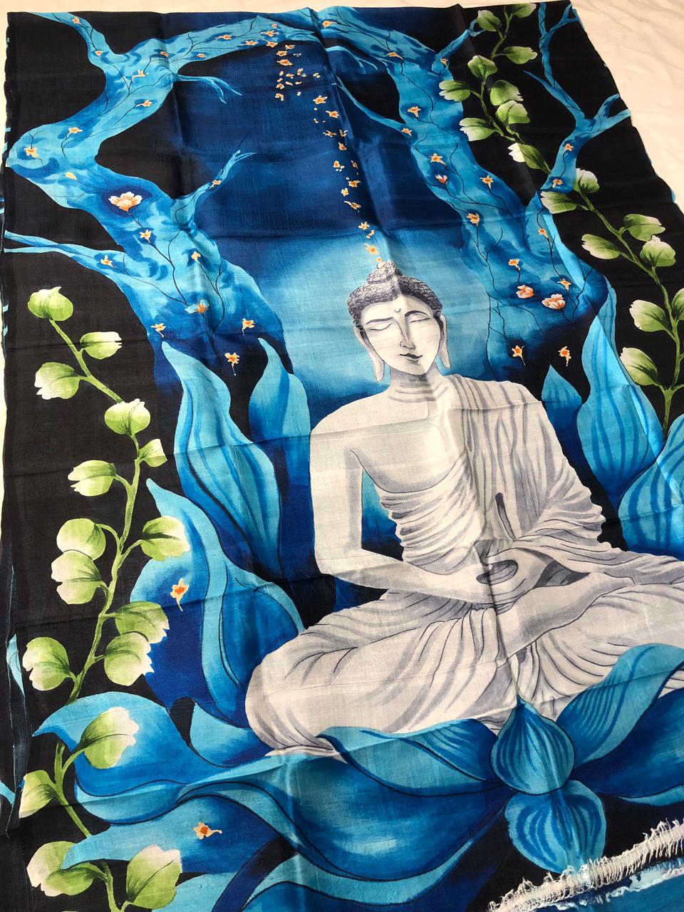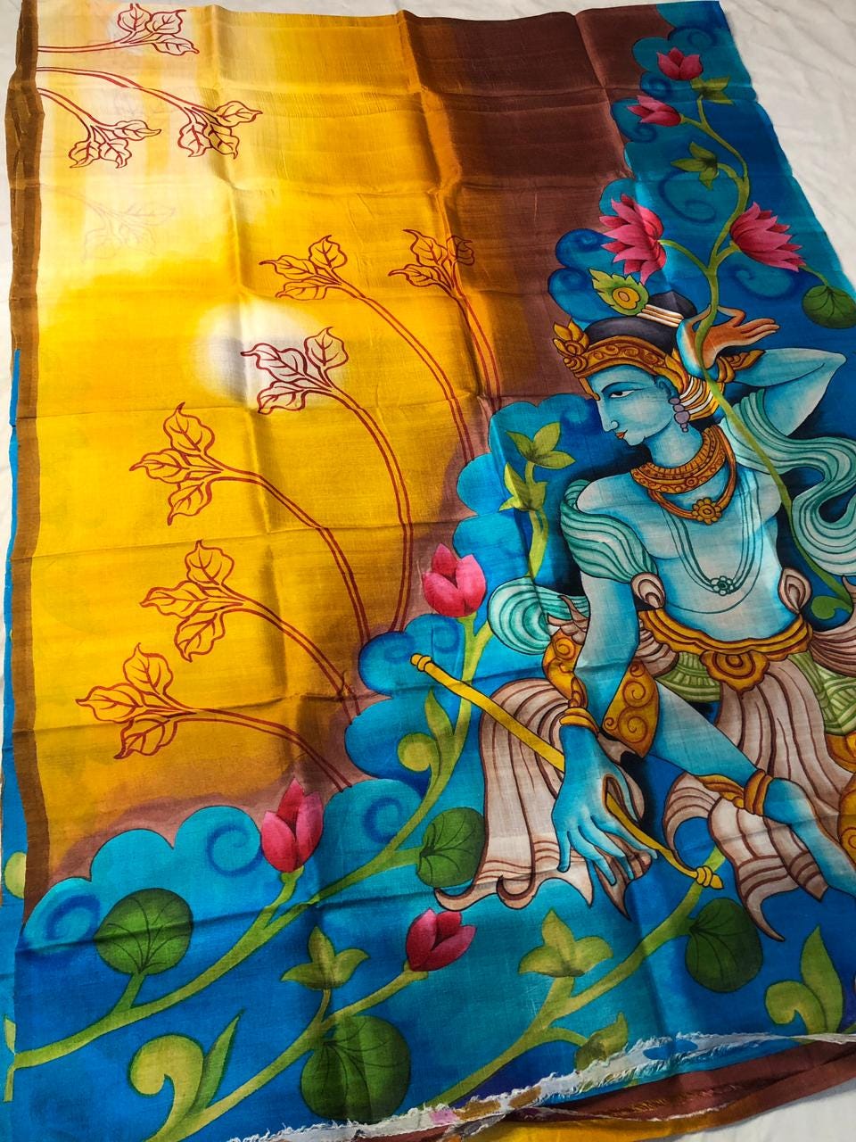 Experience the raw, organic elegance of Pure Tussar Silk. This handcrafted masterpiece features an ethereal hand-painted design, meticulously applied to a premium handloom base by our master artisans.