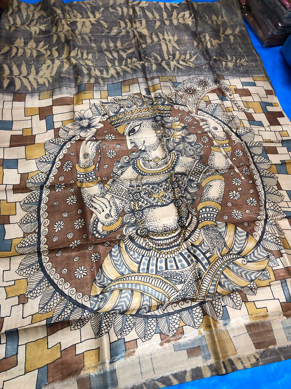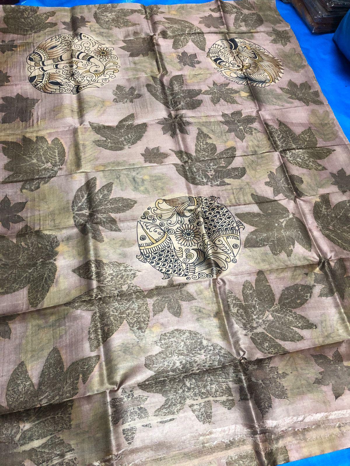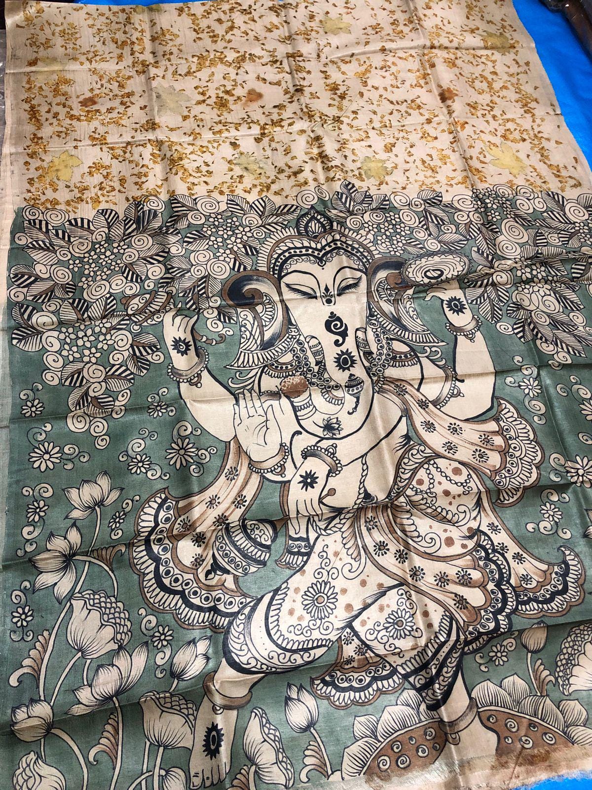Experience the raw, organic elegance of Pure Tussar Silk. This handcrafted masterpiece features an ethereal hand-painted design, meticulously applied to a premium handloom base by our master artisans.