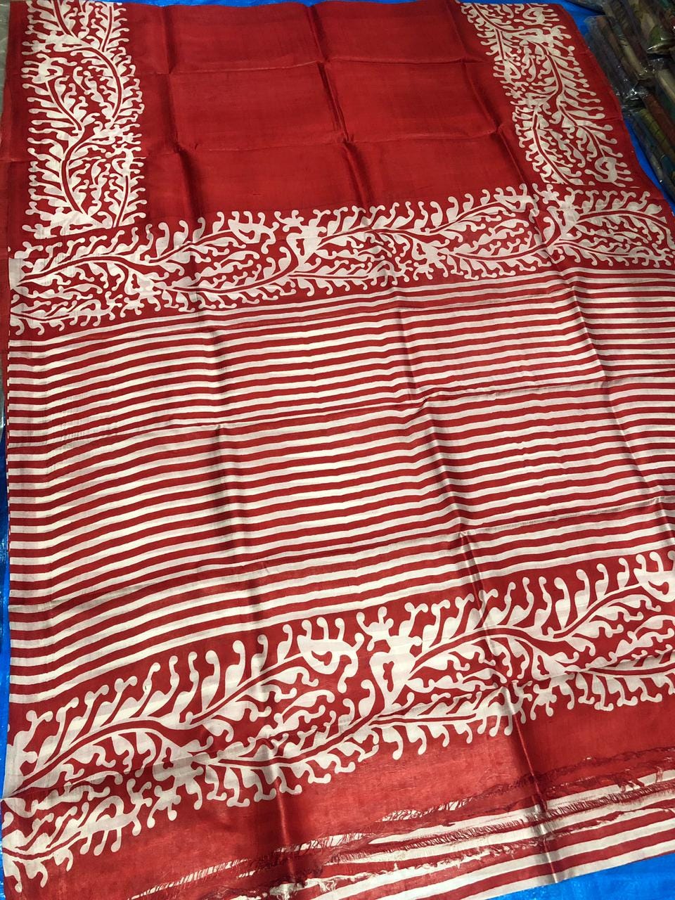 Experience the raw, organic elegance of Pure Tussar Silk. This handcrafted masterpiece features an ethereal hand-painted design, meticulously applied to a premium handloom base by our master artisans.
