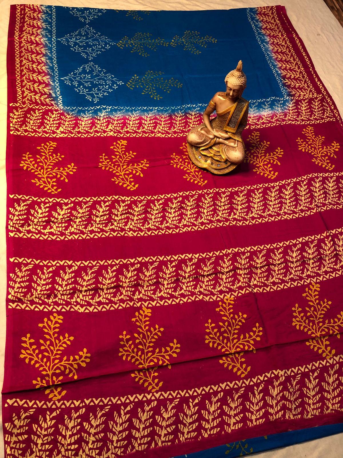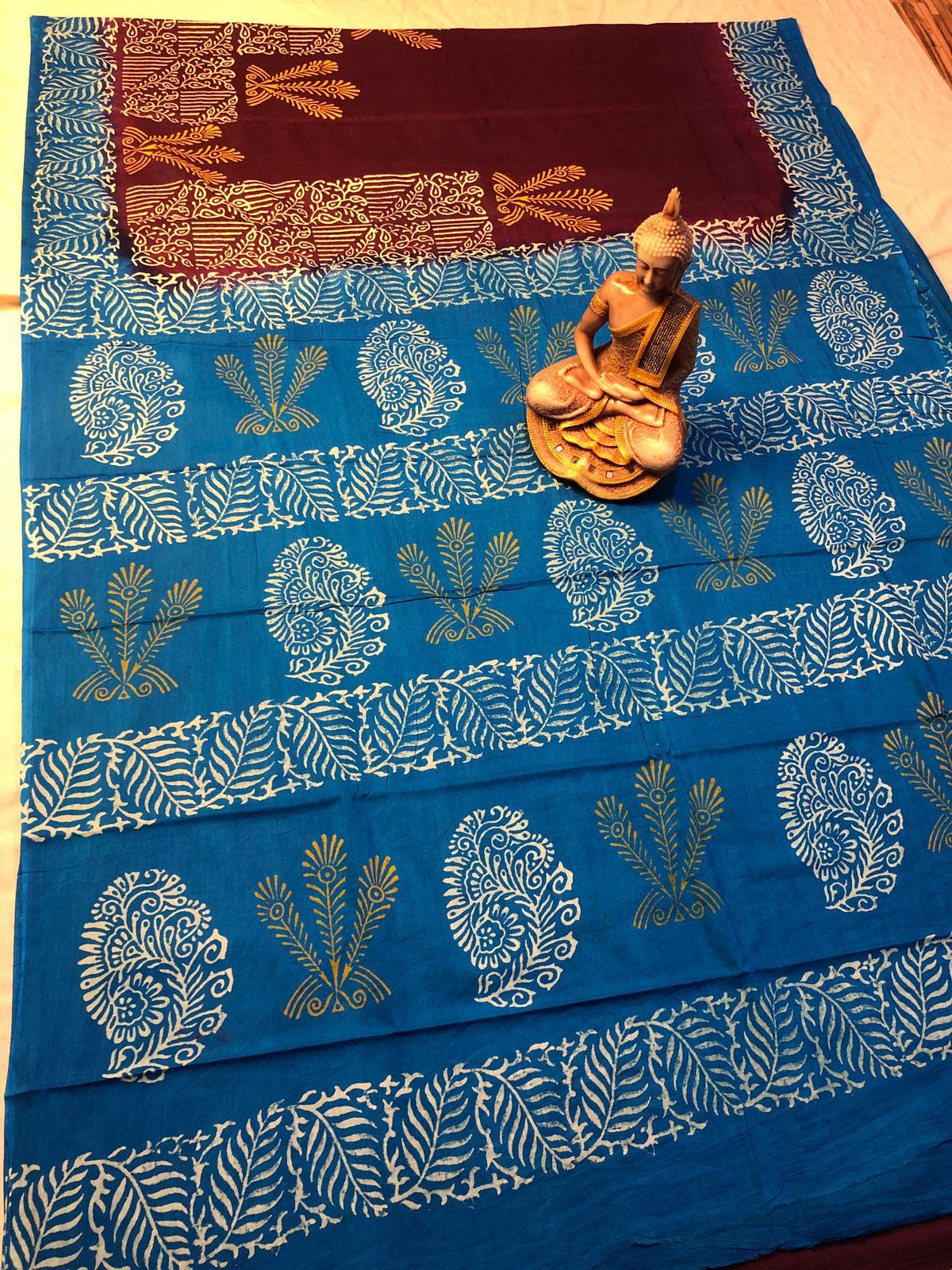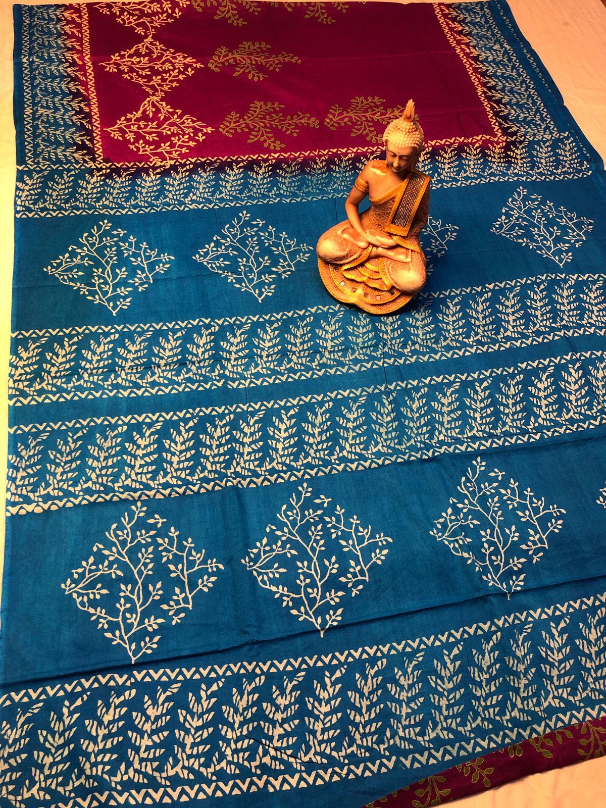 • Hand Discharge Block Print: A traditional artisanal technique where patterns are created by expertly removing dye, resulting in a soft-to-the-touch finish.