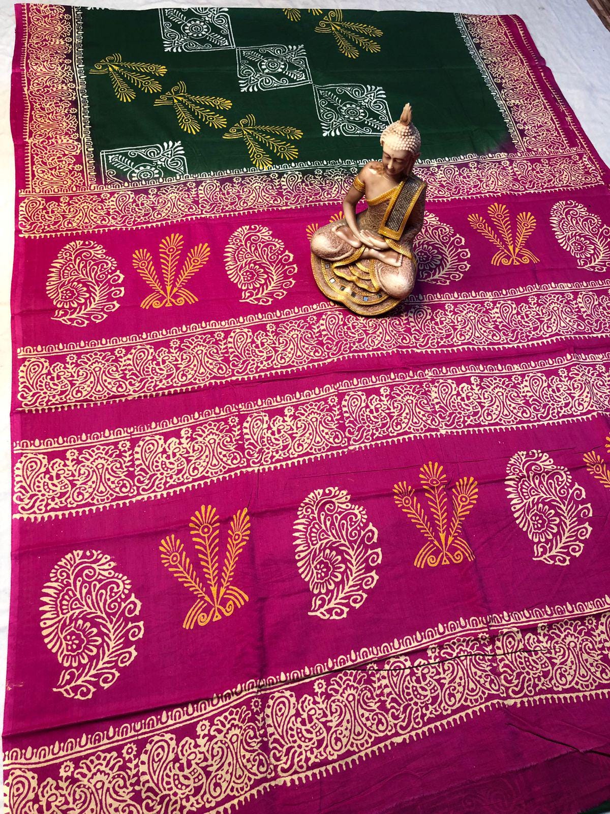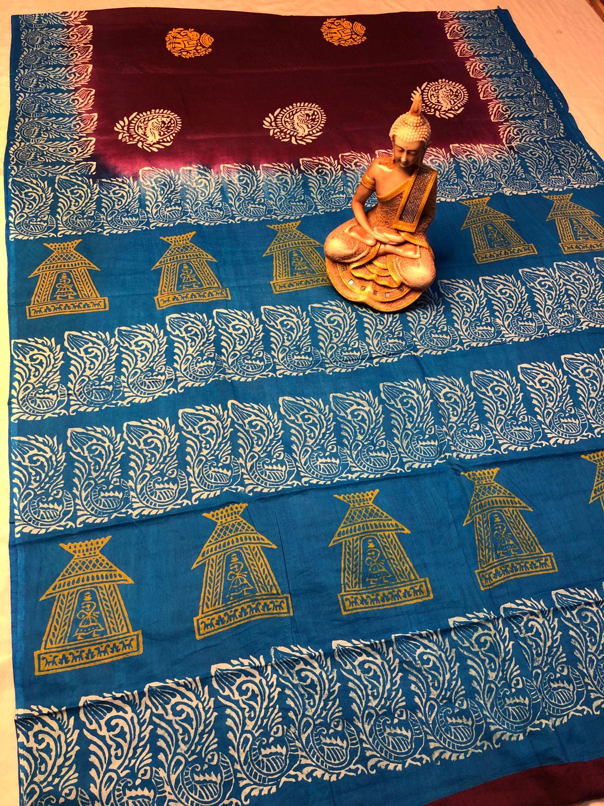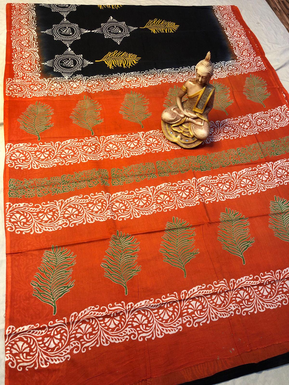 • Hand Discharge Block Print: A traditional artisanal technique where patterns are created by expertly removing dye, resulting in a soft-to-the-touch finish.