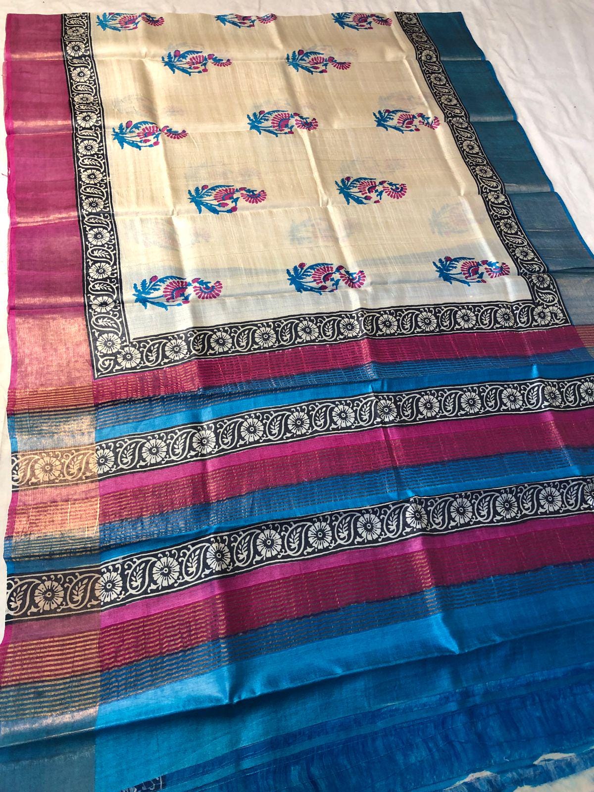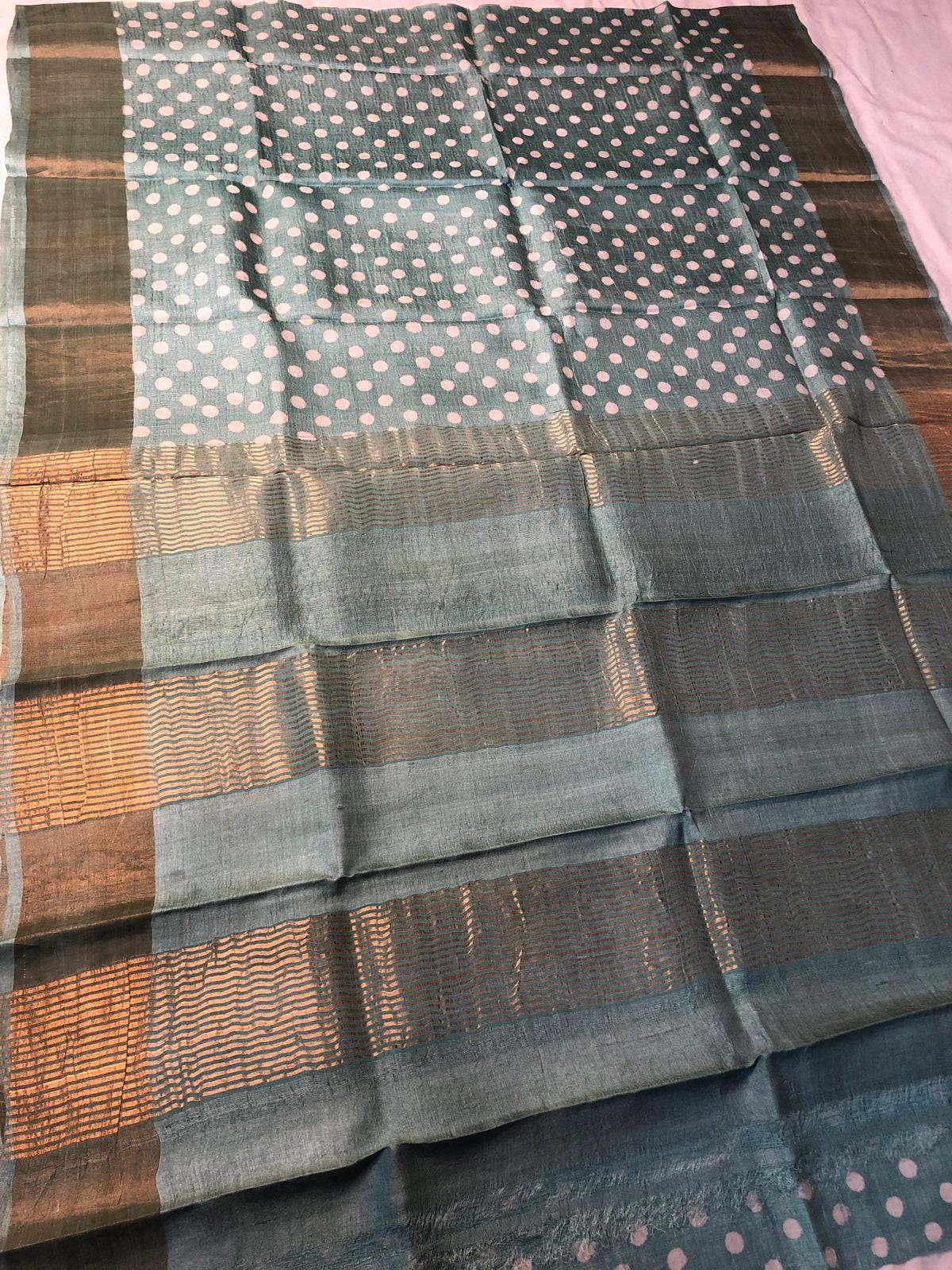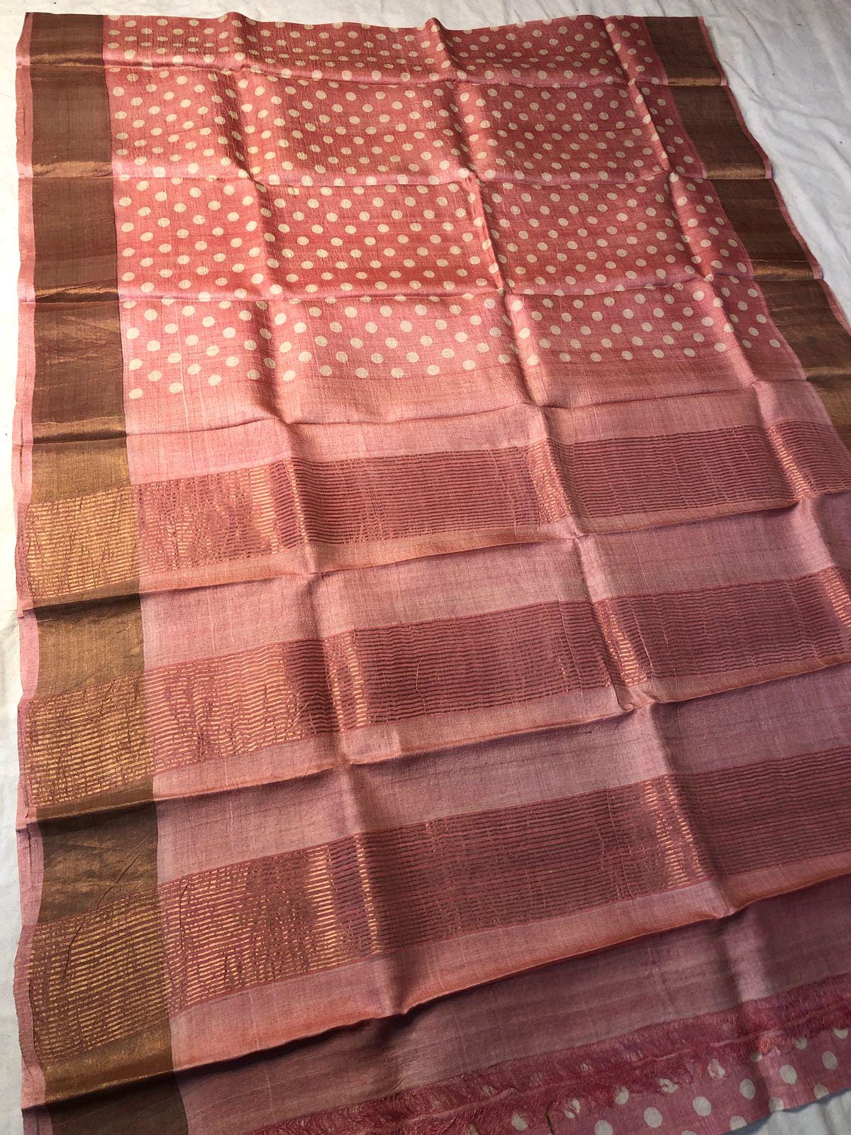 • 100% Pure Tussar Silk: Known for its rich, golden texture and breathable feel, our Tussar is of the highest premium quality.