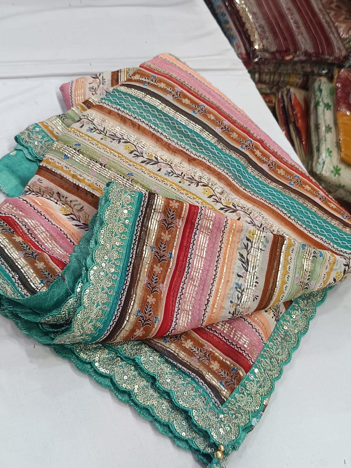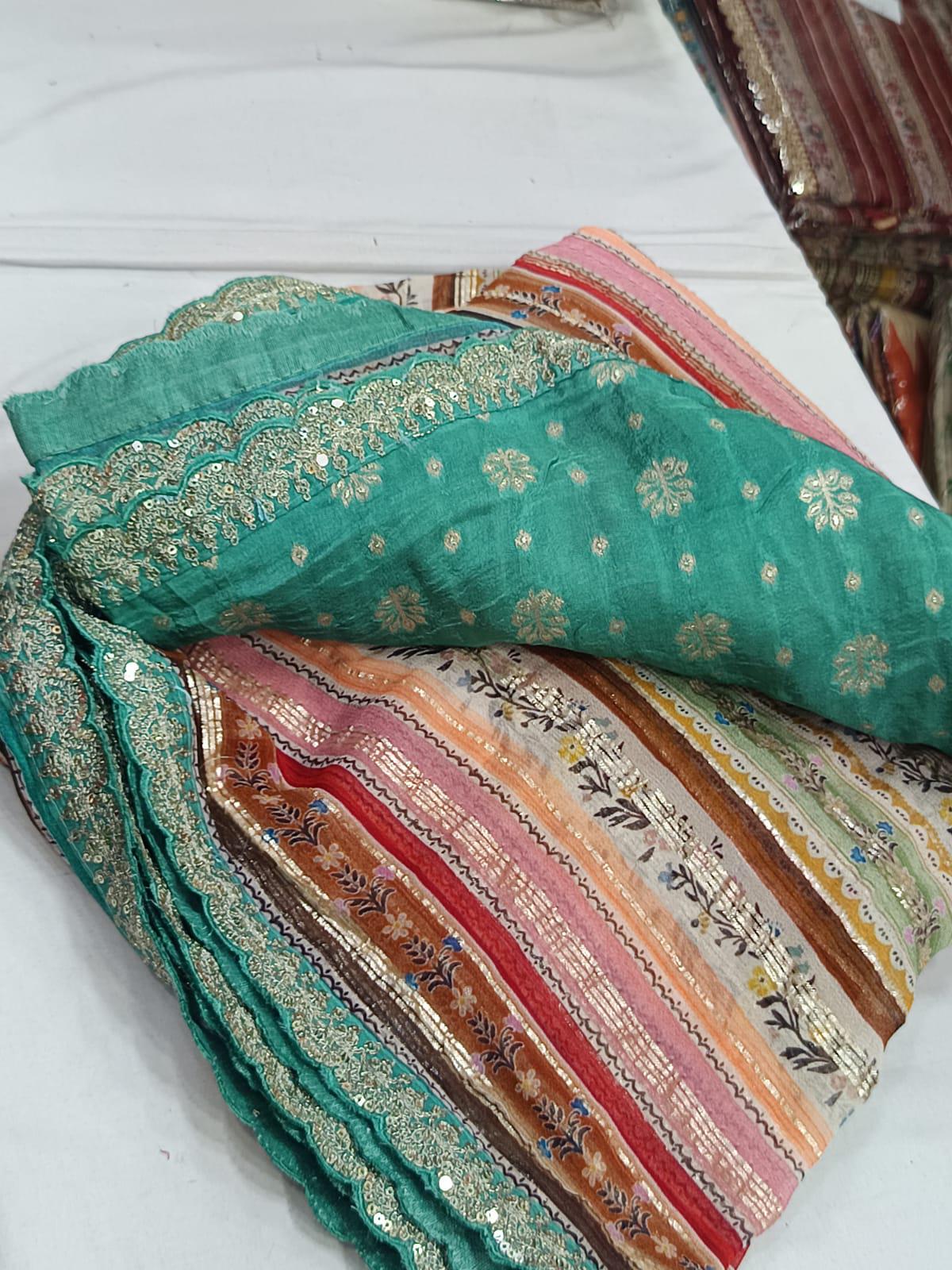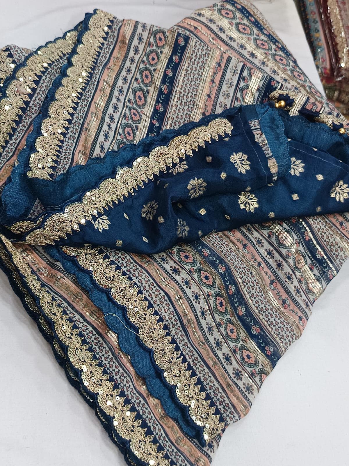 • Designer Scalloped Borders: Finished with an elite, intricately detailed scalloped edge that adds a touch of royal Indian couture to the modern print.