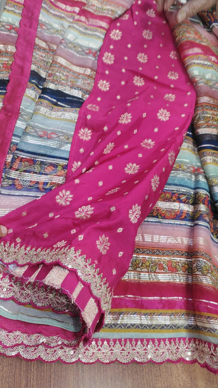 • Customization: We specialize in bespoke 12-point blouse tailoring and custom embroidery at our Delhi studio.