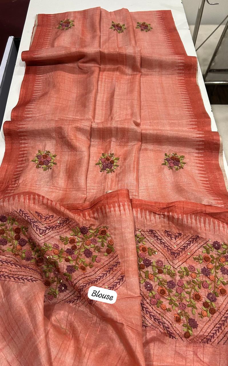 Experience the raw, organic elegance of authentic Indian textiles. This Premium Tussar Silk Saree, often referred to as 'Wild Silk,' is celebrated for its rich natural texture and deep golden sheen, now elevated with exquisite artisanal handwork.