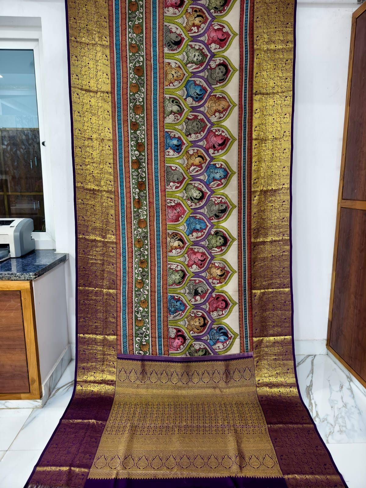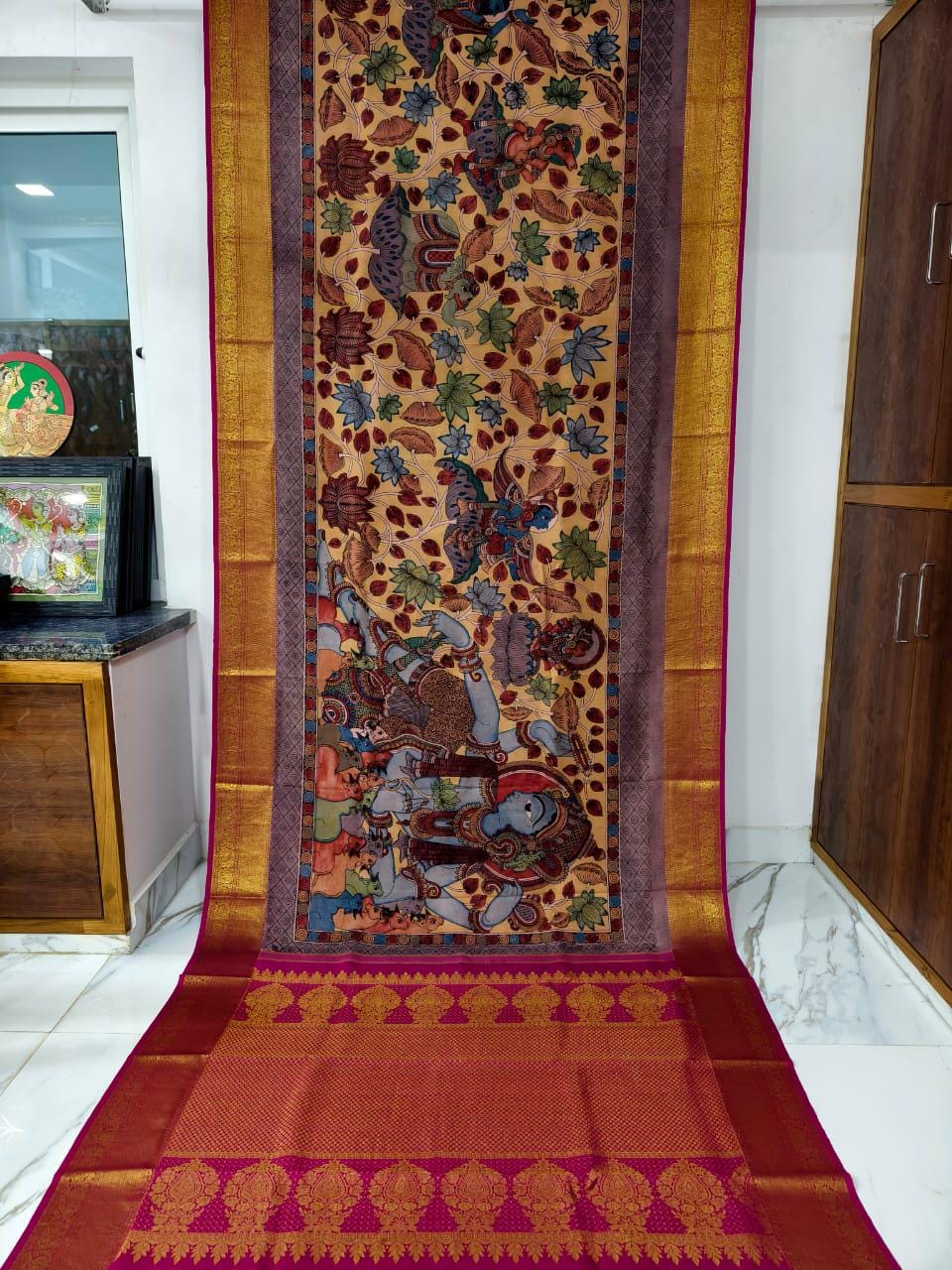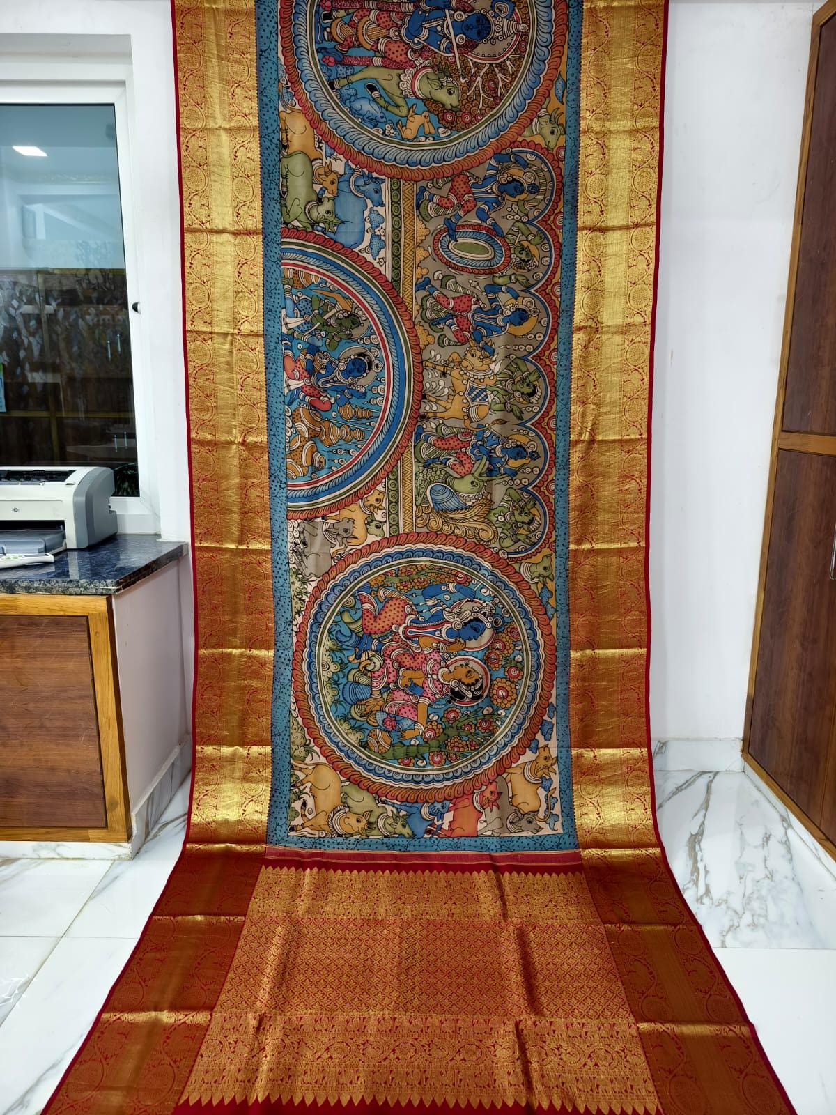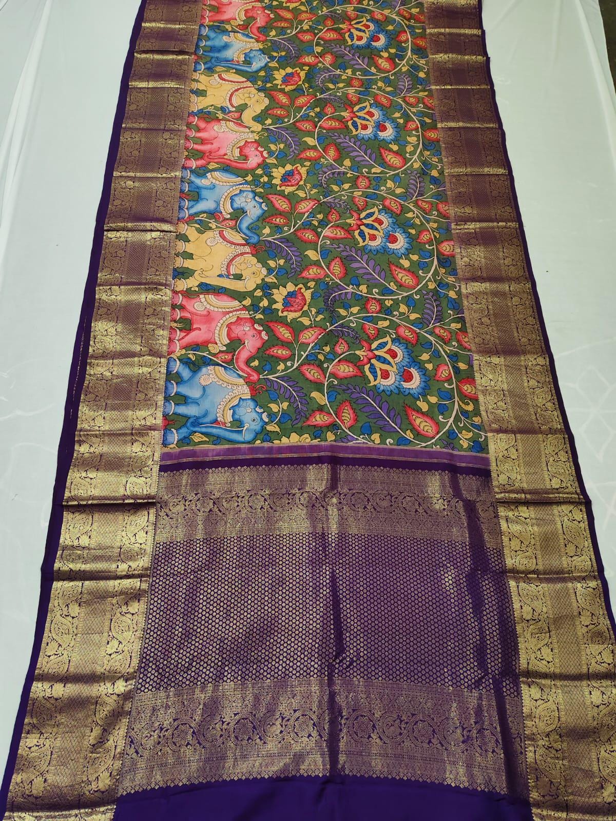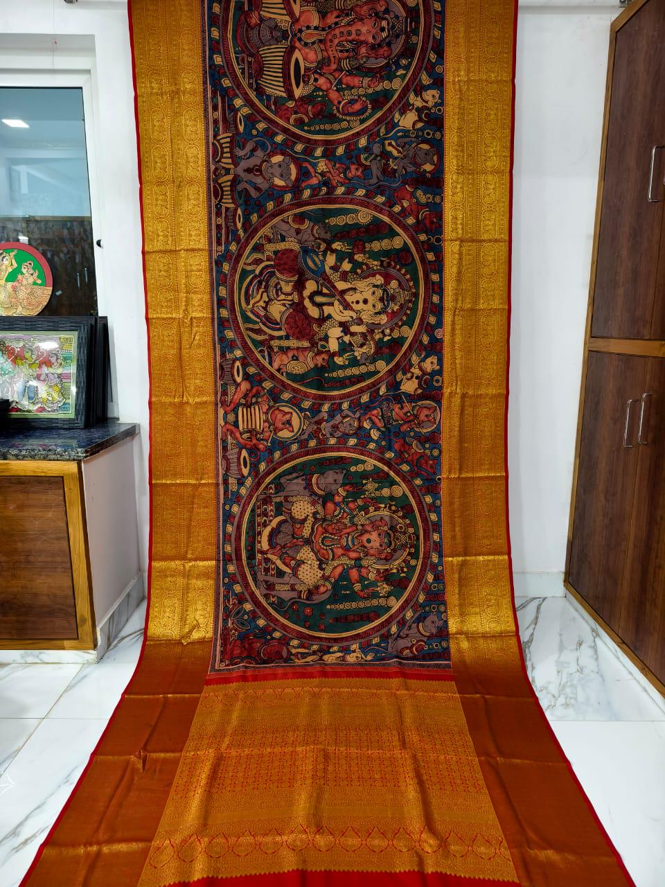 Handloom Pen kalamkari Kancheepuram Silk Saree | Pure Zari Bridal Pattu