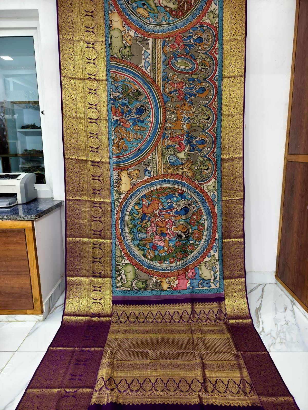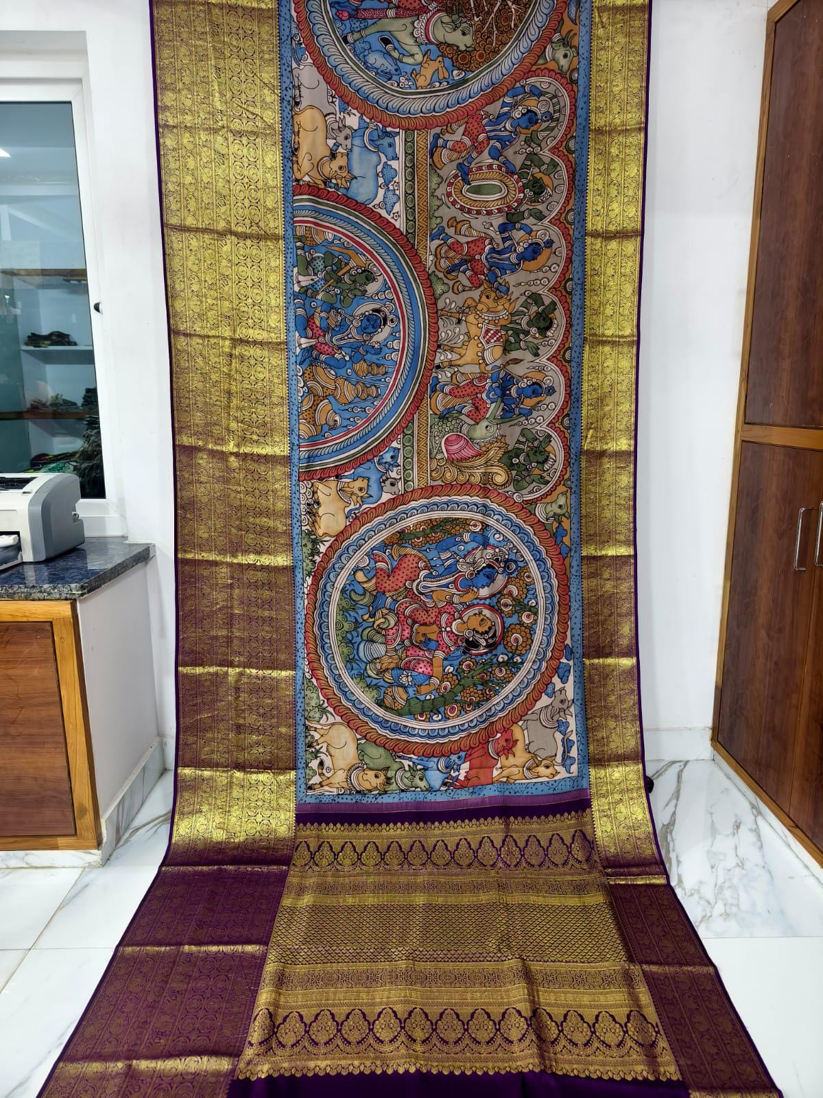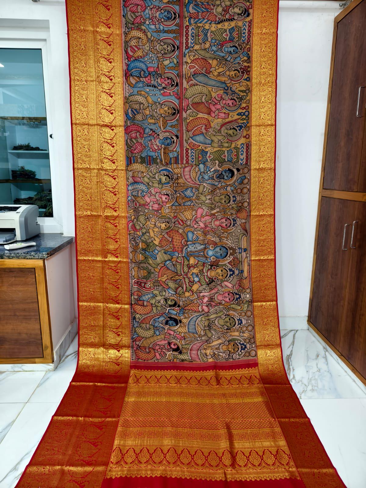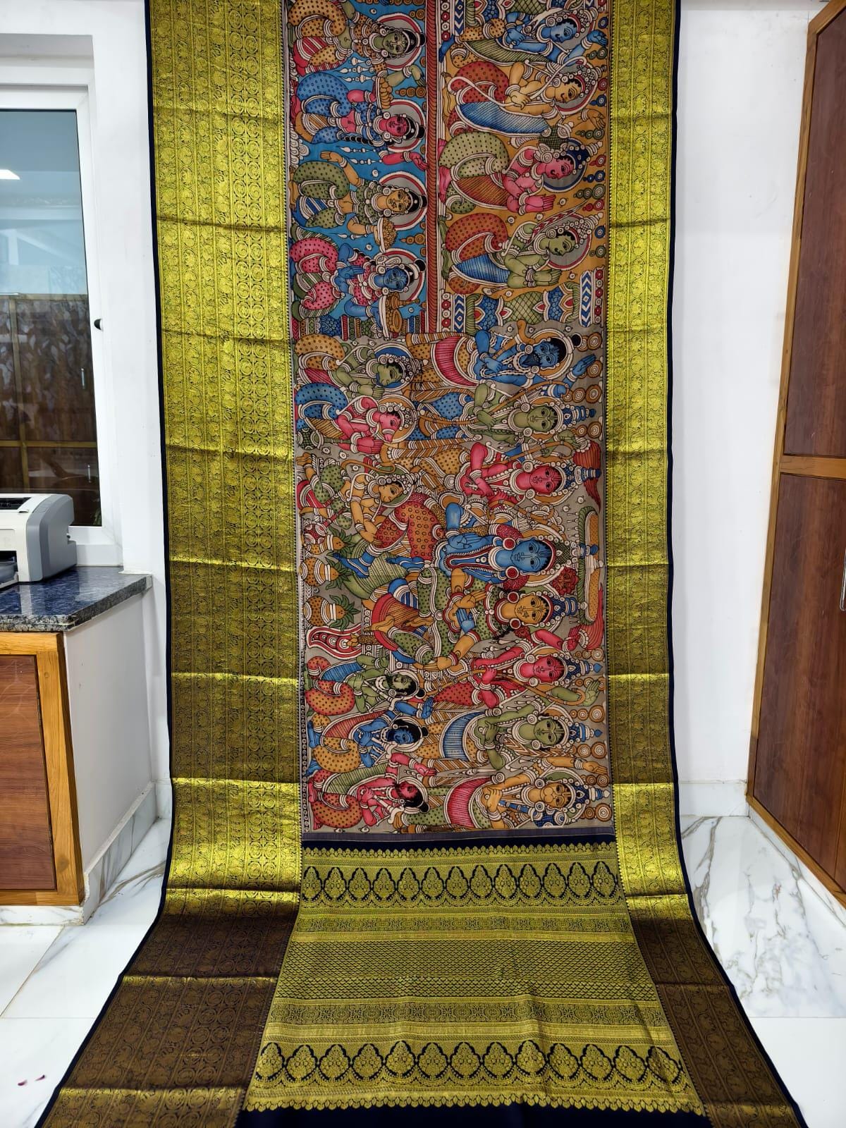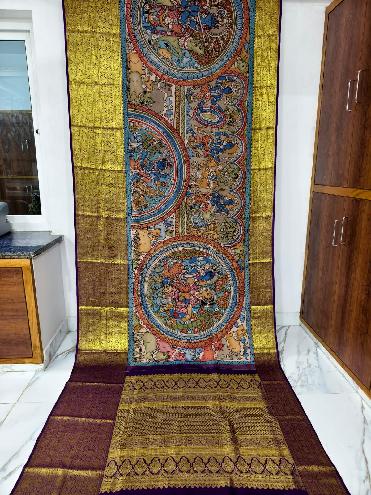 Handloom Pen kalamkari Kancheepuram Silk Saree | Pure Zari Bridal Pattu