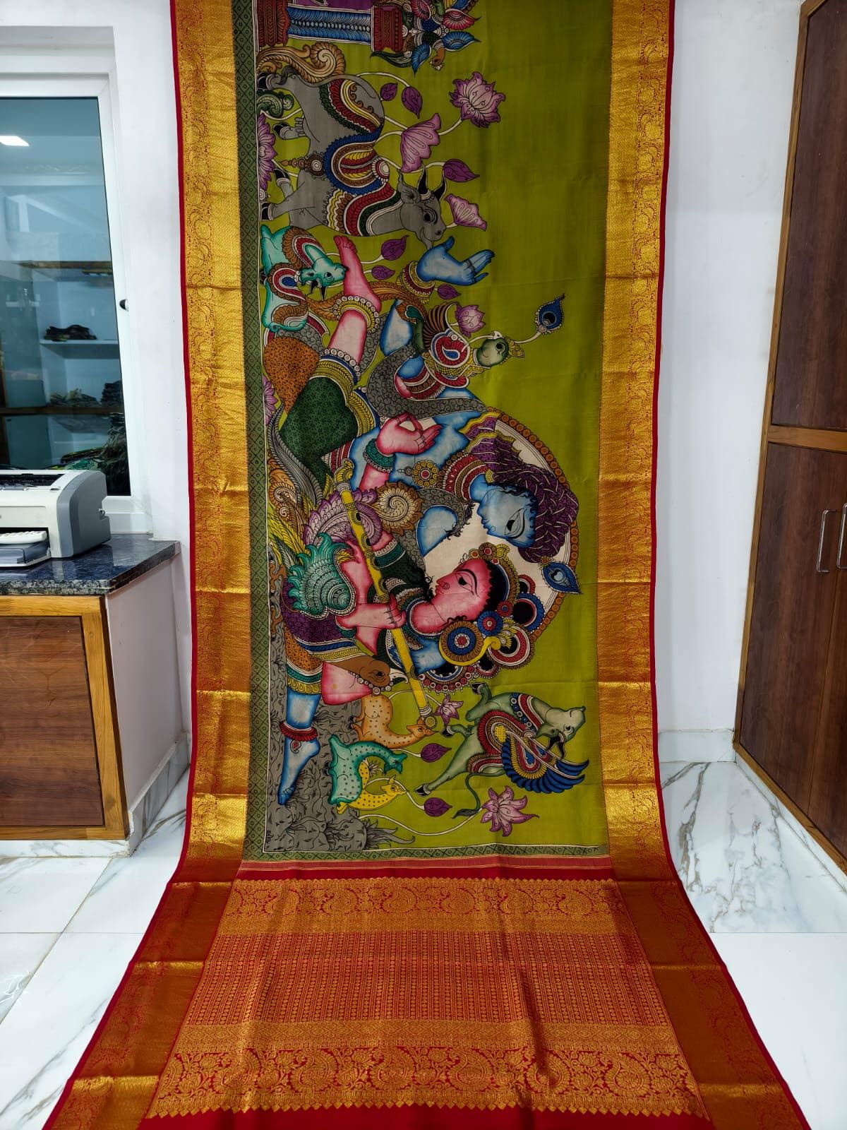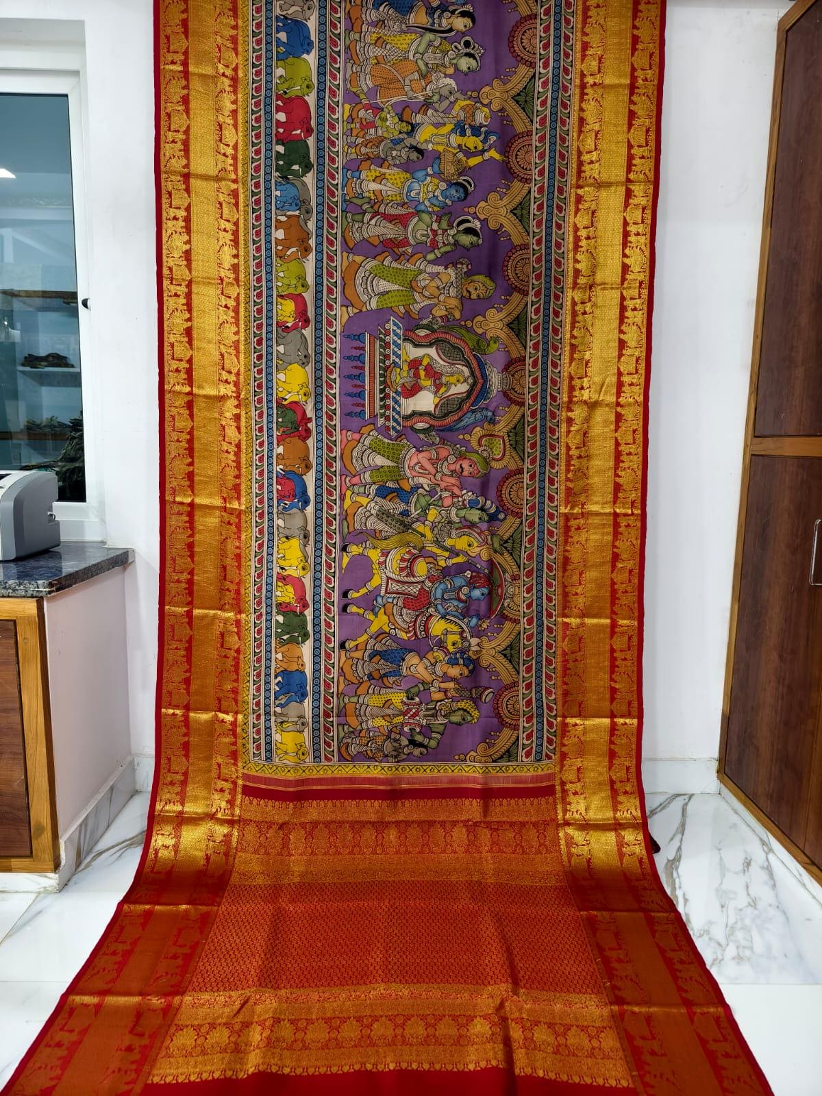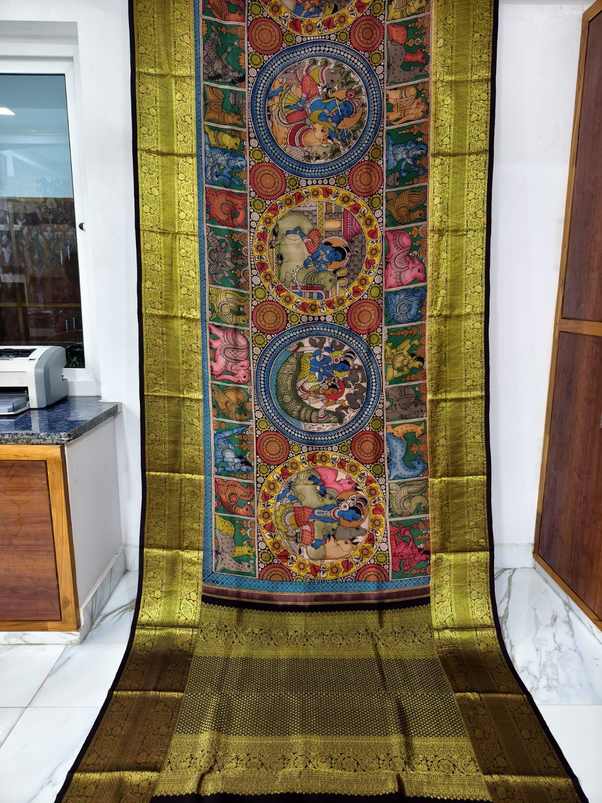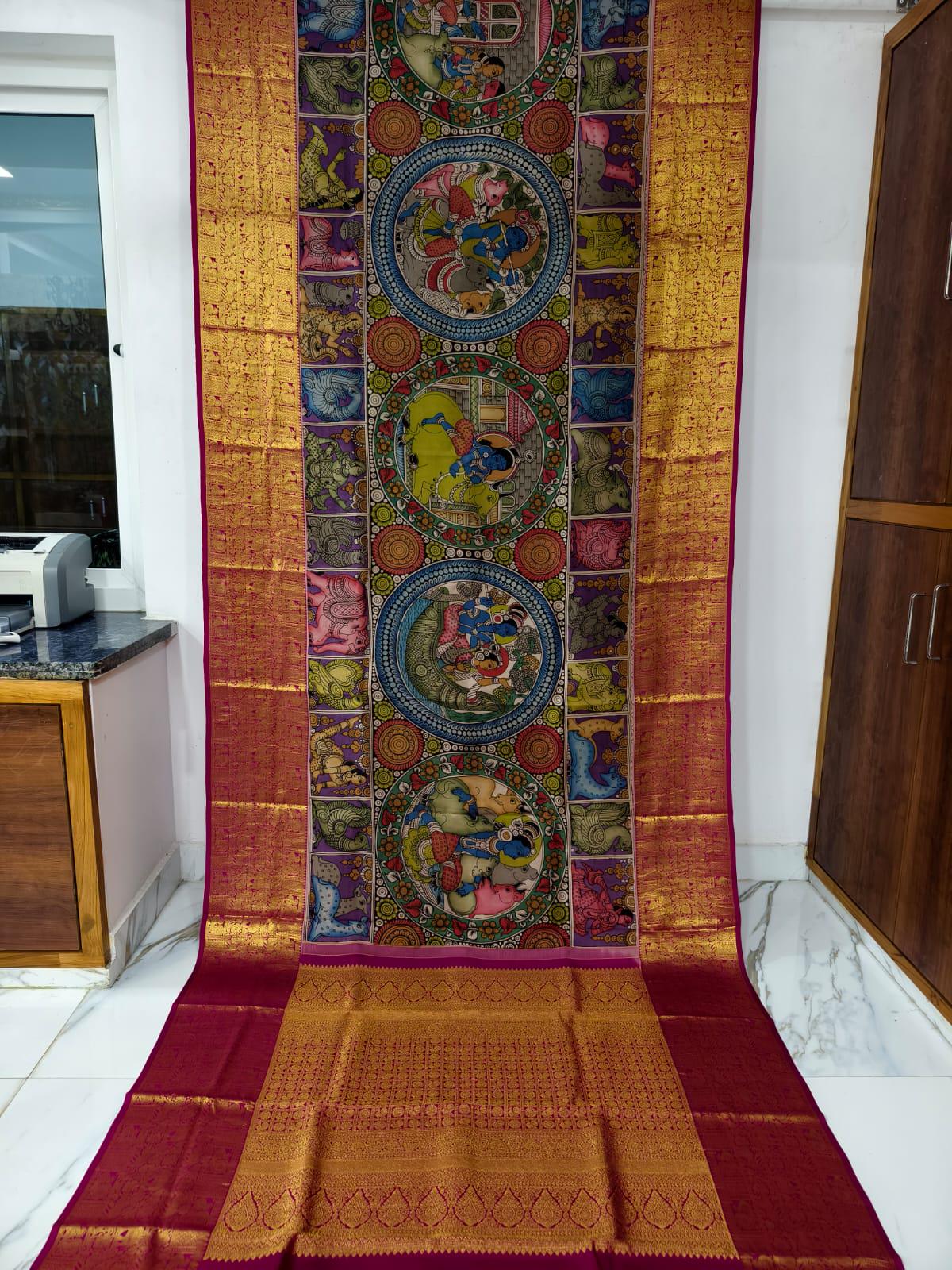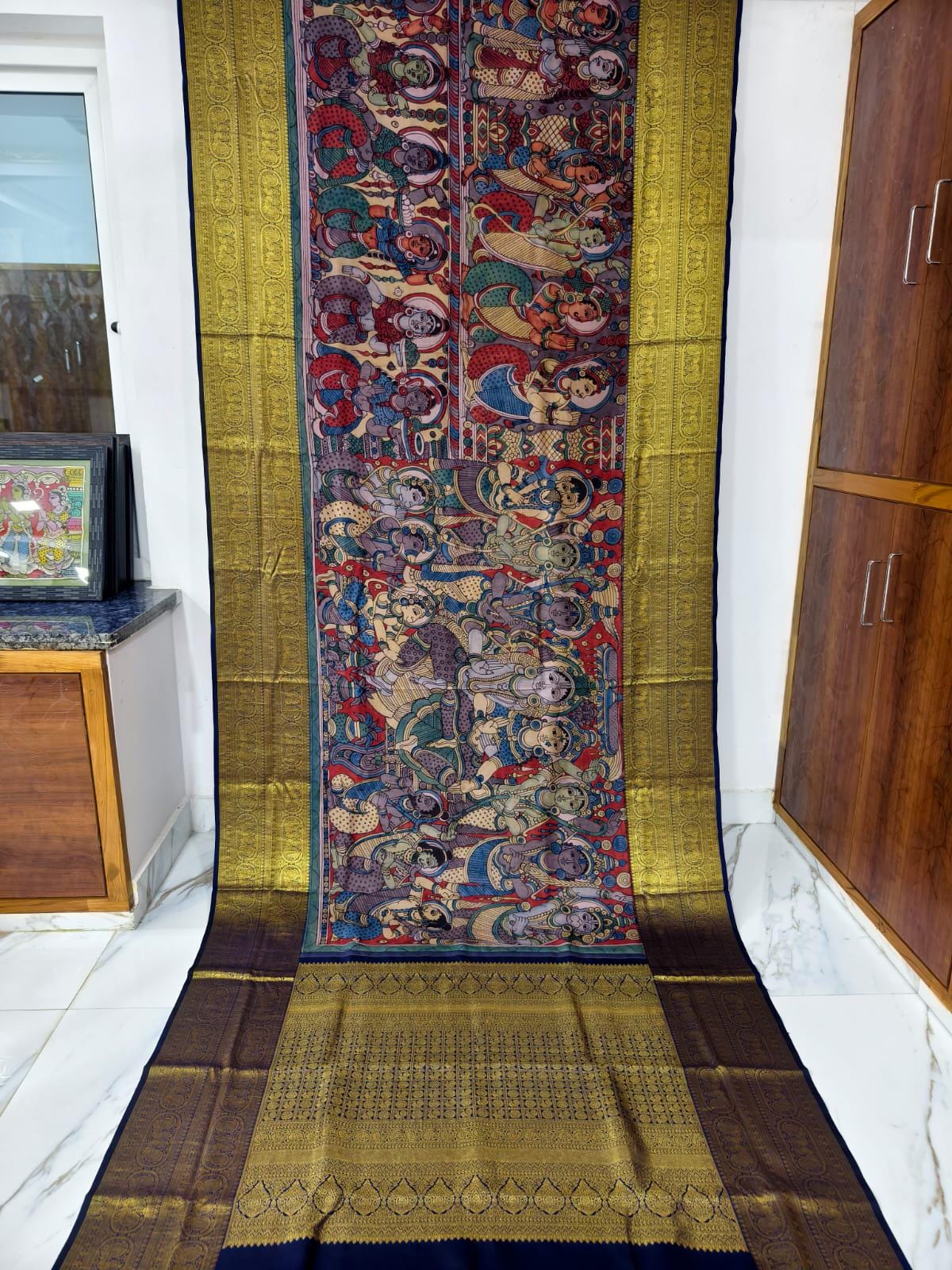 Handloom Pen kalamkari Kancheepuram Silk Saree | Pure Zari Bridal Pattu