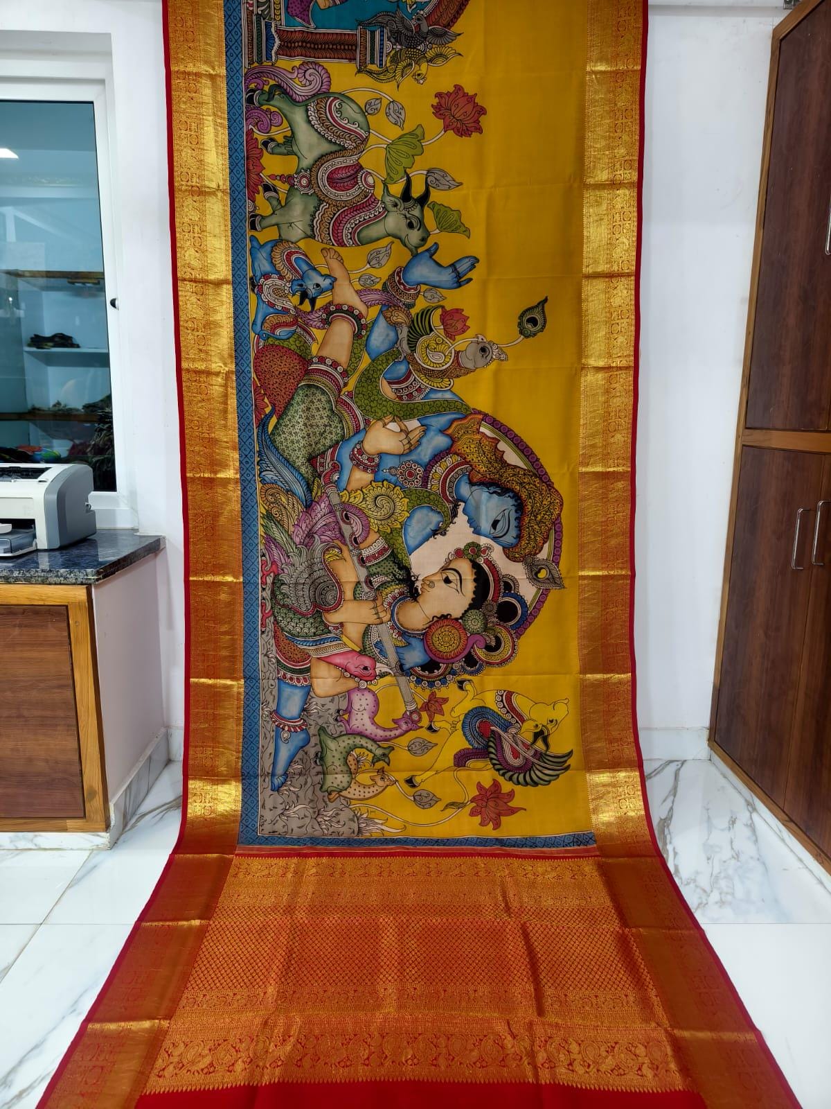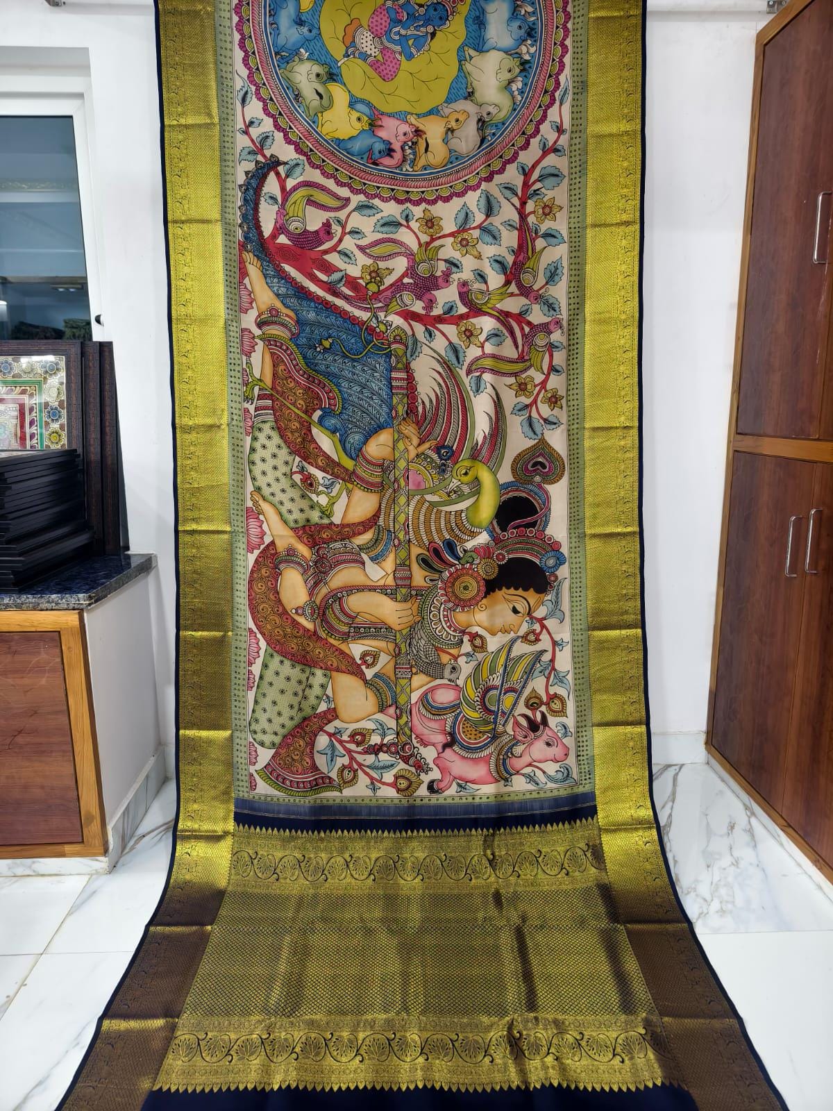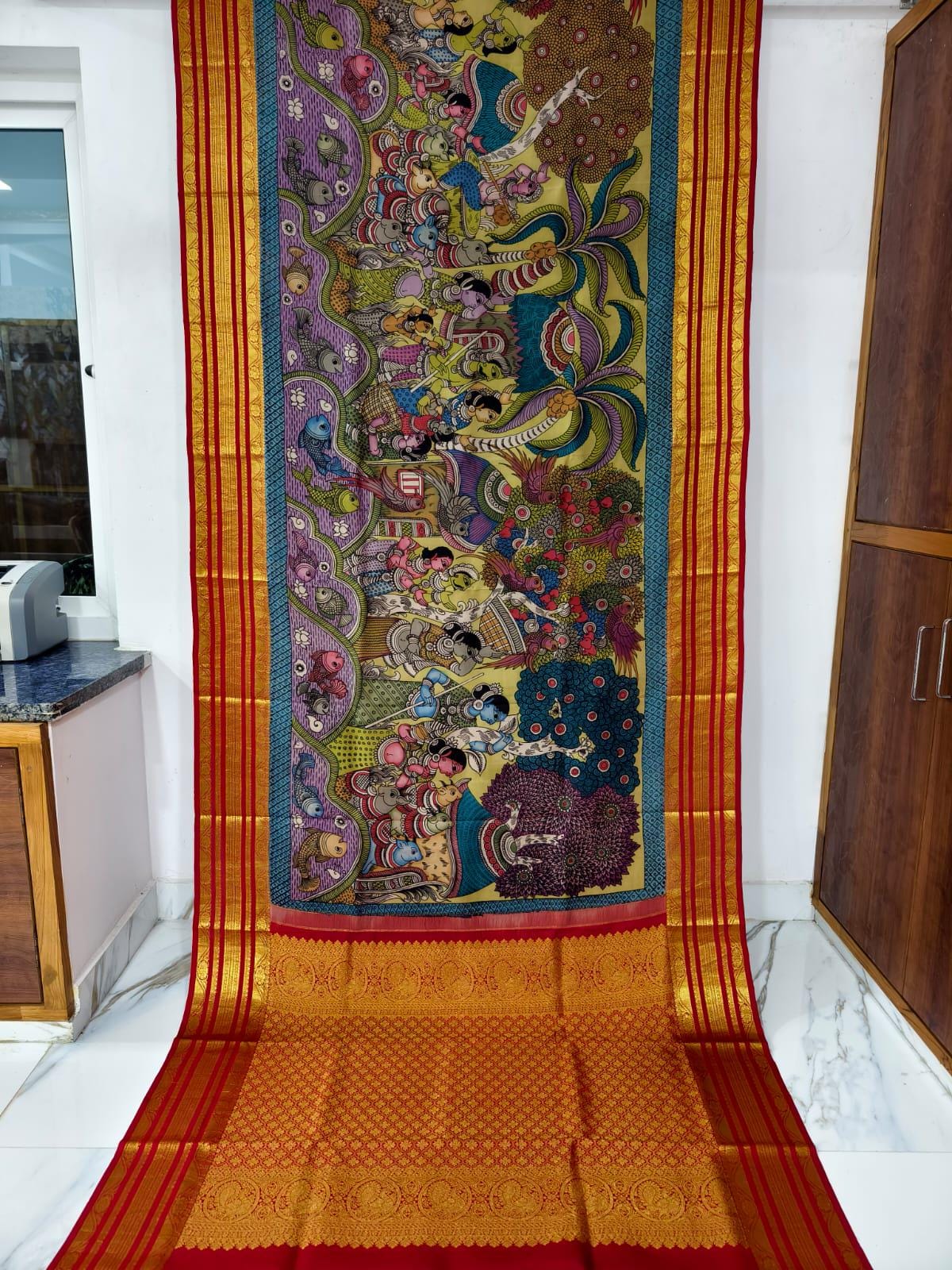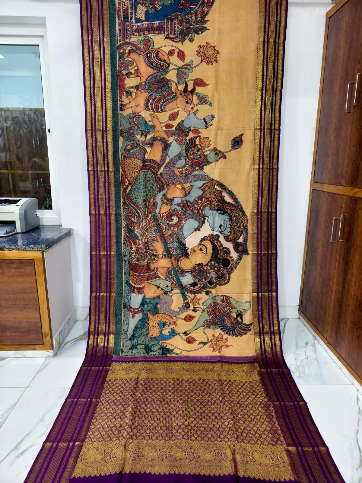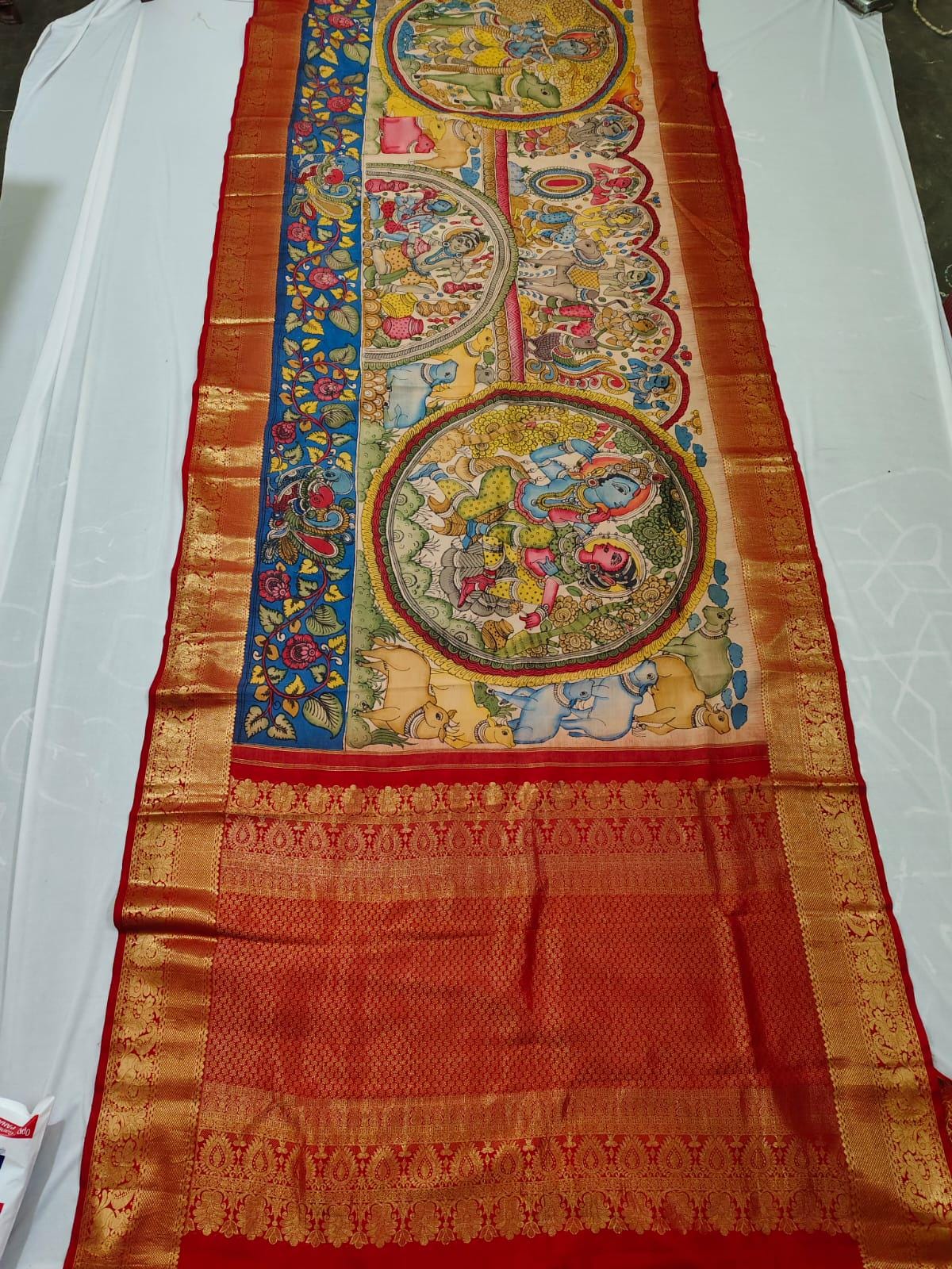 Handloom Pen kalamkari Kancheepuram Silk Saree | Pure Zari Bridal Pattu