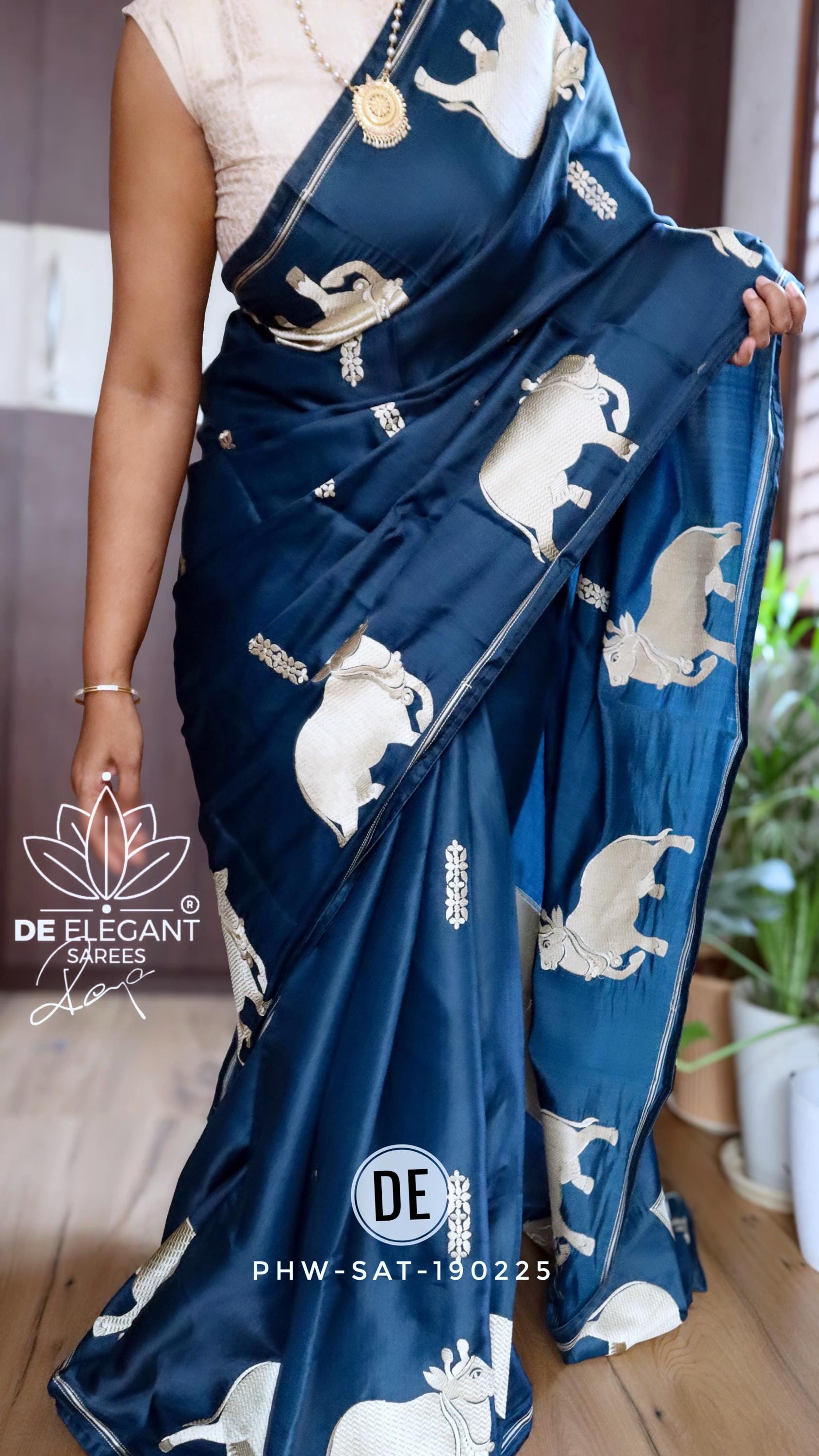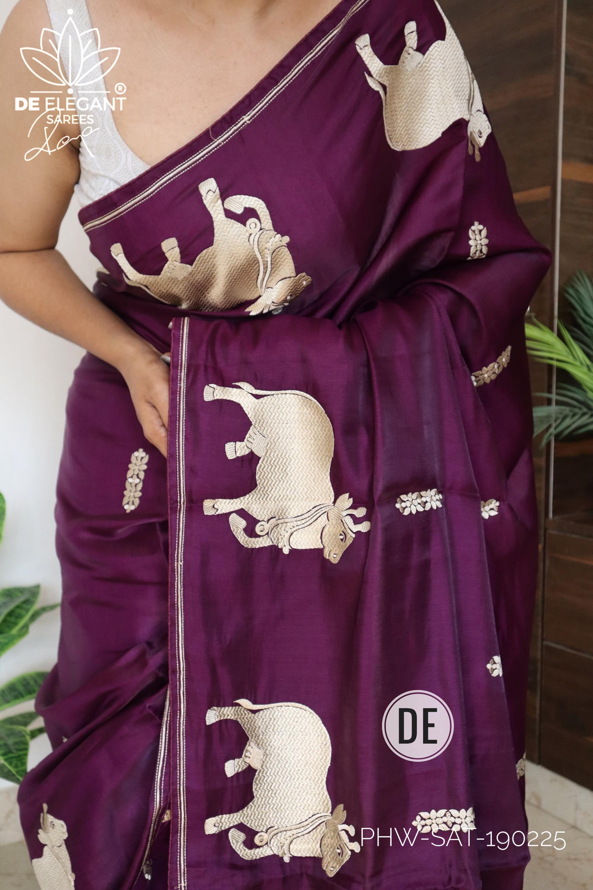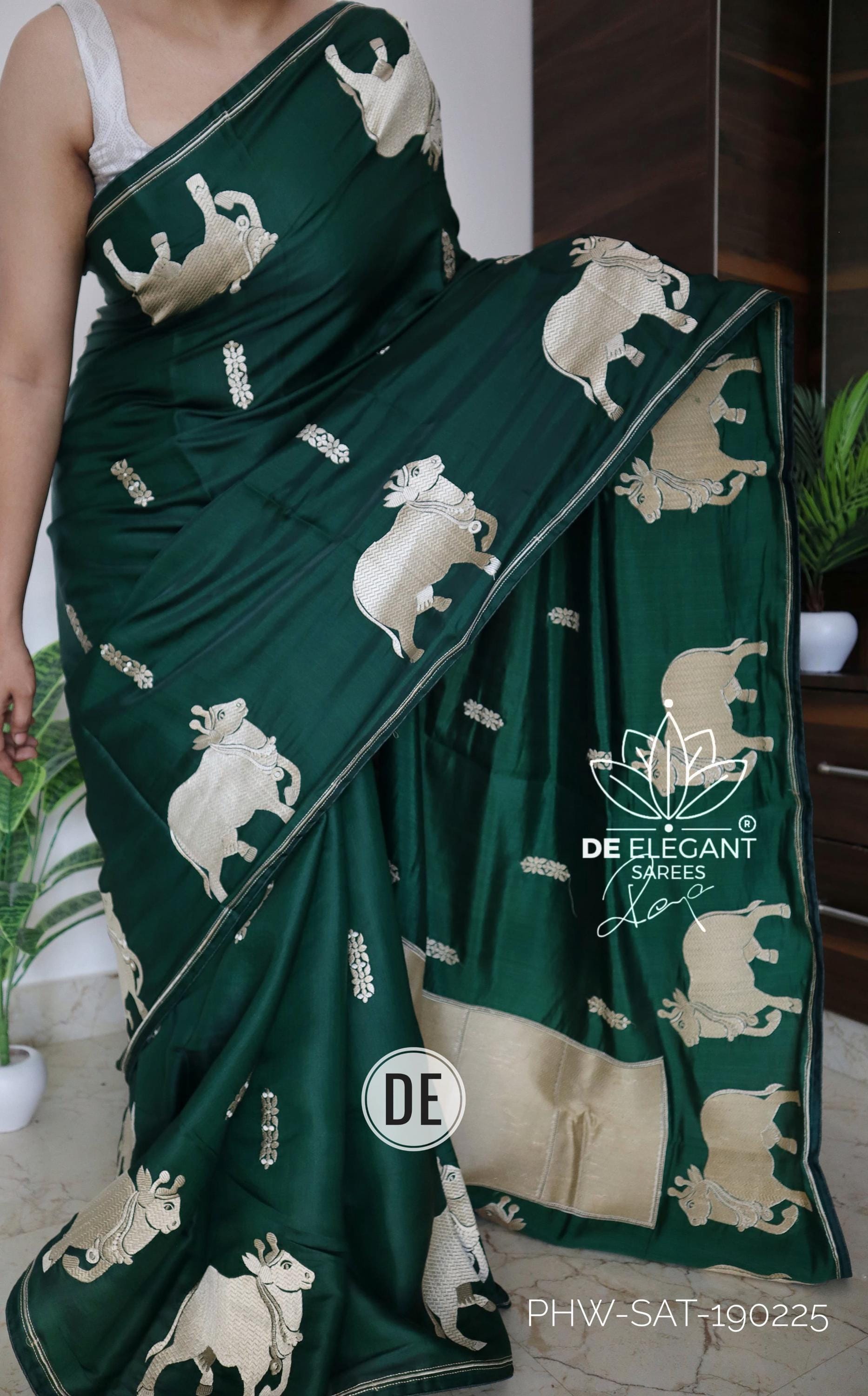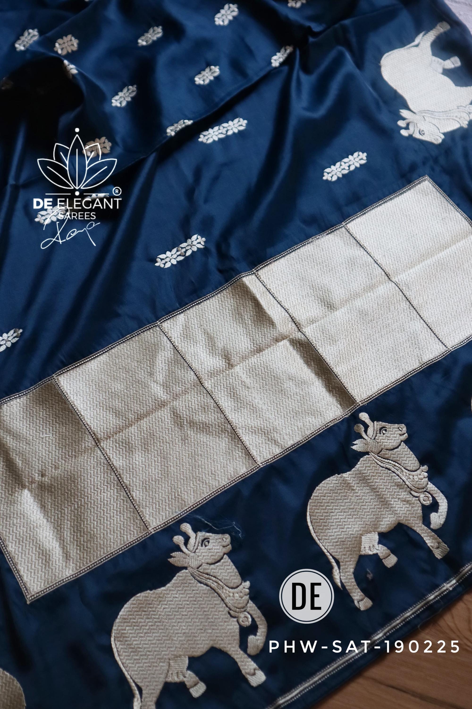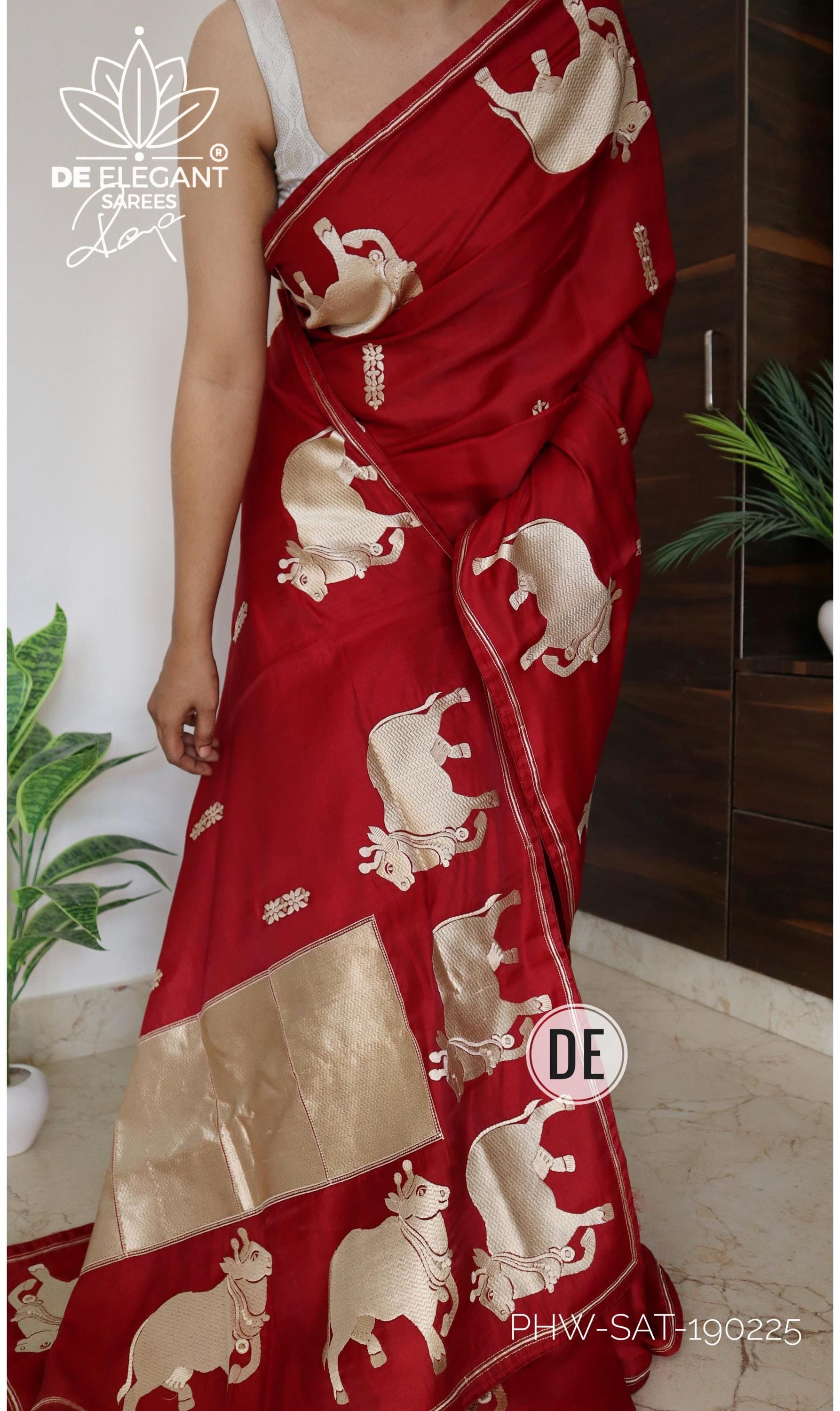 Step into a blend of tradition and glamour with this stunning Munga Satin Saree. Beautifully woven with intricate resham motifs inspired by classic Pichwai art, this saree is a true labor of love for traditional craftsmanship. Available in classic shades, its rich, glamorous drape makes it an unforgettable choice for weddings, cultural festivals, and evening celebrations.