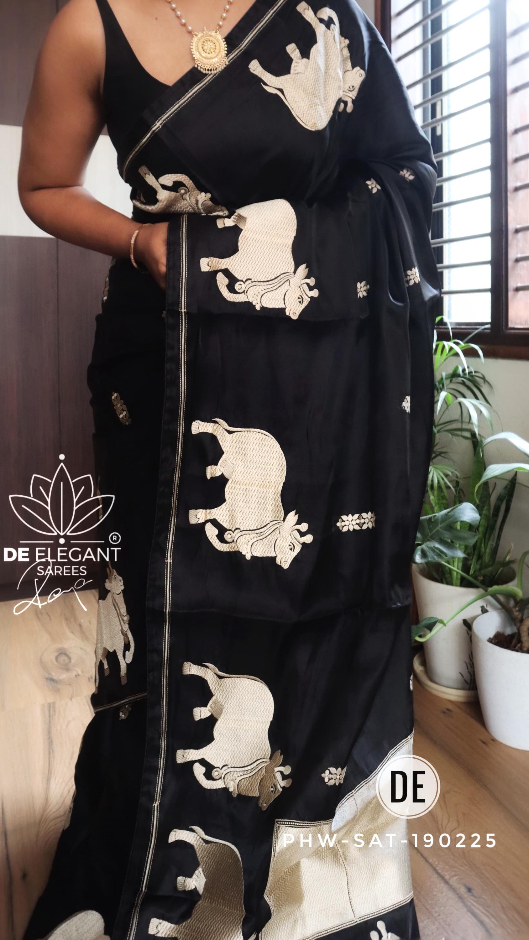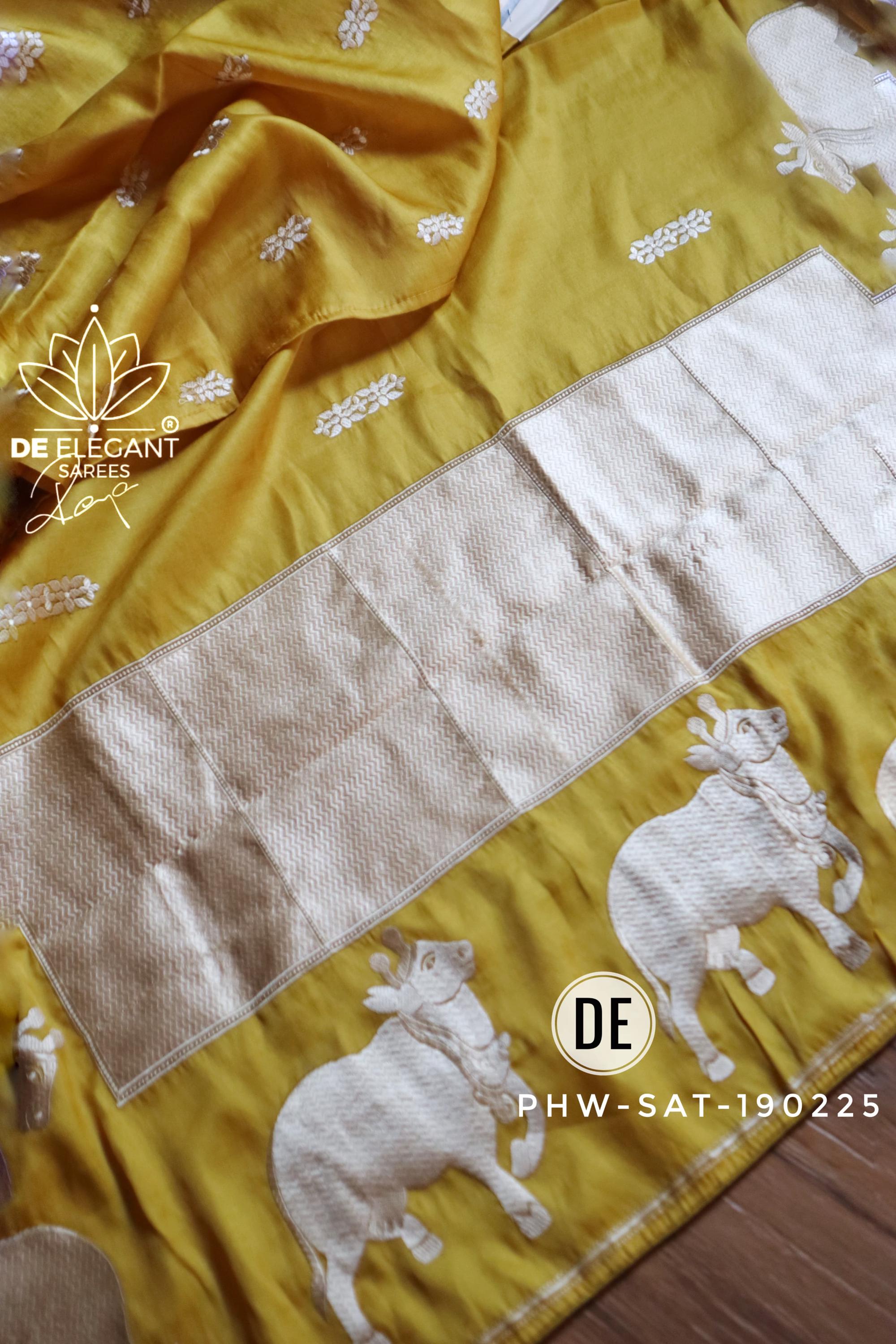 * Design: Intricate, woven resham (silk thread) motifs inspired by traditional Pichwai art
