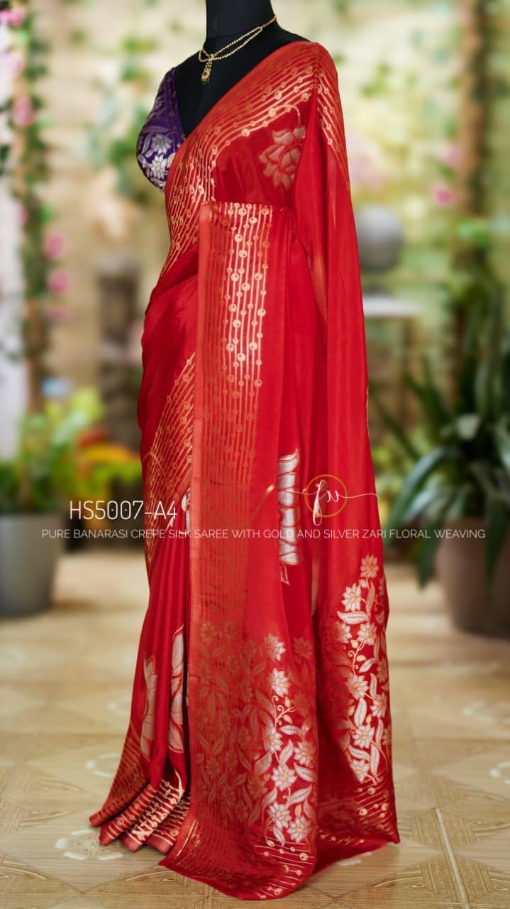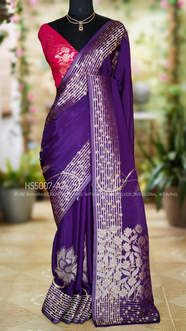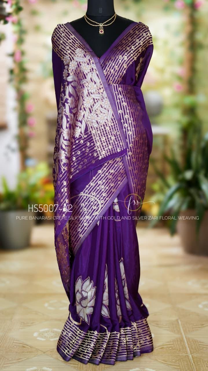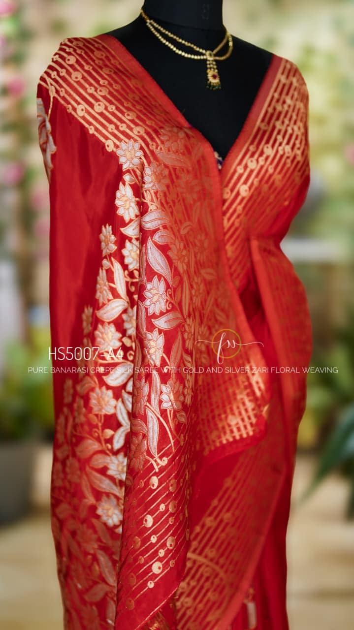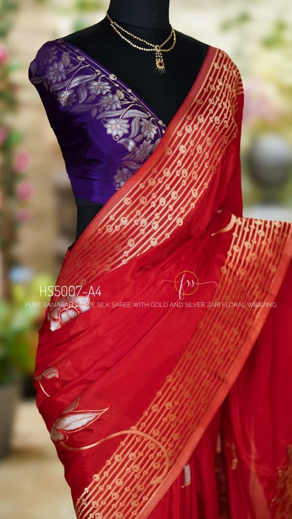 * Fabric: Pure Banarasi Crepe Silk for a beautifully smooth, body-flattering drape