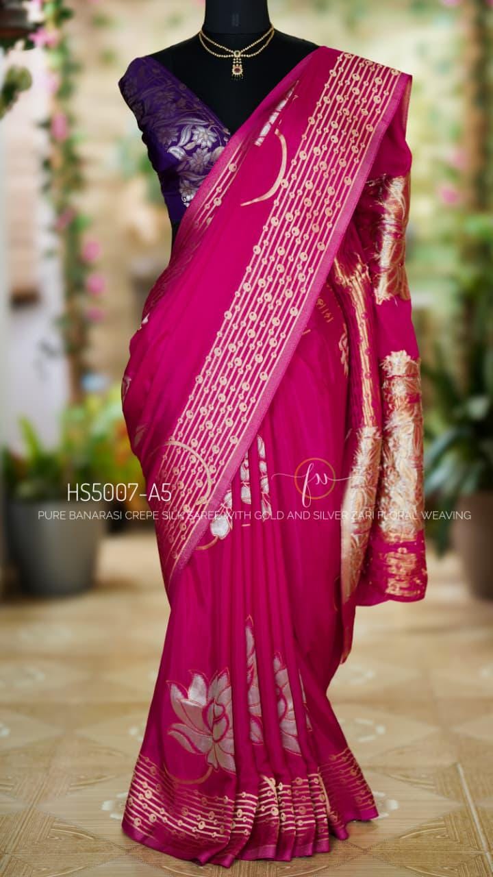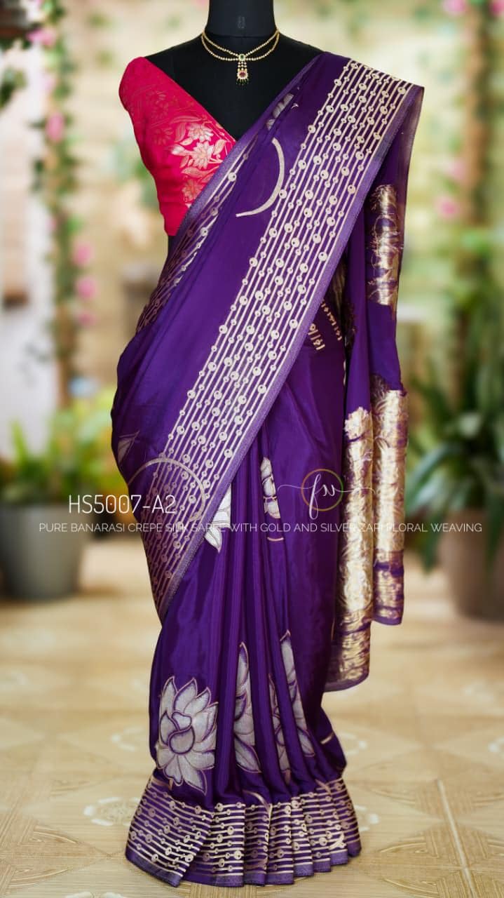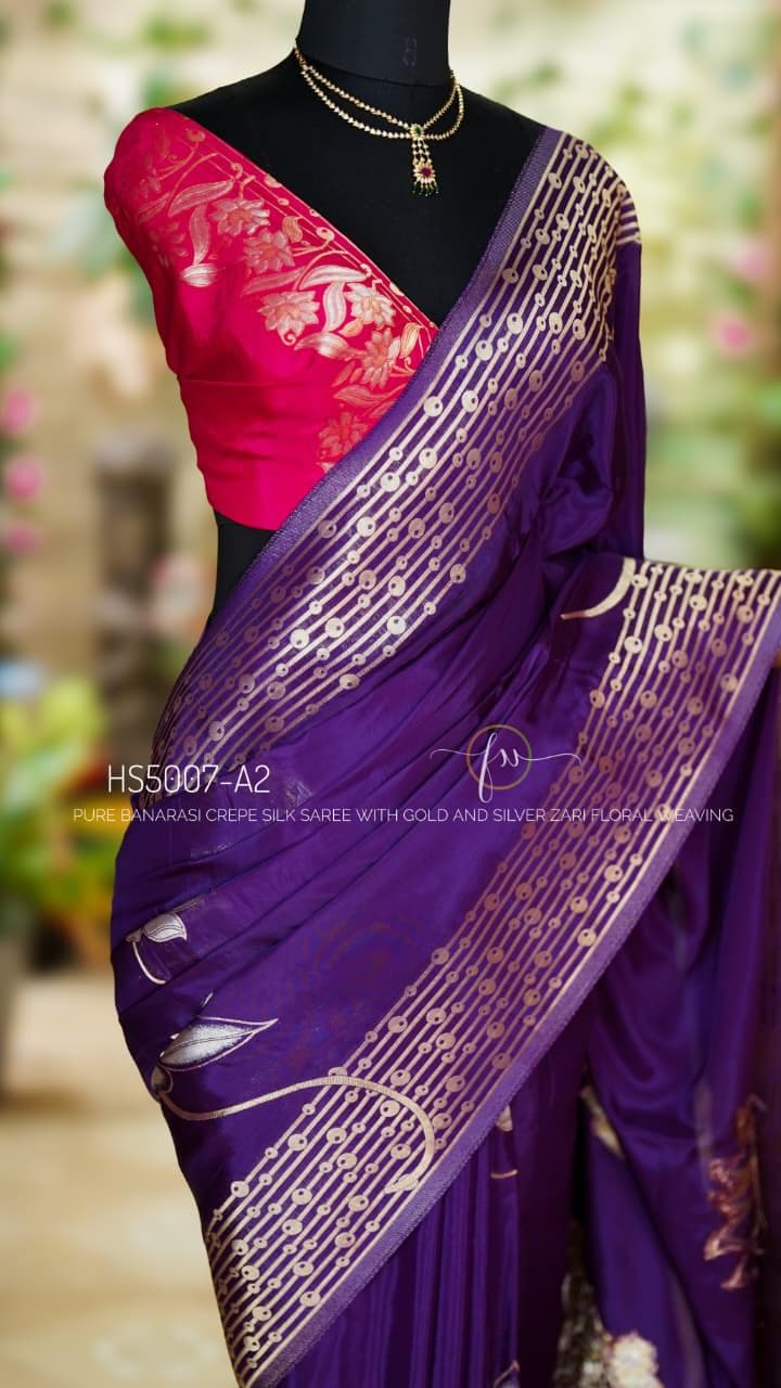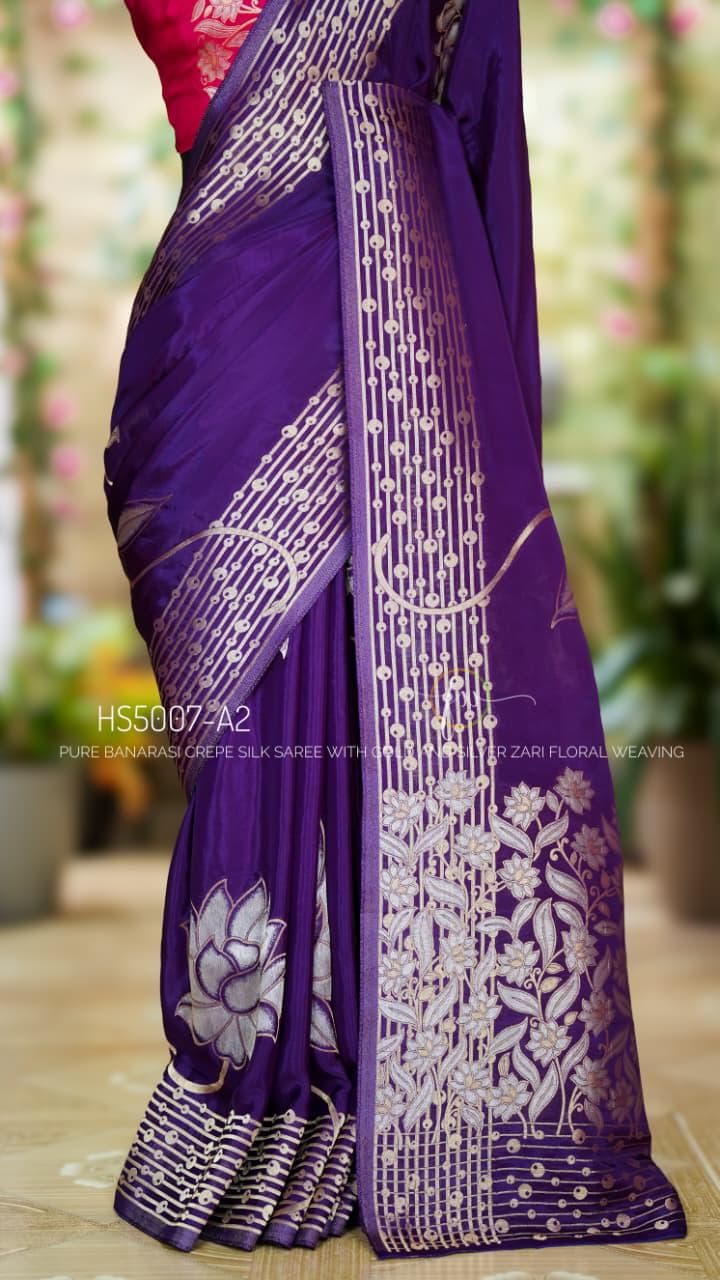 * Fabric: Pure Banarasi Crepe Silk for a beautifully smooth, body-flattering drape