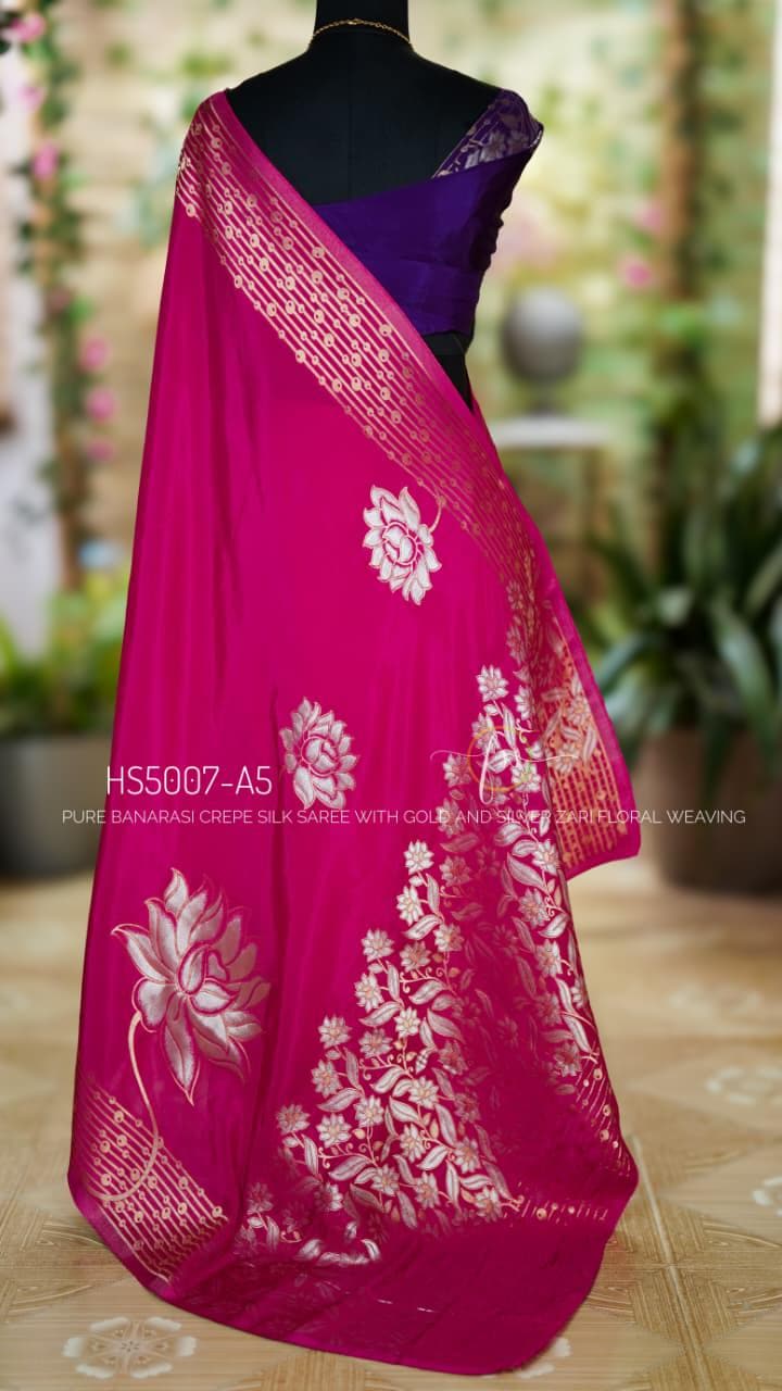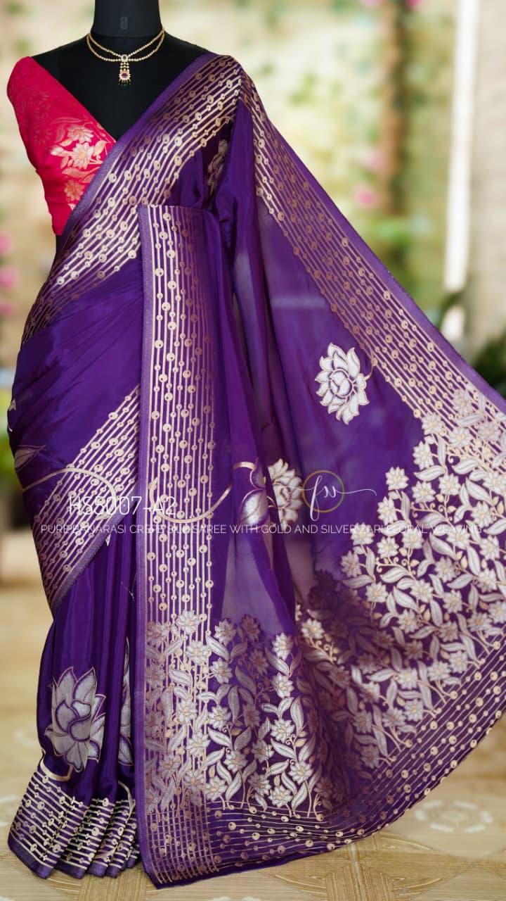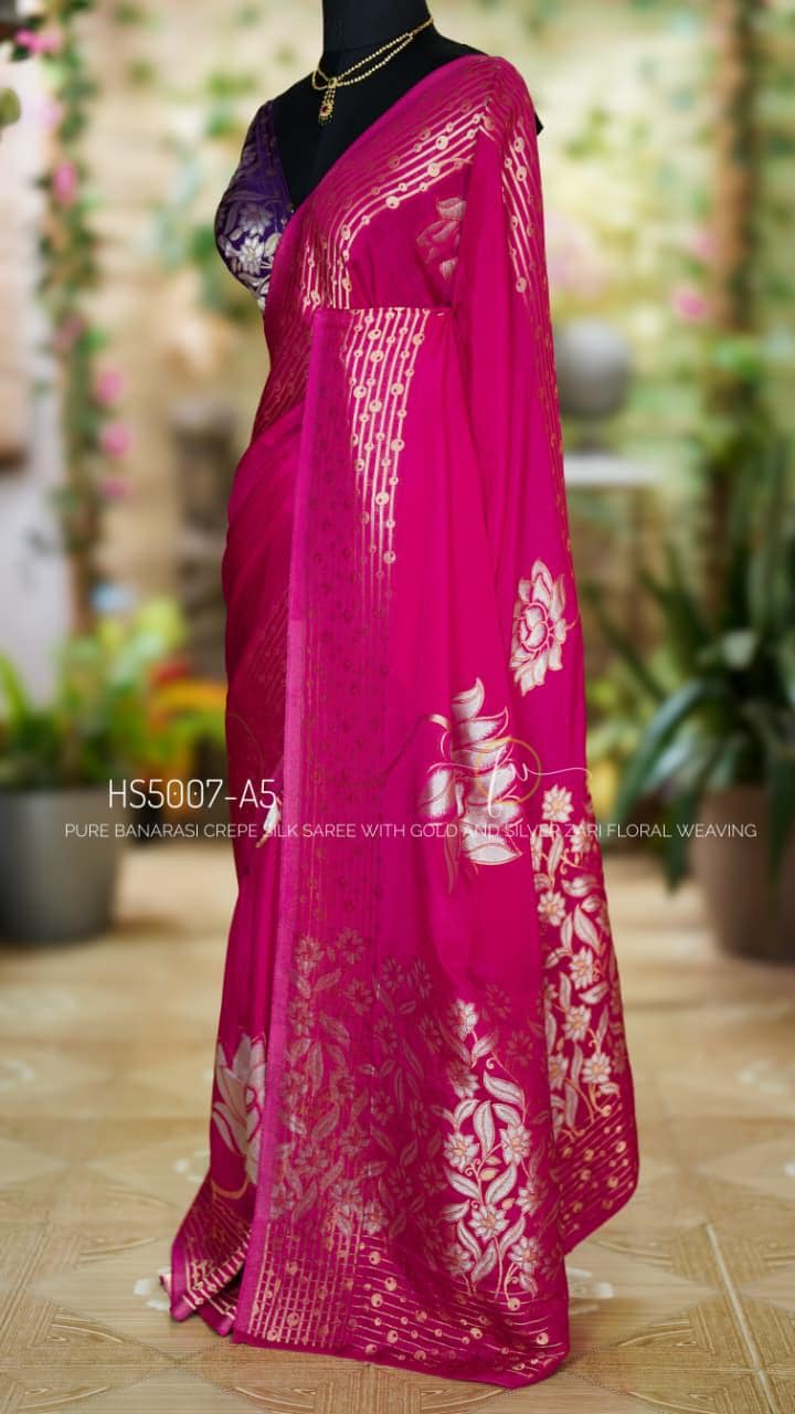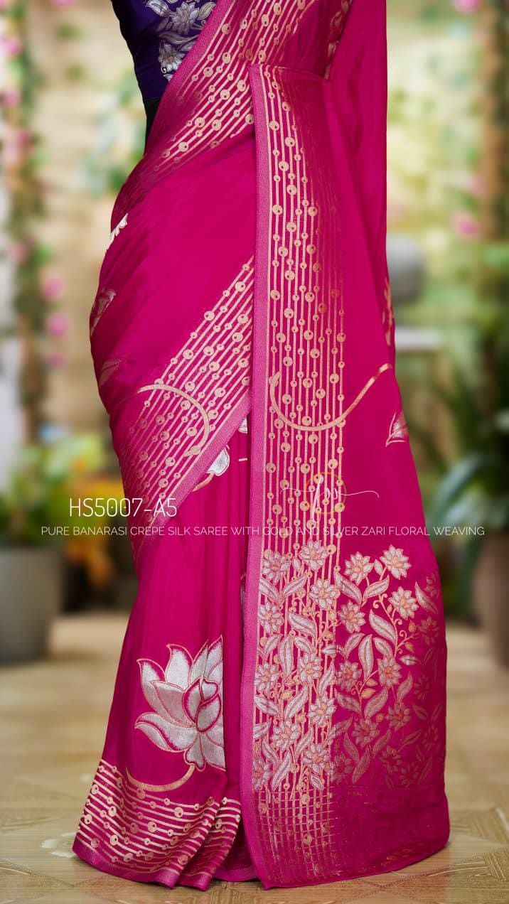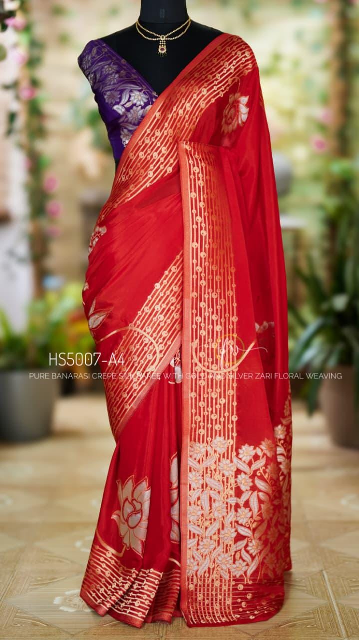* Fabric: Pure Banarasi Crepe Silk for a beautifully smooth, body-flattering drape