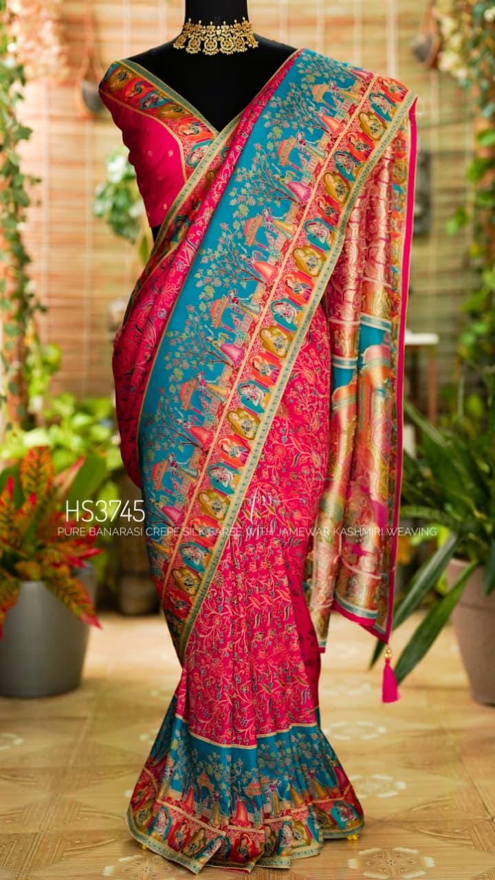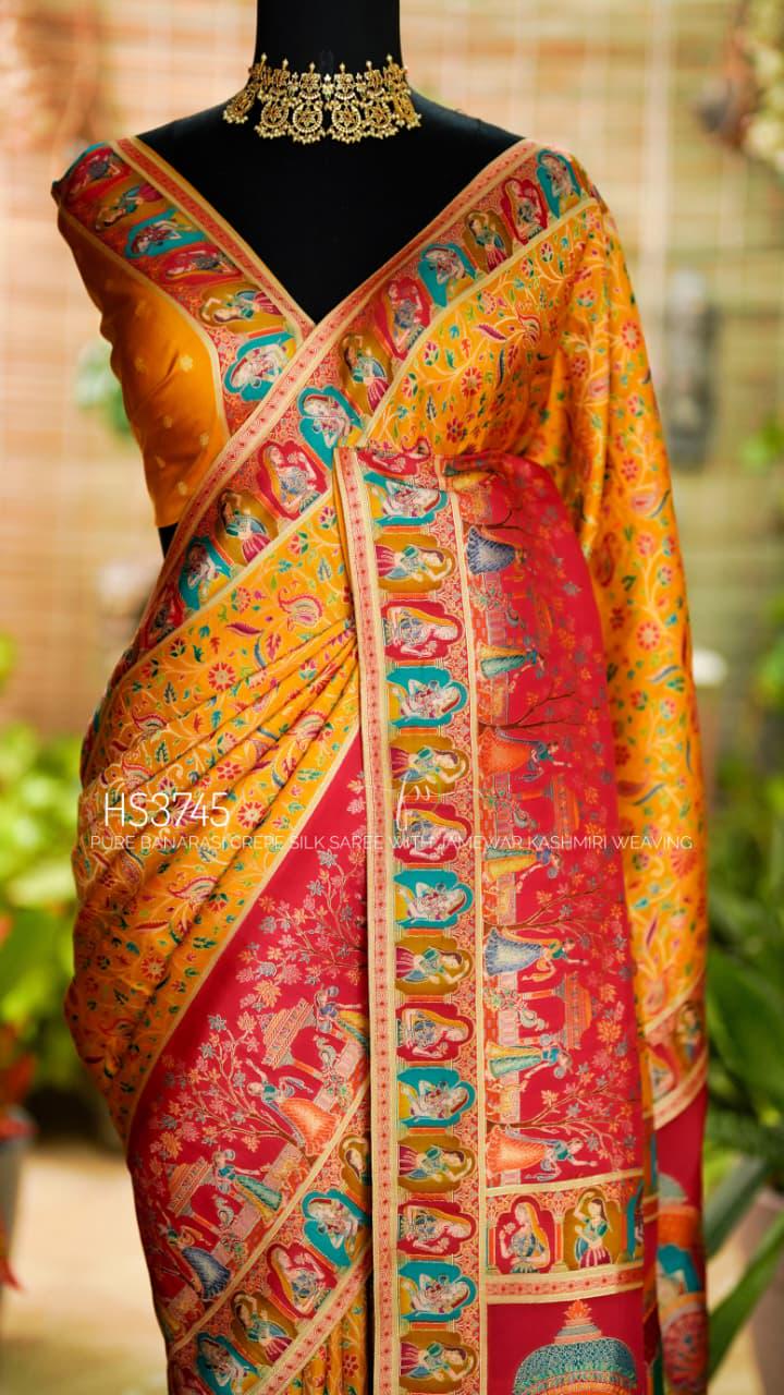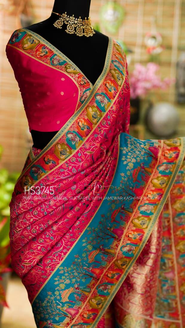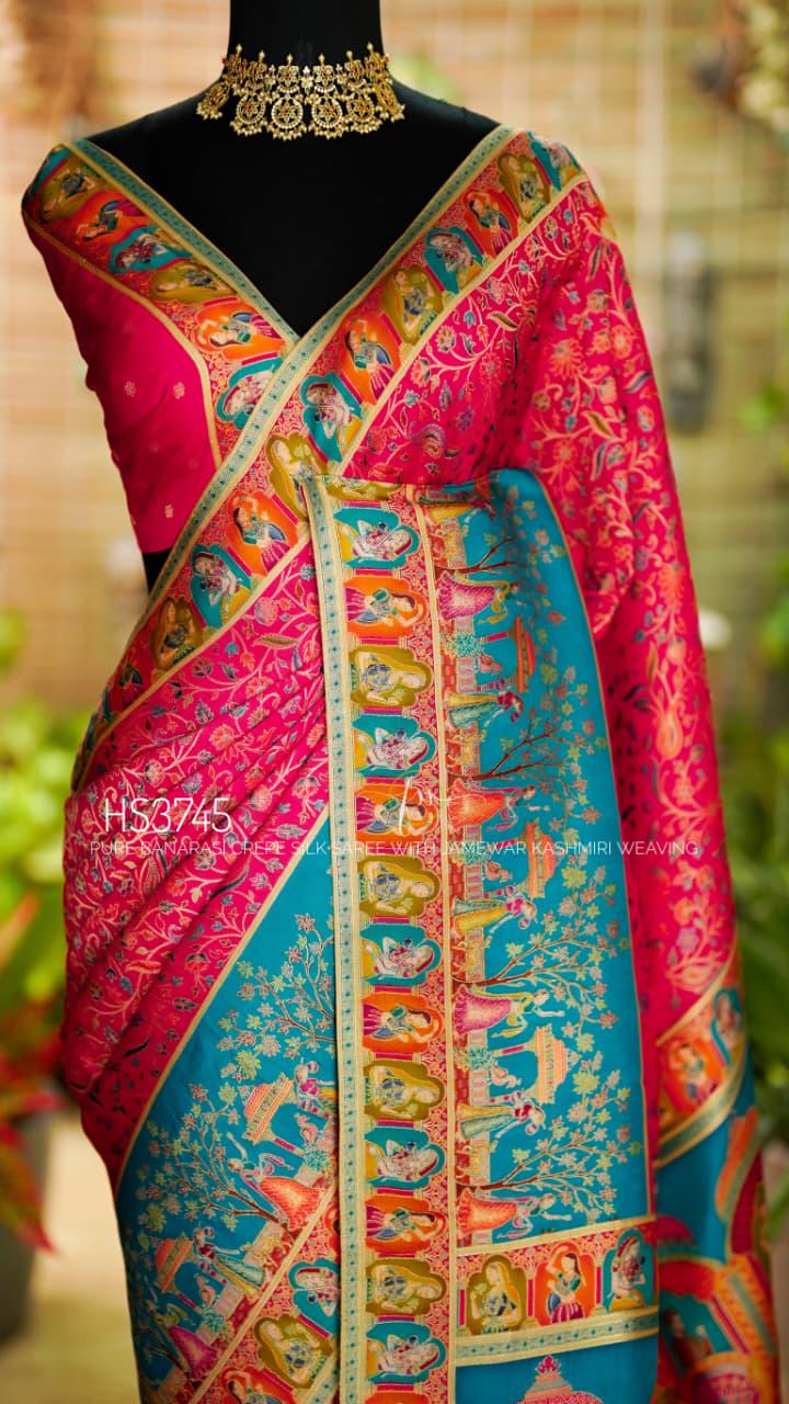 Authentic Banarasi silk with intricate Kashmiri weaving