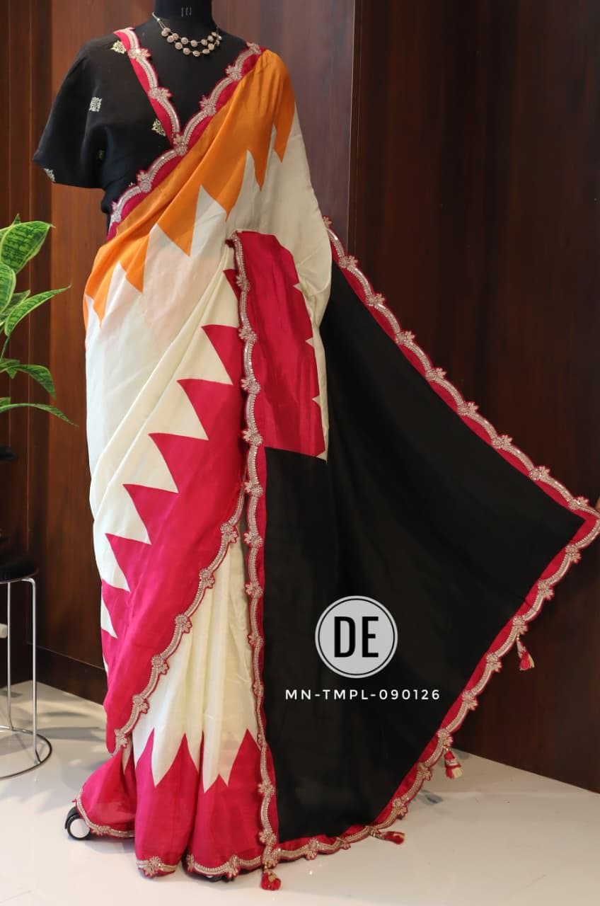 * Fabric: Pure Banarasi Crepe Silk for a beautifully smooth, body-flattering drape