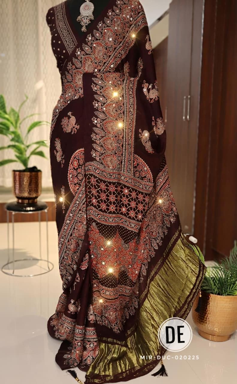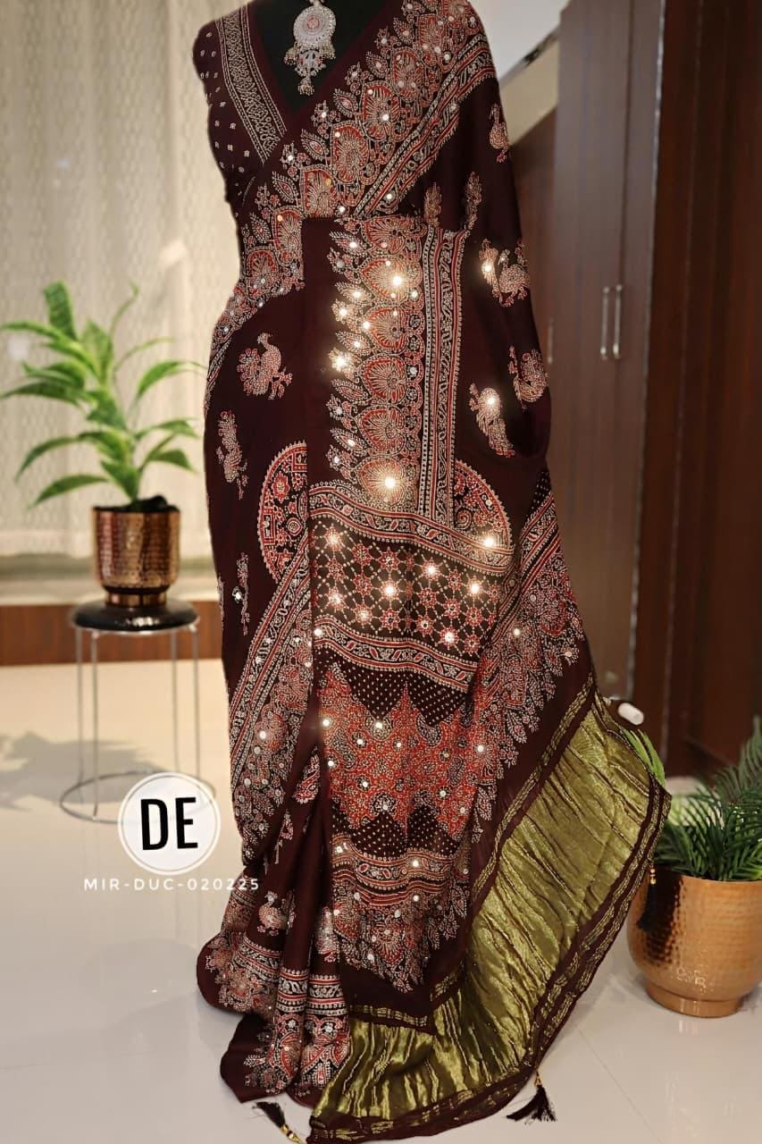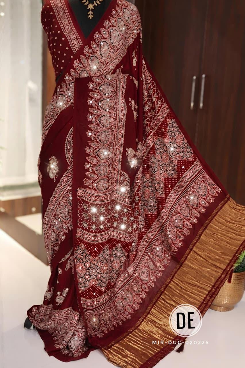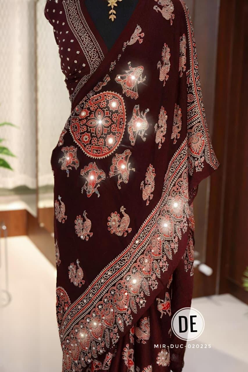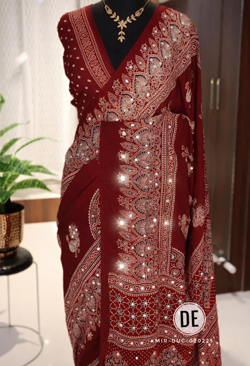 * Fabric: Pure Banarasi Crepe Silk for a beautifully smooth, body-flattering drape