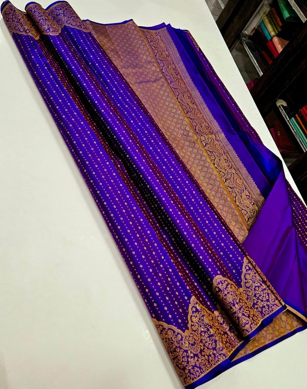 Care Instructions: Dry clean only to maintain the sheen of the silk and the intricacy of the zari work.