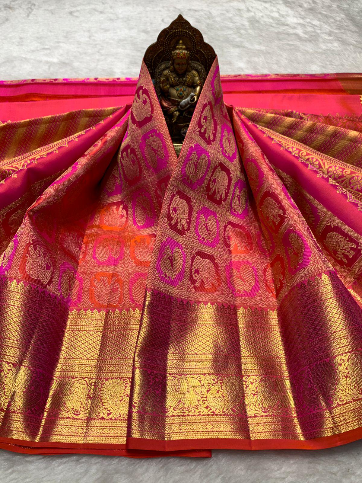 Care Instructions: Dry clean only to maintain the sheen of the silk and the intricacy of the zari work.