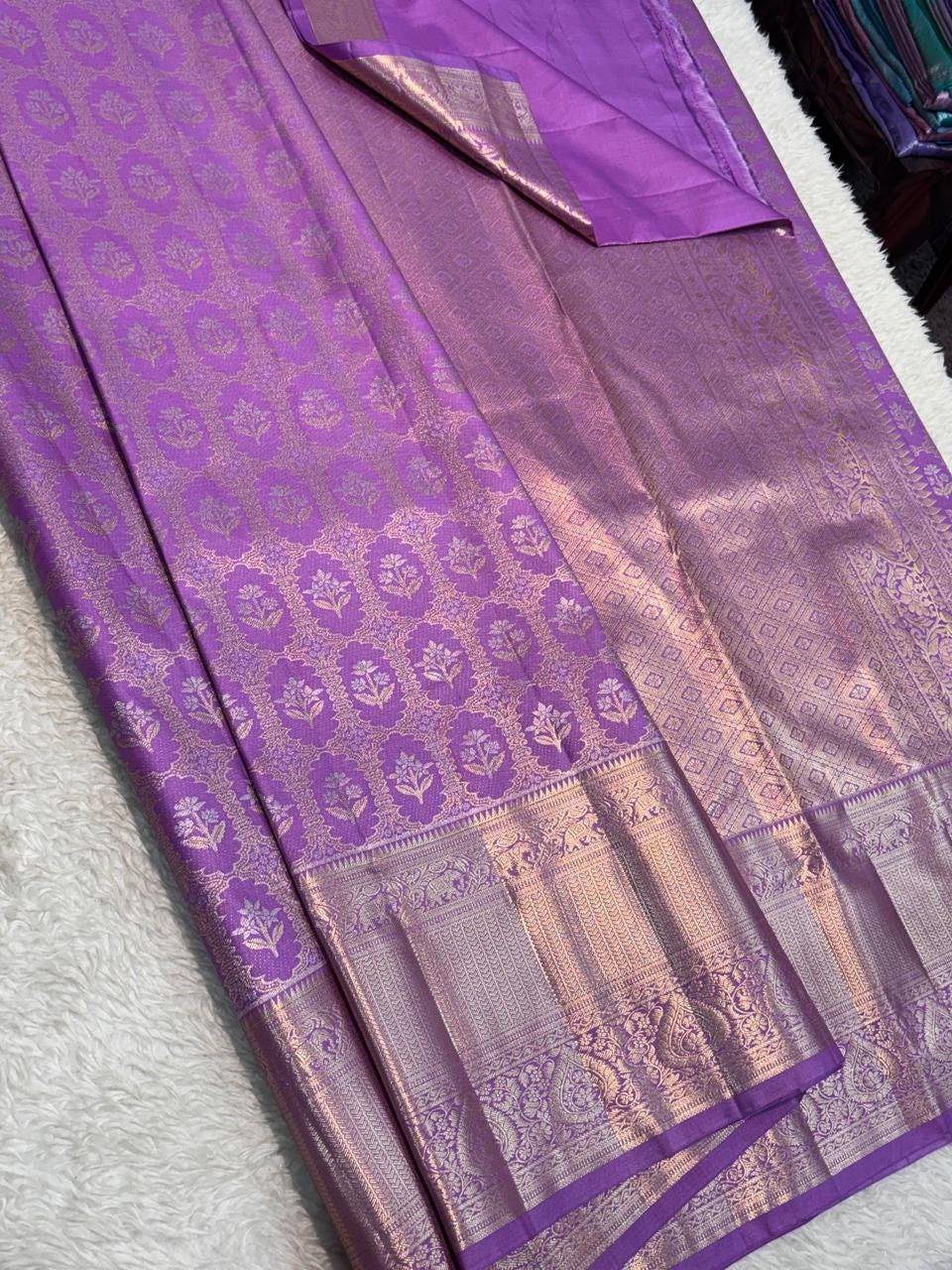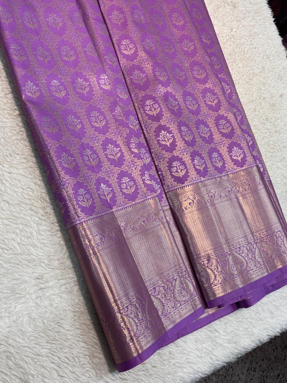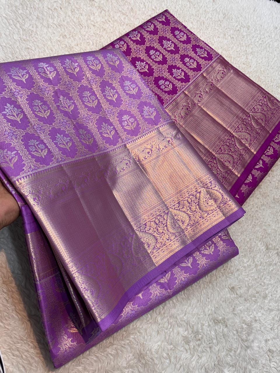 Pastel Tissue Silk Saree with Silver Zari Floral Brocade & Metallic Border