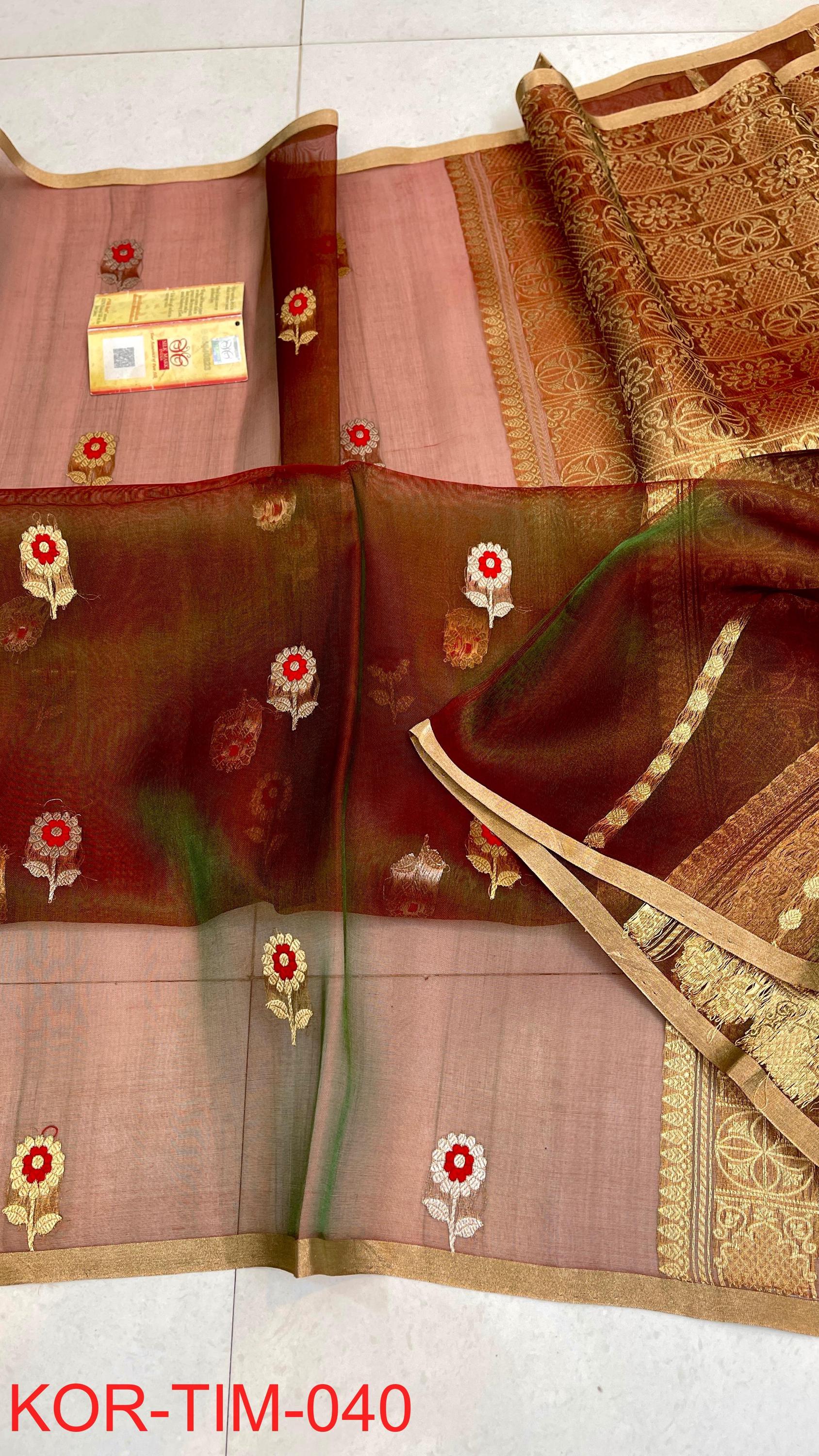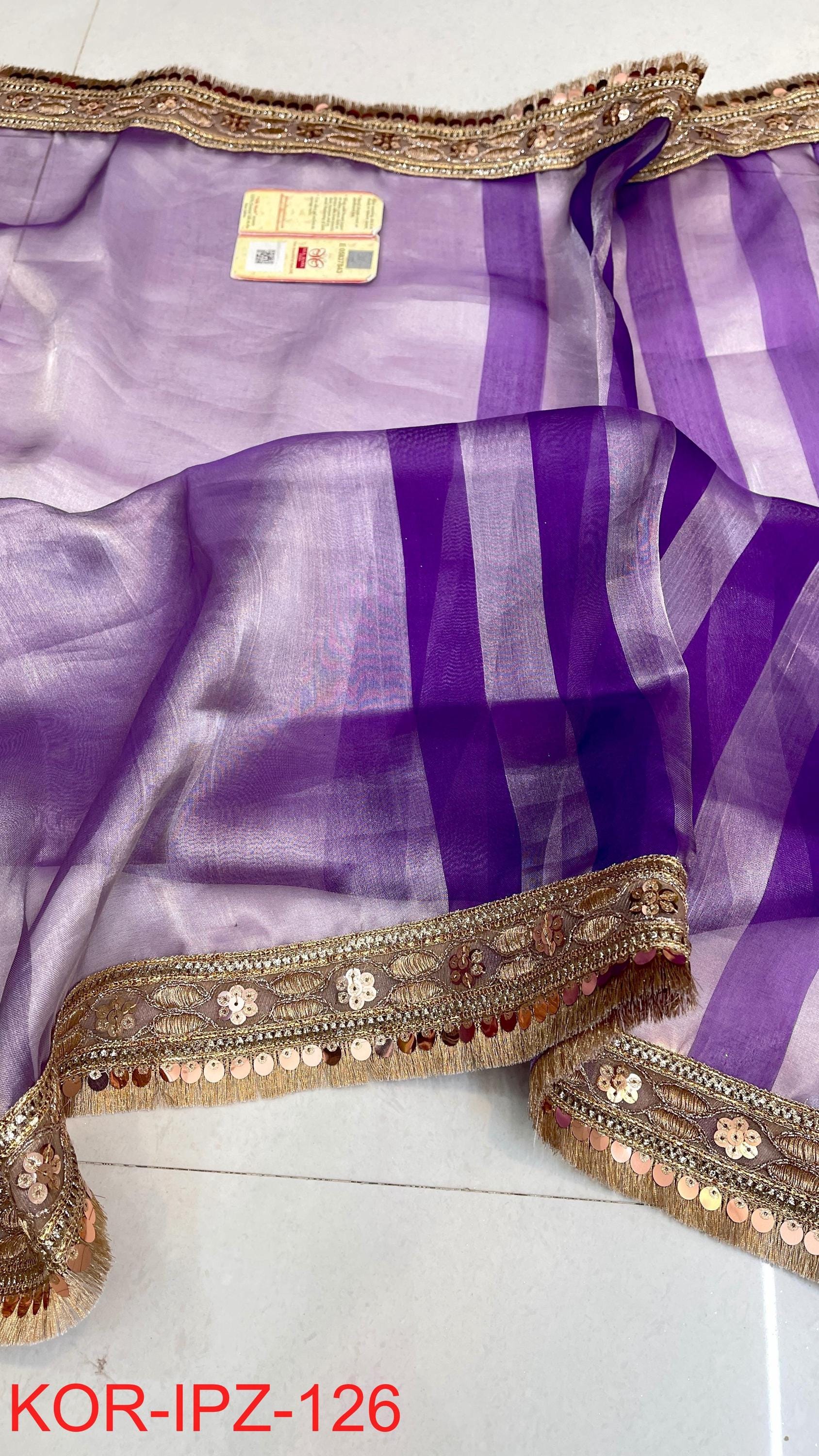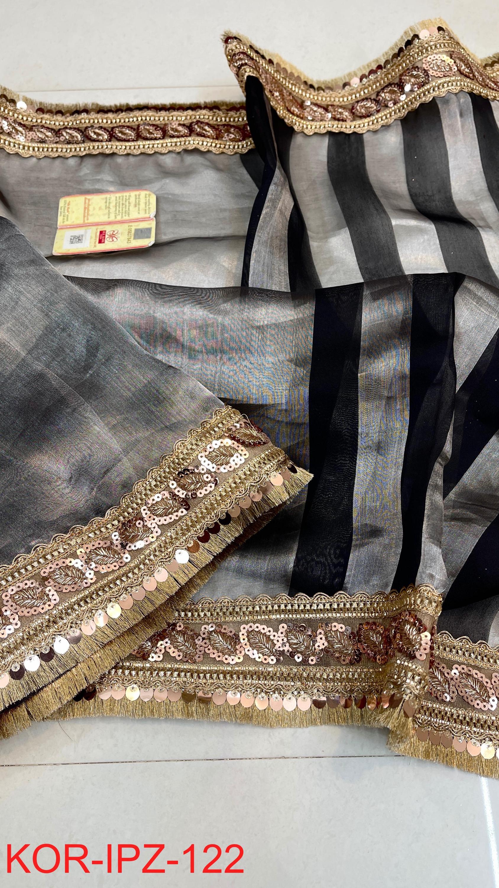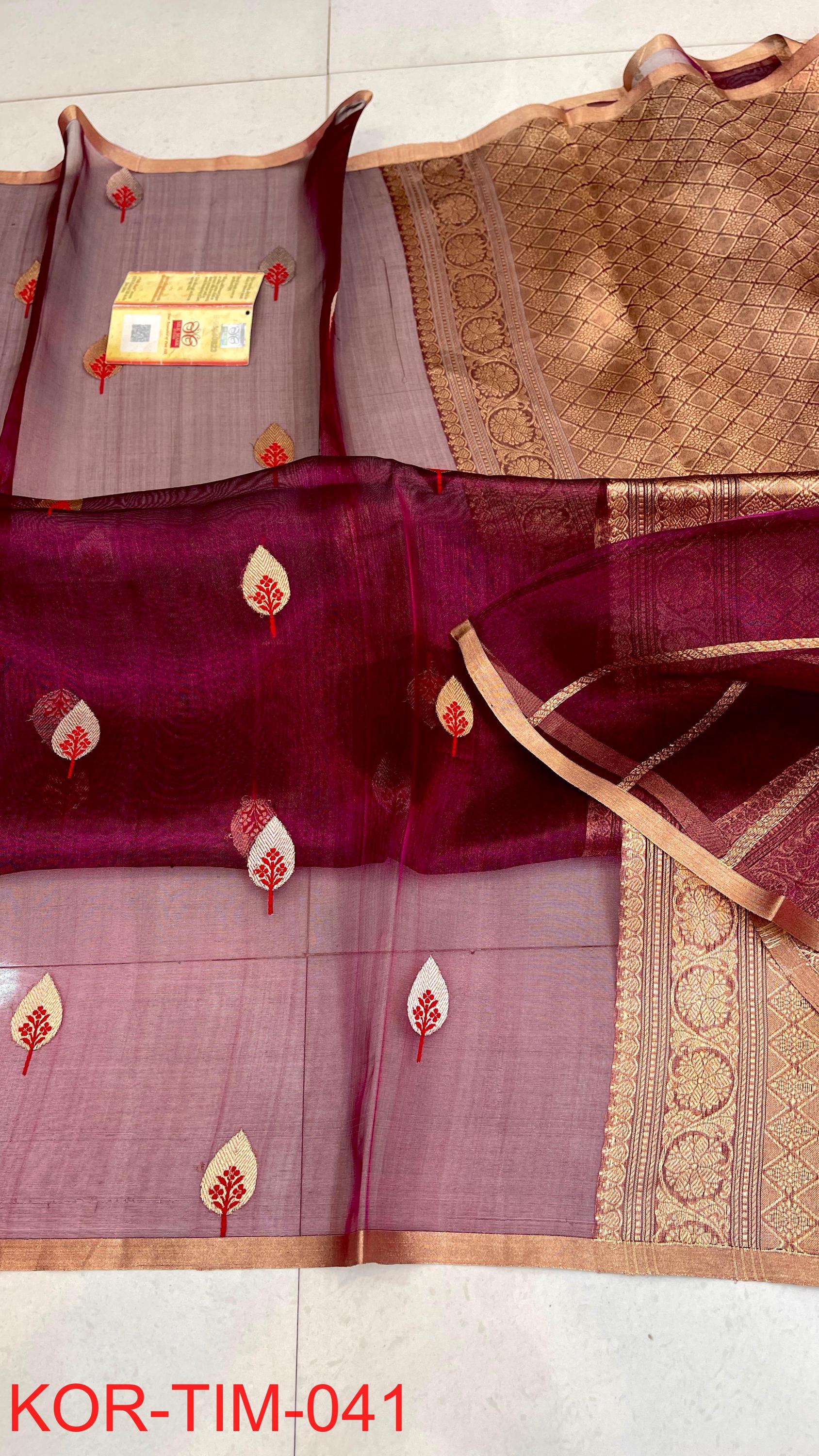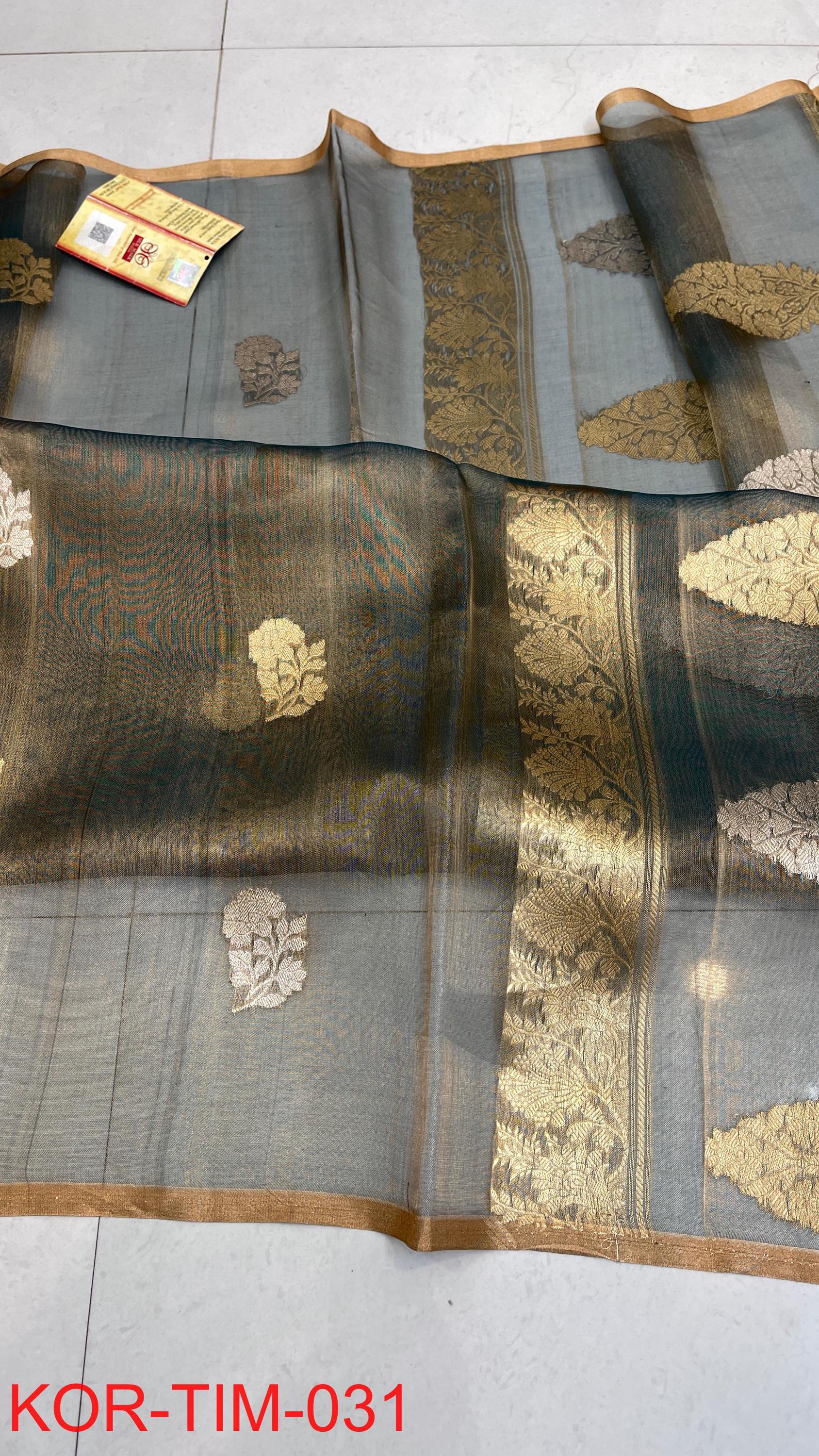 * Fabric: 100% Pure Kora Organza/Tissue Silk (Silk Mark Certified) offering a sheer, crisp, and luminous drape