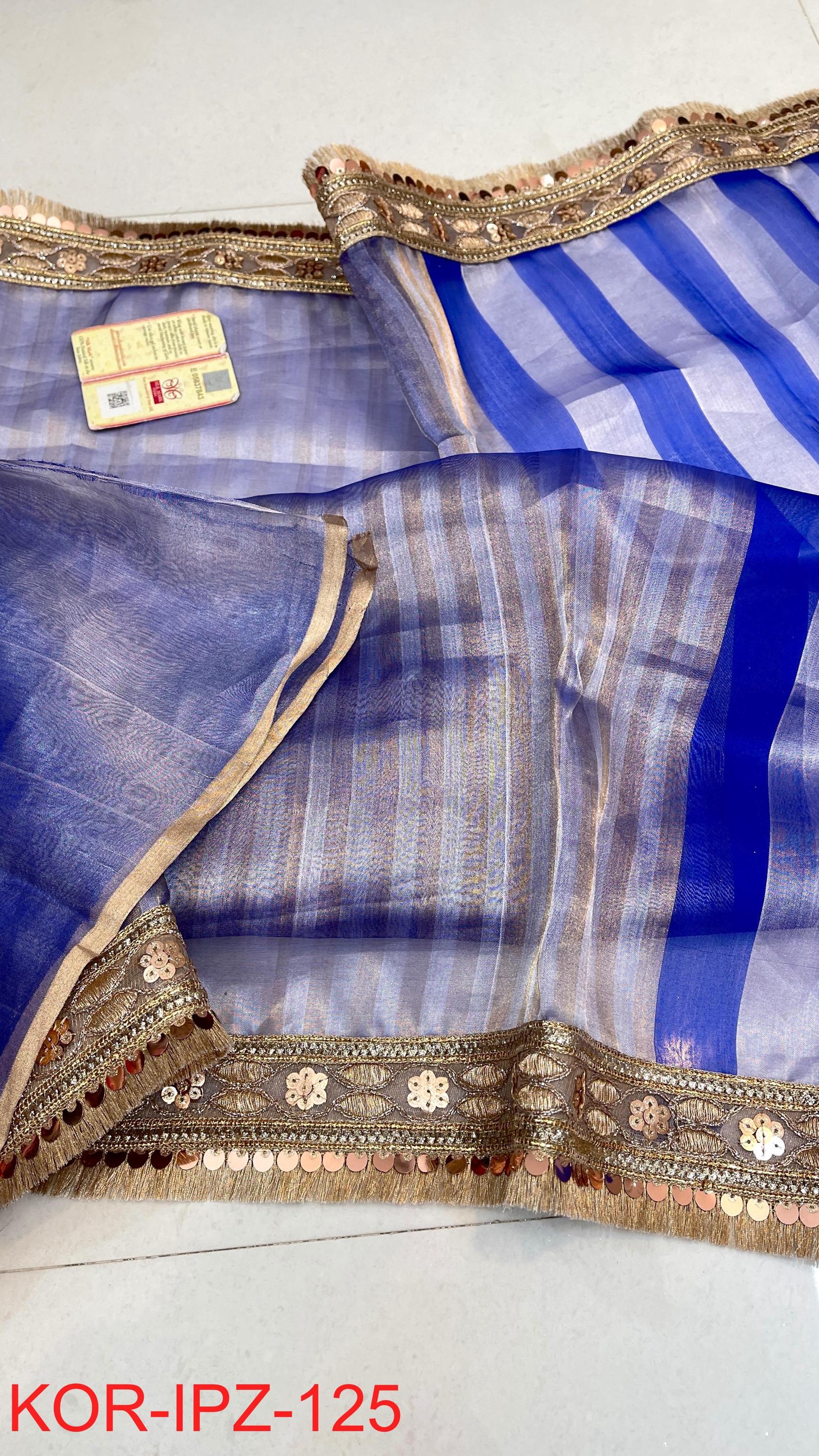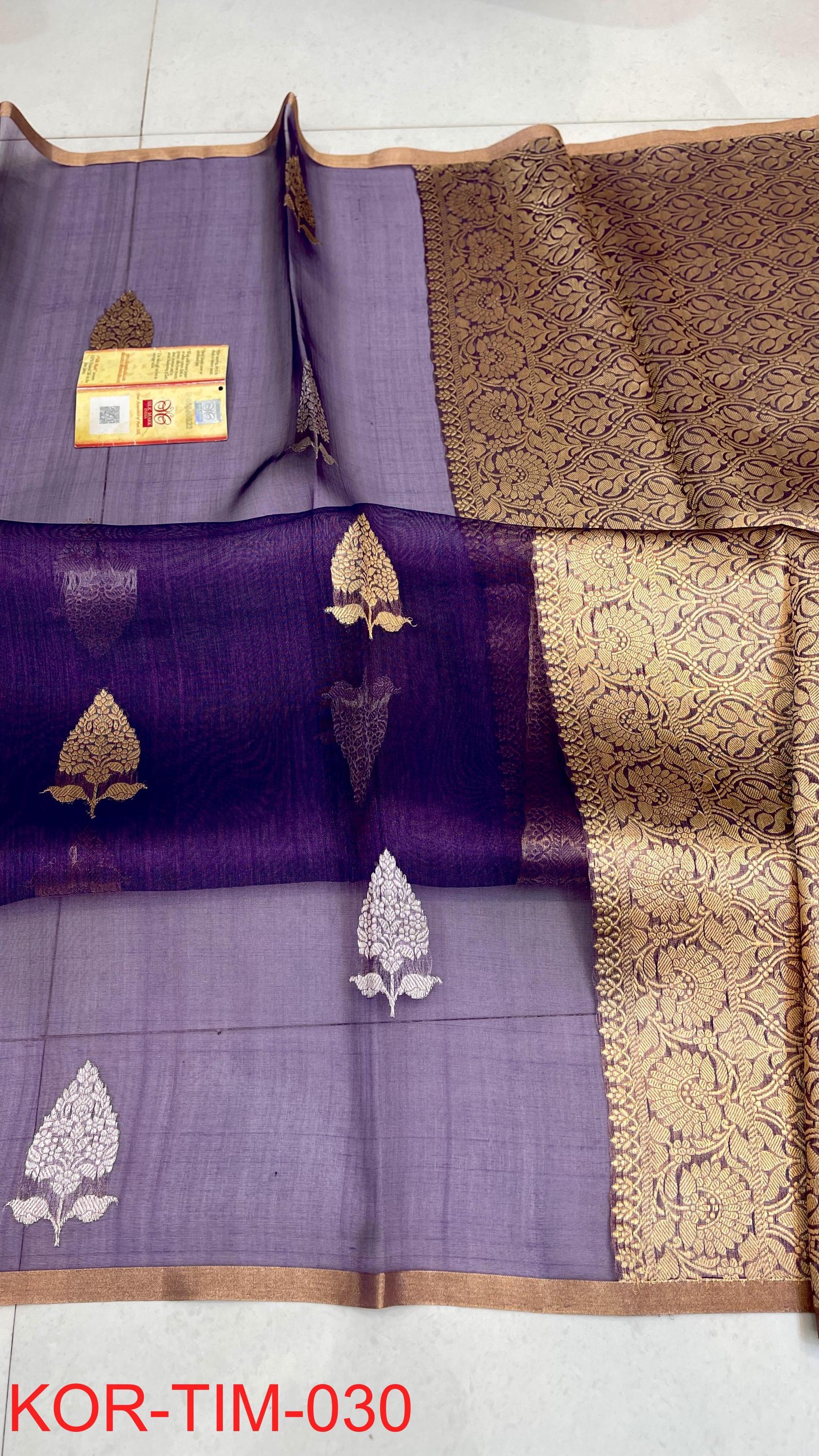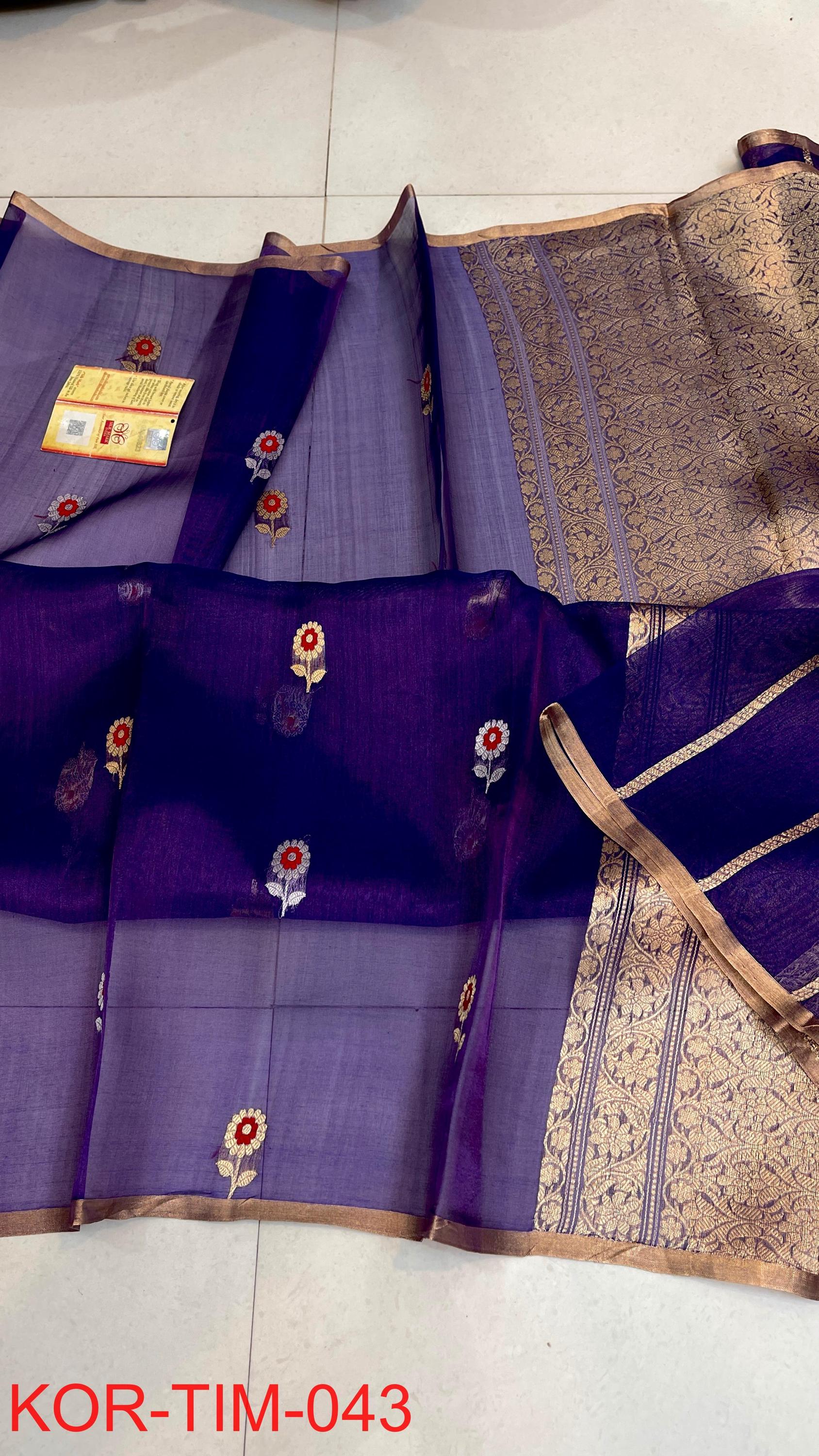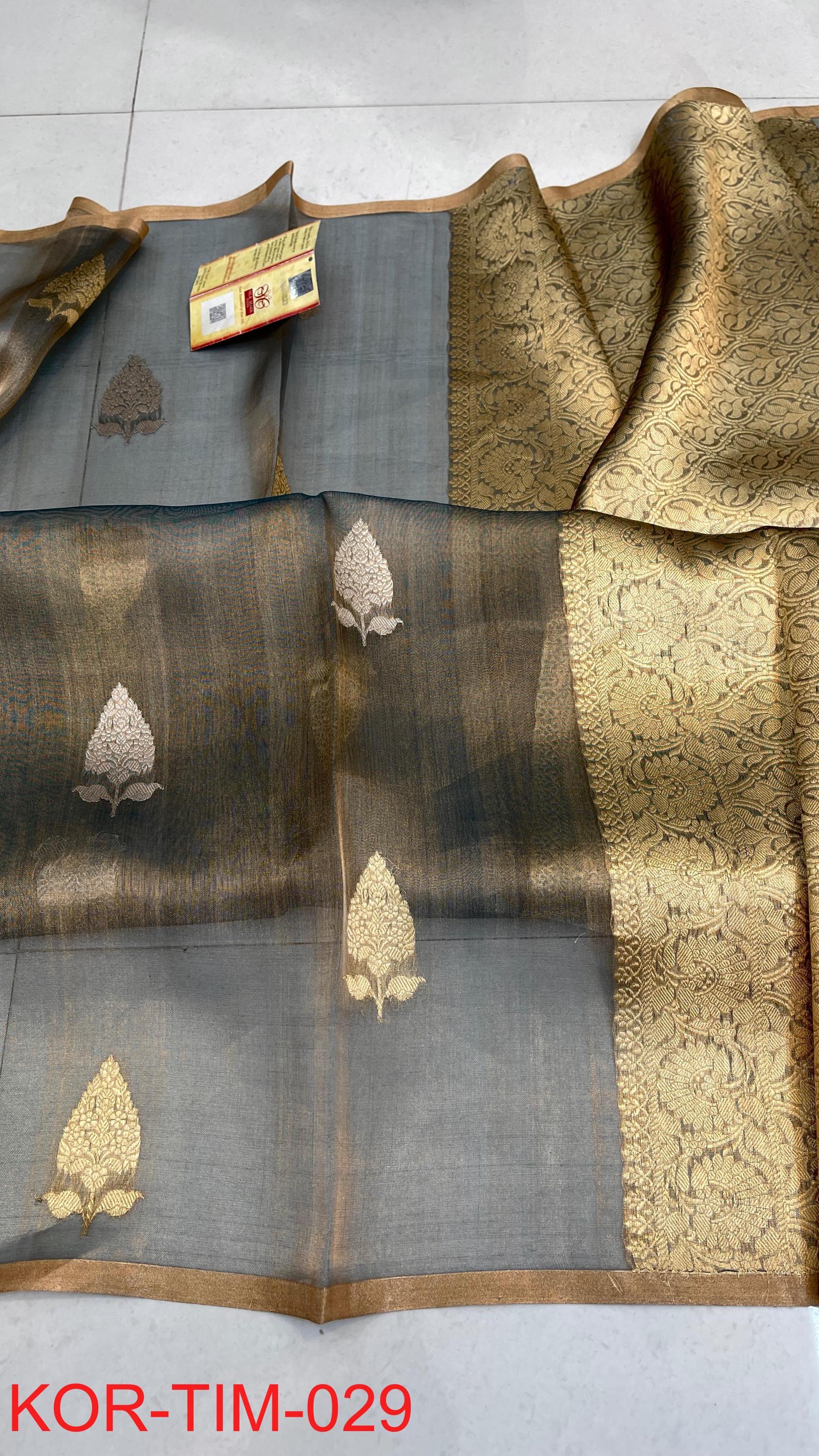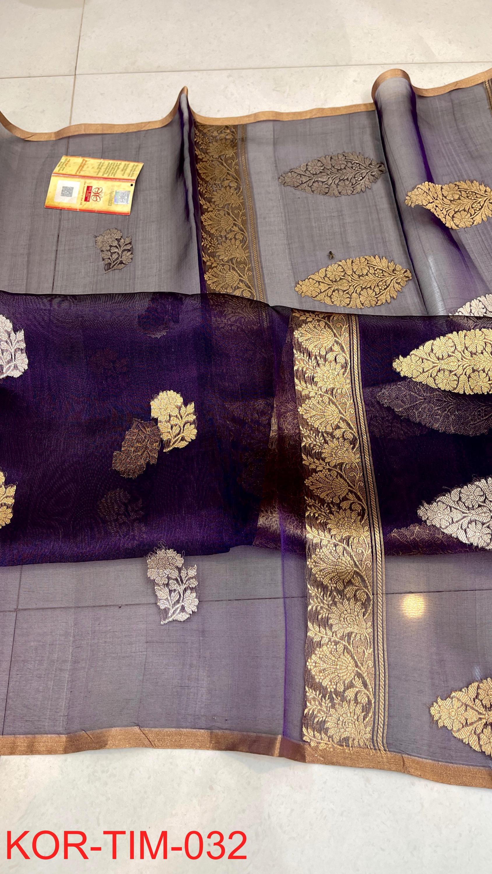 * Fabric: 100% Pure Kora Organza/Tissue Silk (Silk Mark Certified) offering a sheer, crisp, and luminous drape
