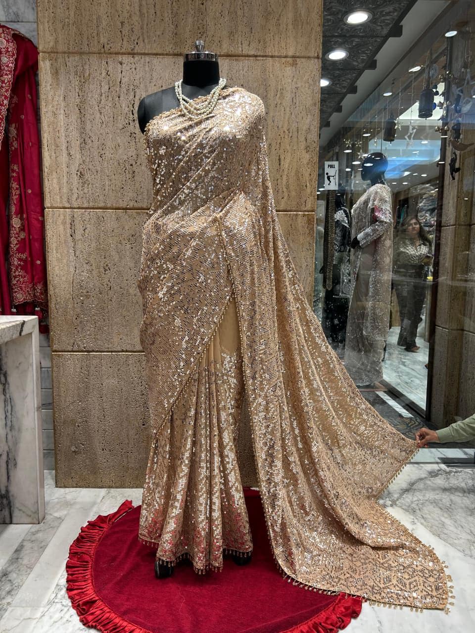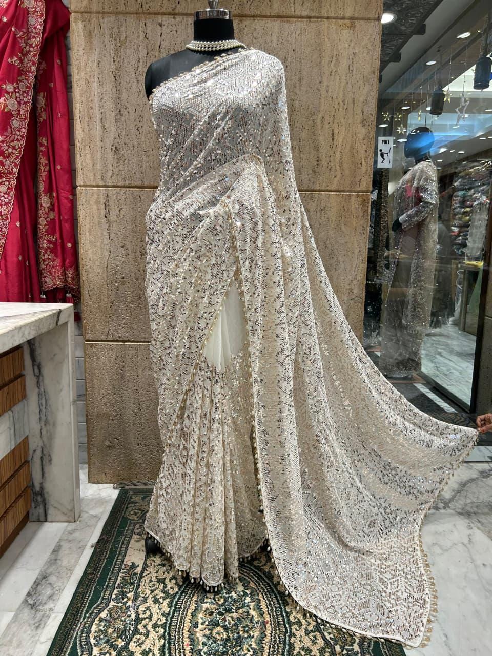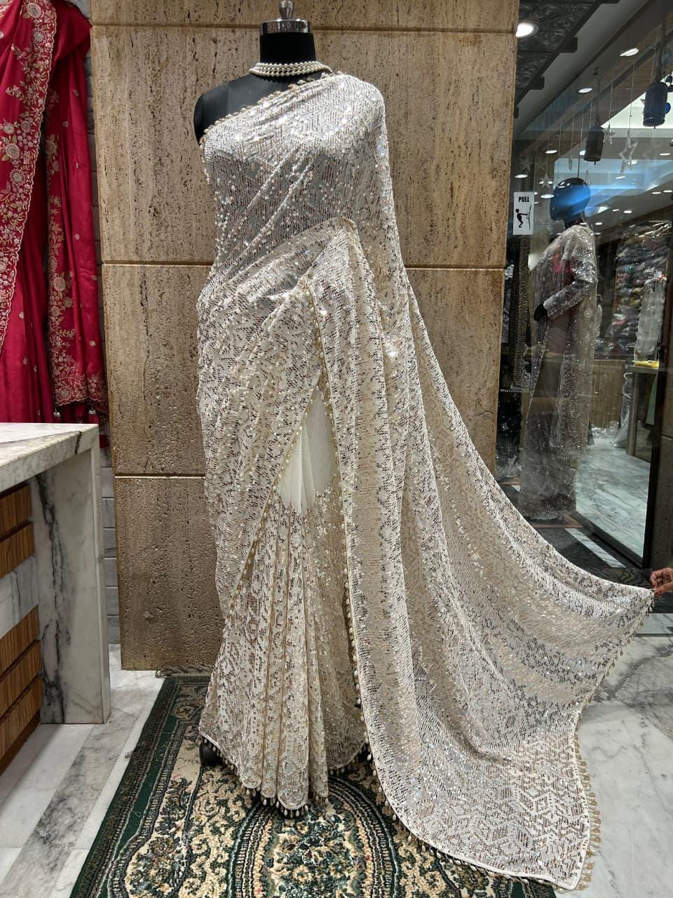 * Care Instructions: Dry clean only to preserve the delicate georgette fabric and intricate hand-embroidered sequence work