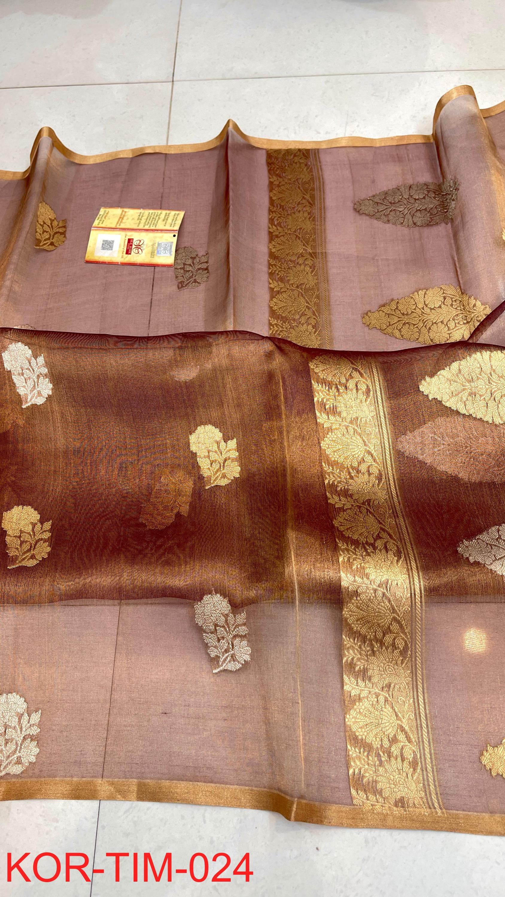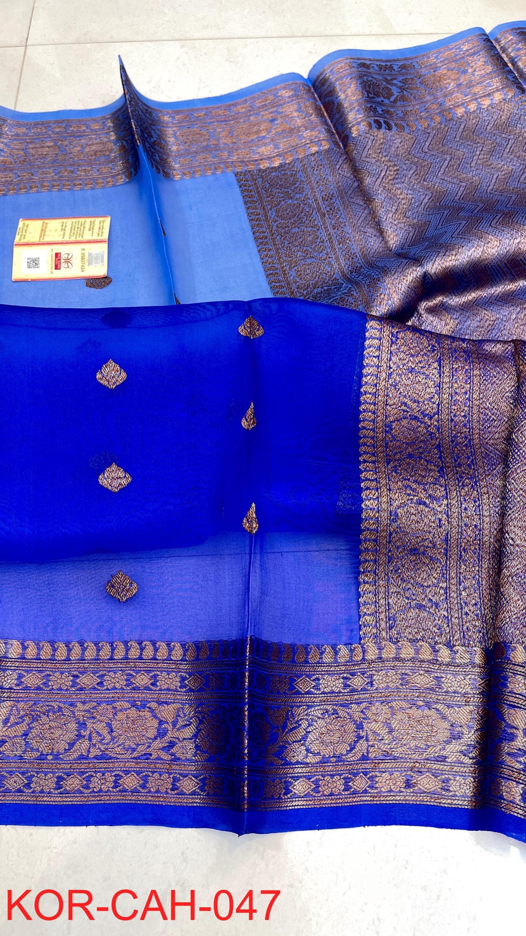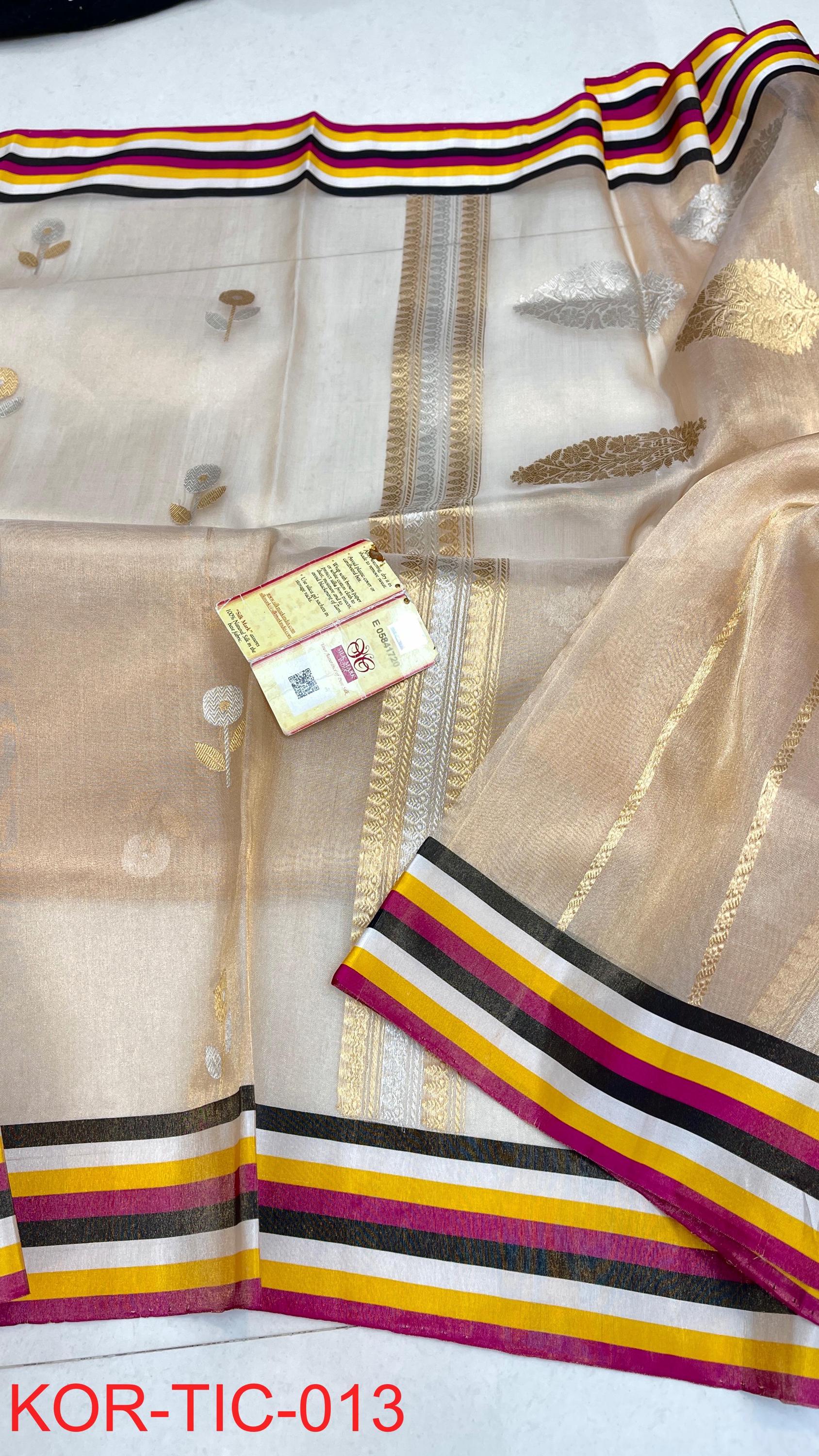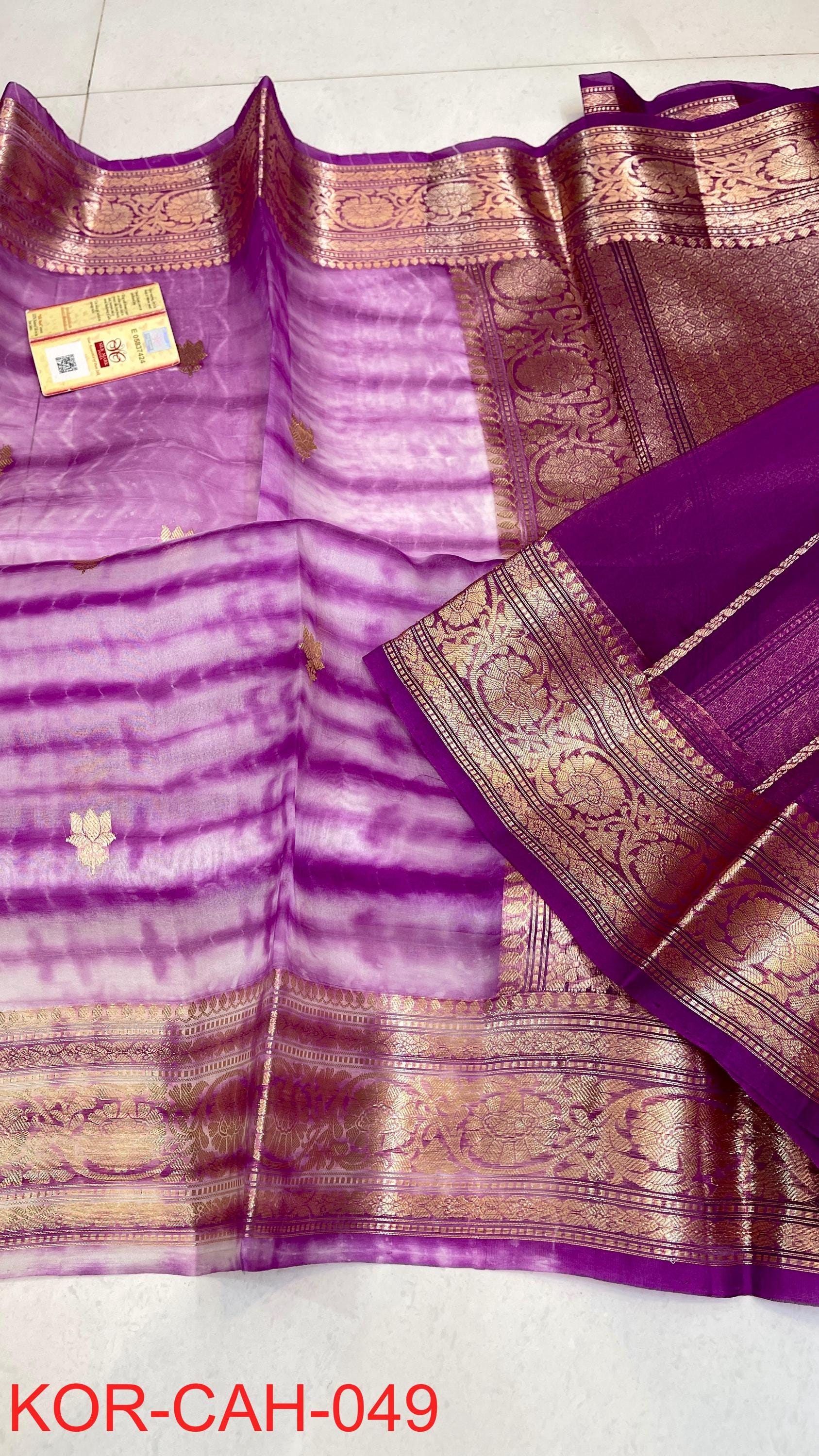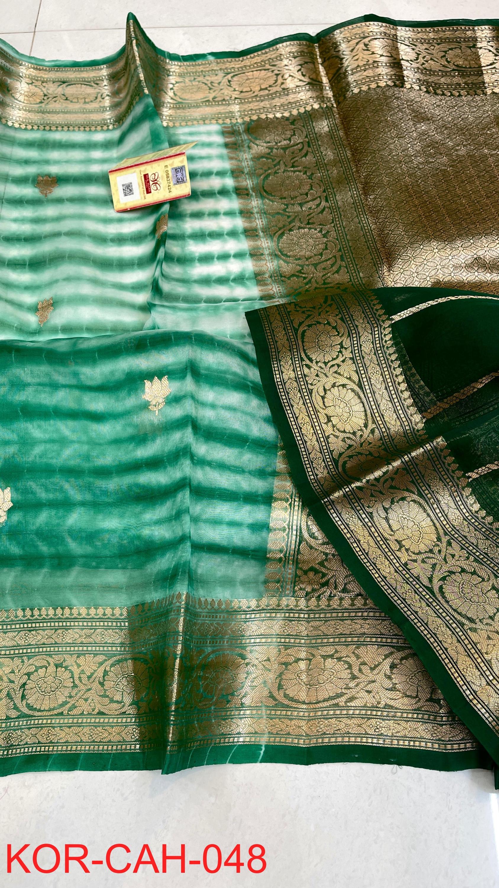 * Fabric: 100% Pure Kora Organza/Tissue Silk (Silk Mark Certified) offering a sheer, crisp, and luminous drape