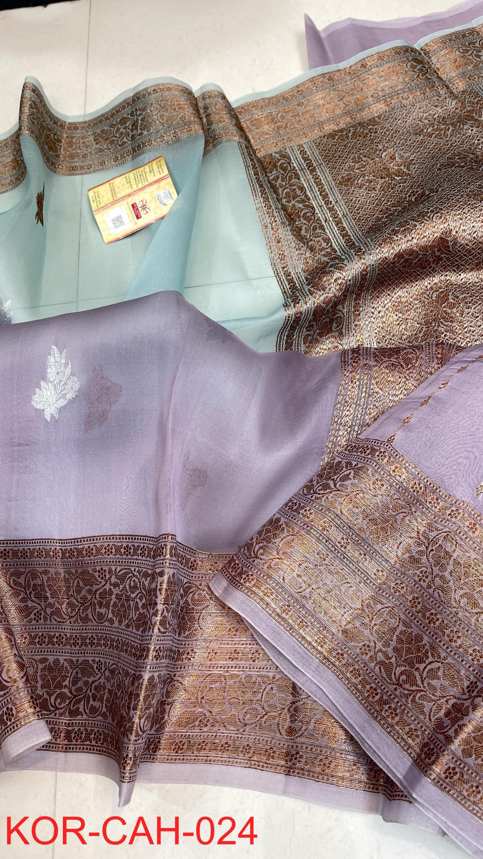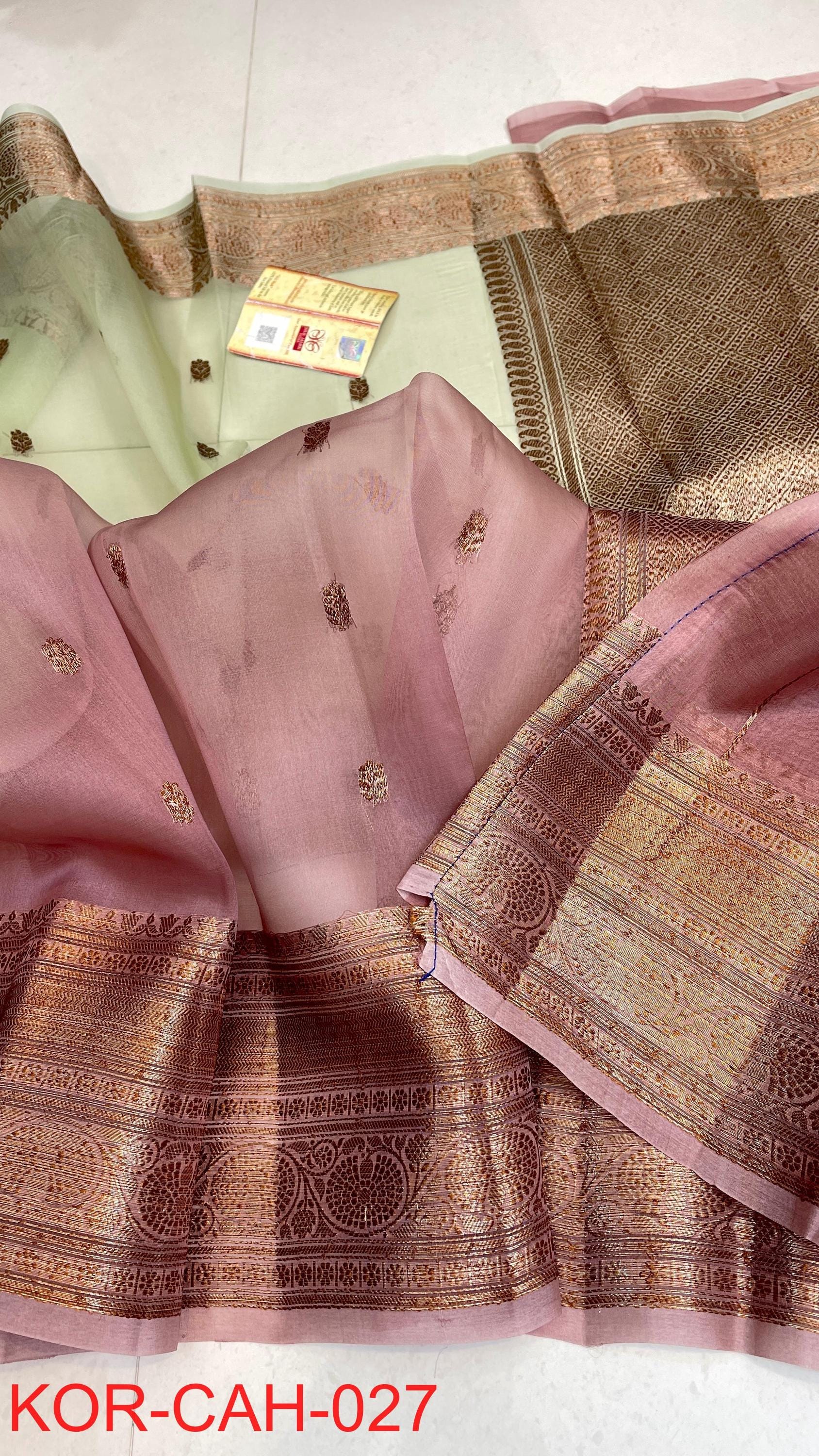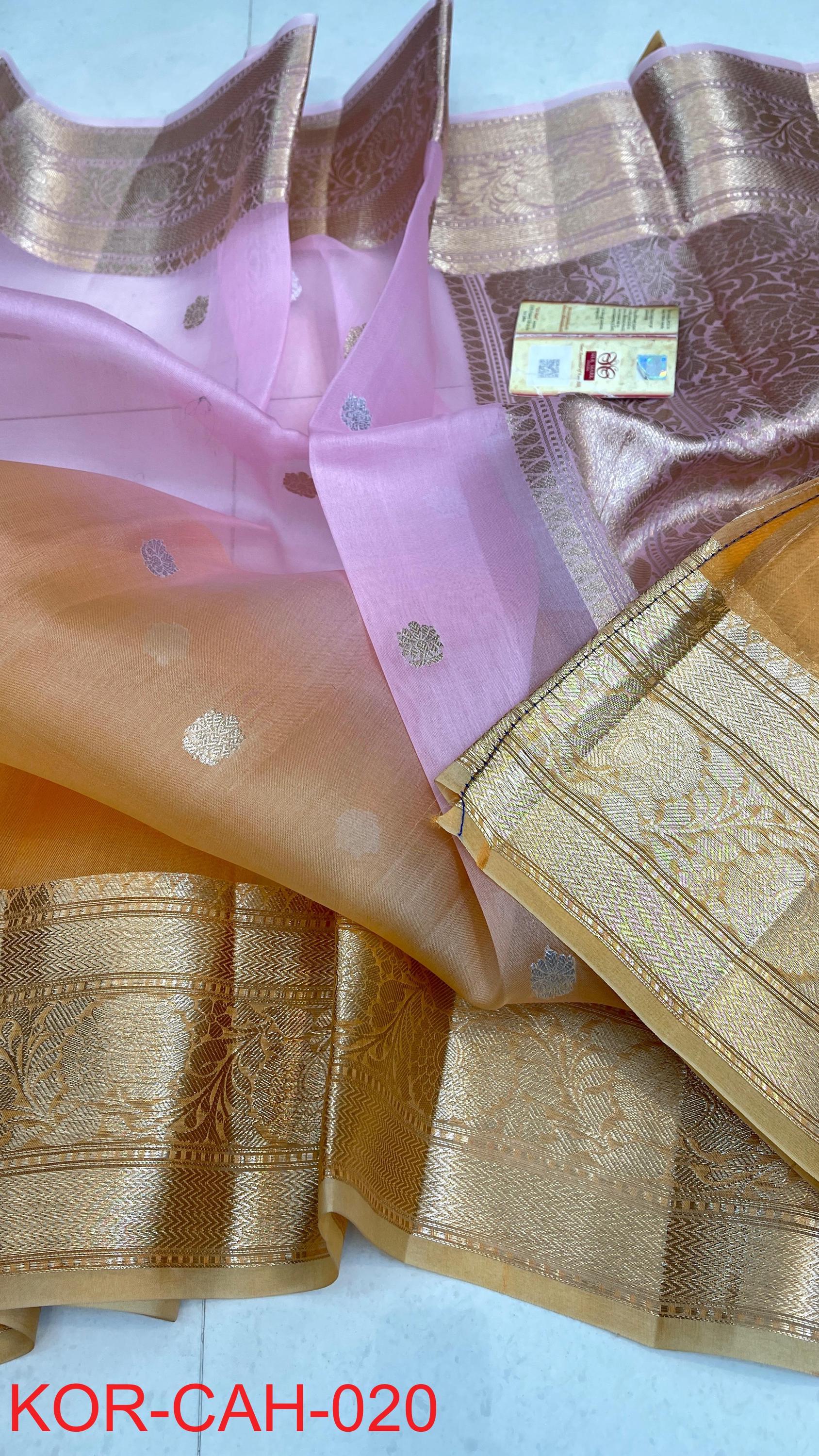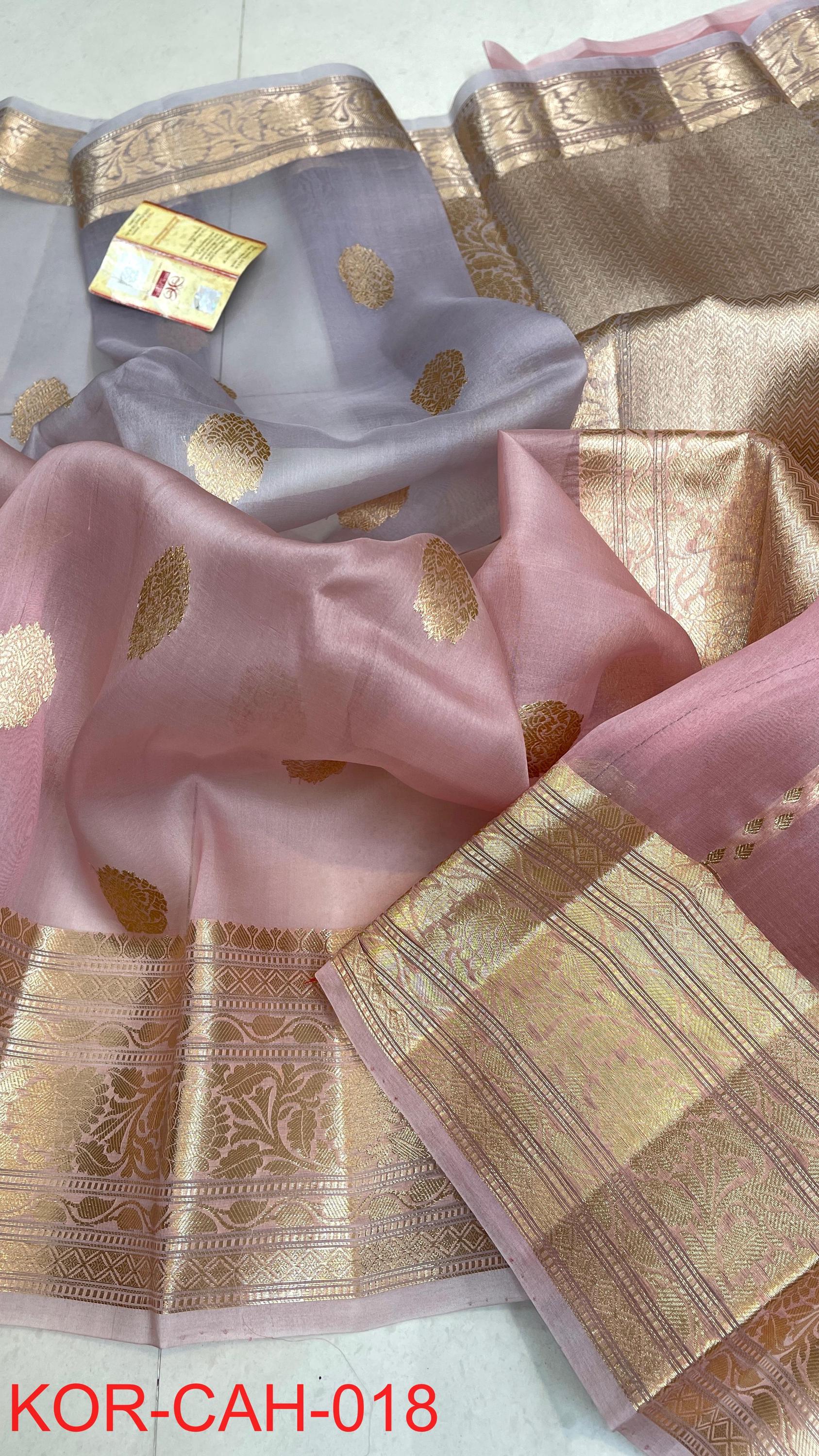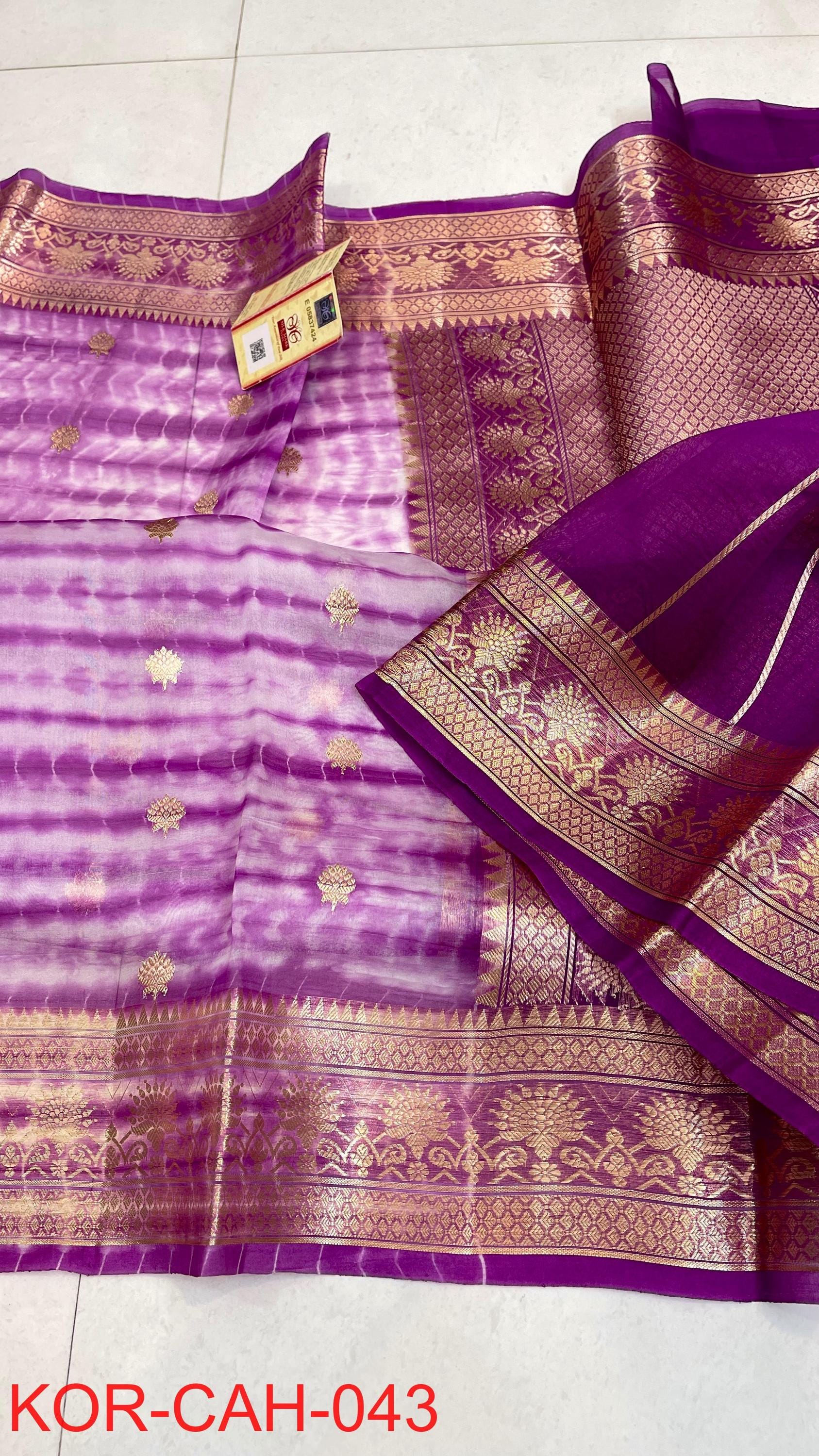 * Fabric: 100% Pure Kora Organza/Tissue Silk (Silk Mark Certified) offering a sheer, crisp, and luminous drape